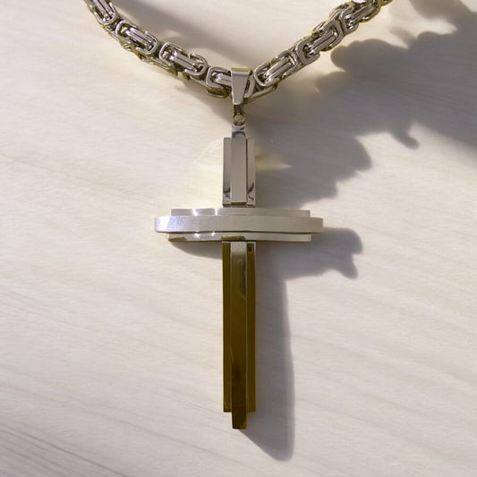 Man’s Stainless Steel Cross Necklace Heavy Thick Silver Color