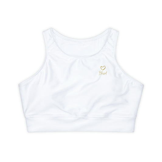 Blessed Heart Fully Lined, Padded Sports Bra (AOP)
