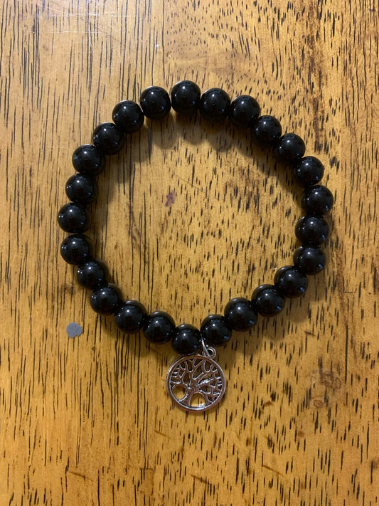 Black Agate Tree of Life Handmade Stretch Bracelet