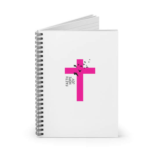 Faith, Hope, Joy Pink Cross Spiral Notebook - Ruled Line