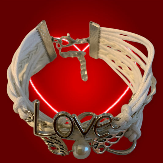 Faith Cross Dome Multistrand Faux Leather Cord Adjustable Bracelet