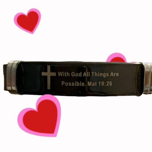 With God All Things Are Possible (Black) Stainless Steel Bracelet Matthew 19:26