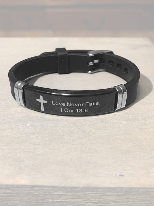 I Can Do All Things Through Christ Who Strengthens Me (Silver) Stainless Steel Black Bracelet Philippians 4:13