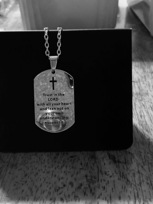 Dog Tag Trust in the Lord Bible Verse Stainless Steel Silver Color Necklace