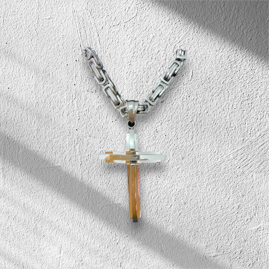 Man’s Stainless Steel Cross Necklace Heavy Thick Silver Color