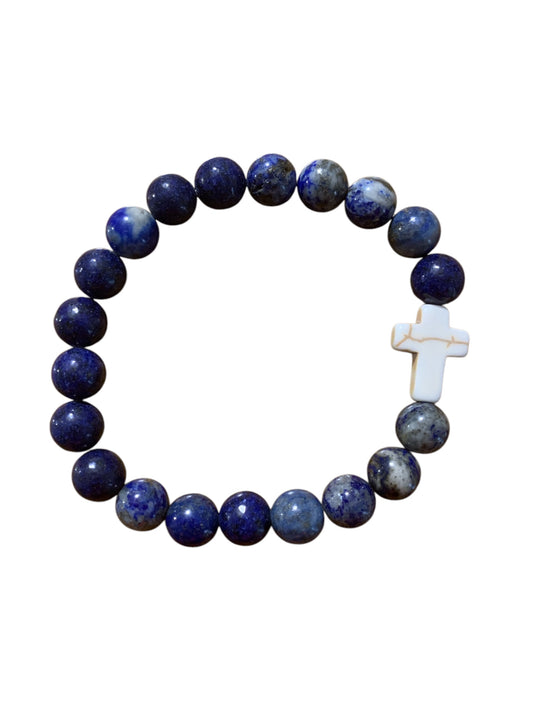 Lápiz Lazuli Handmade Stretch Bracelet with Cross