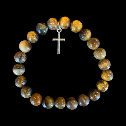 Handmade Bumblebee Jasper Natural Stone Bracelet with Silver Cross