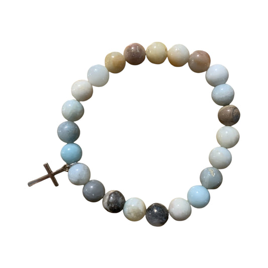 Handmade Light Blue Agate Natural Stone Bracelet with Silver Cross