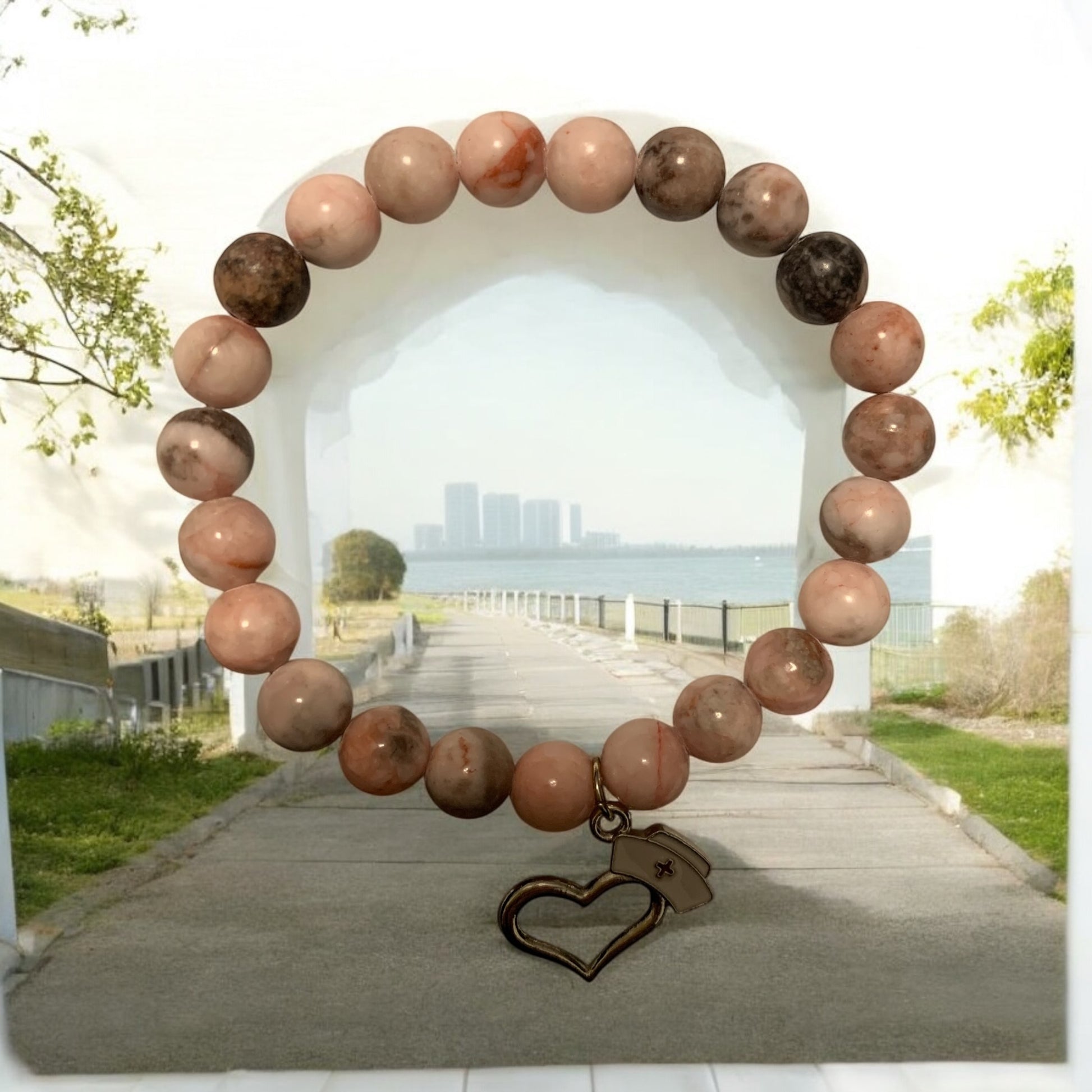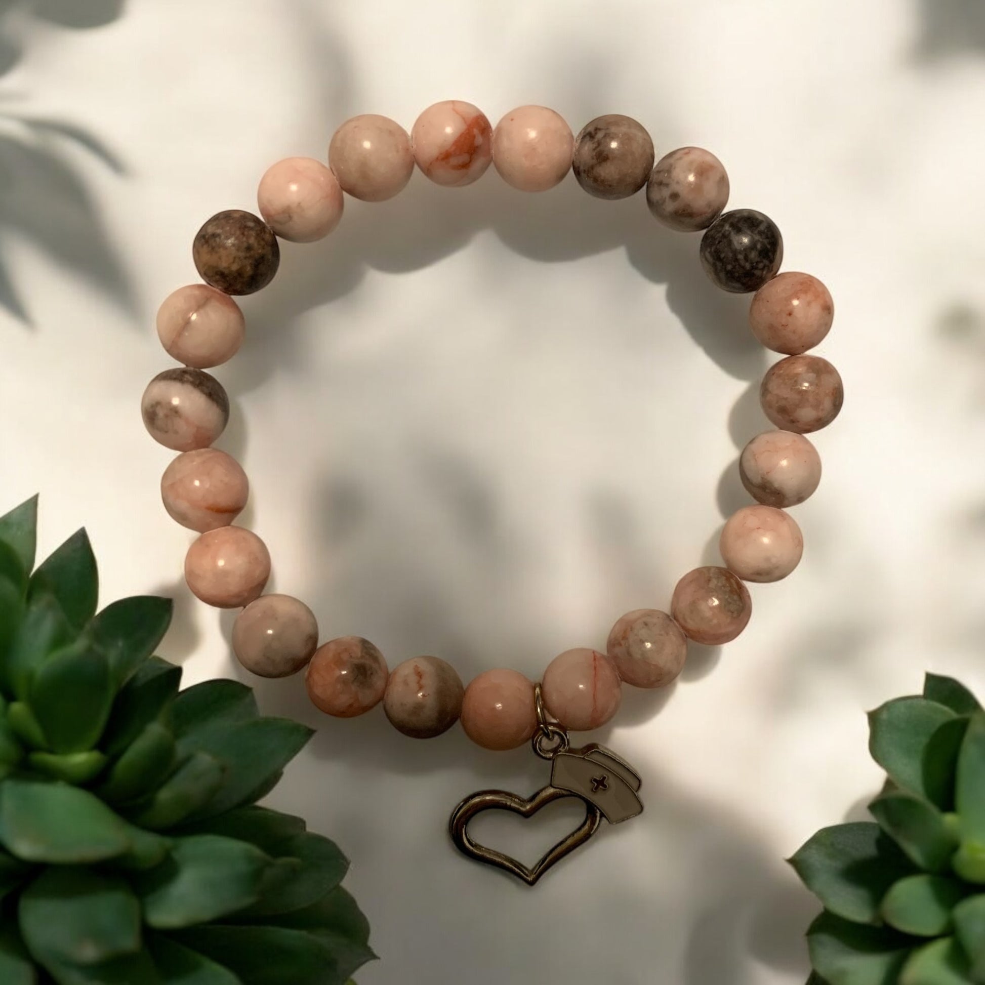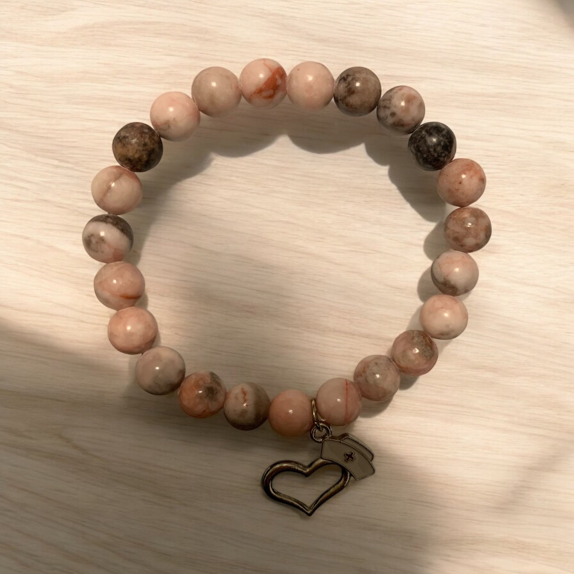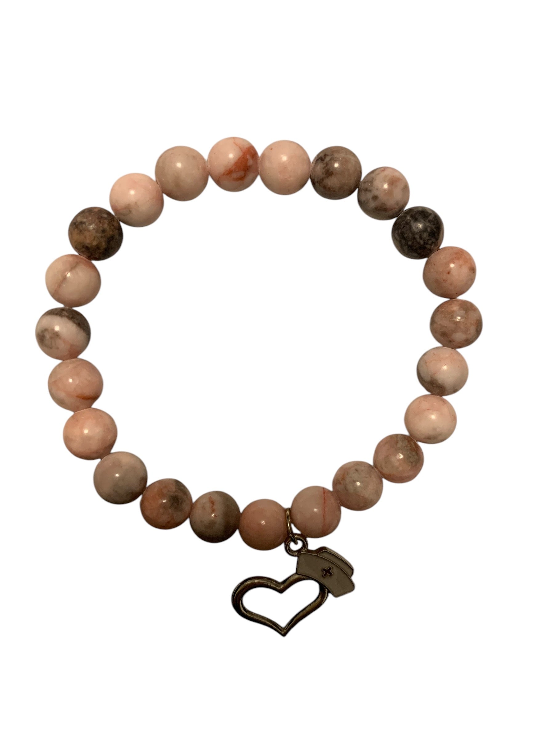 Natural Stone Agate Stretch Bracelet with Nurse Charm
