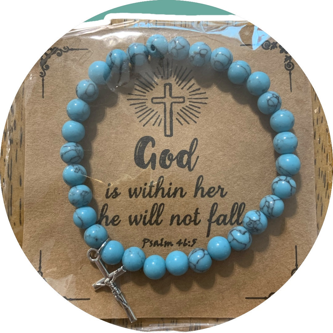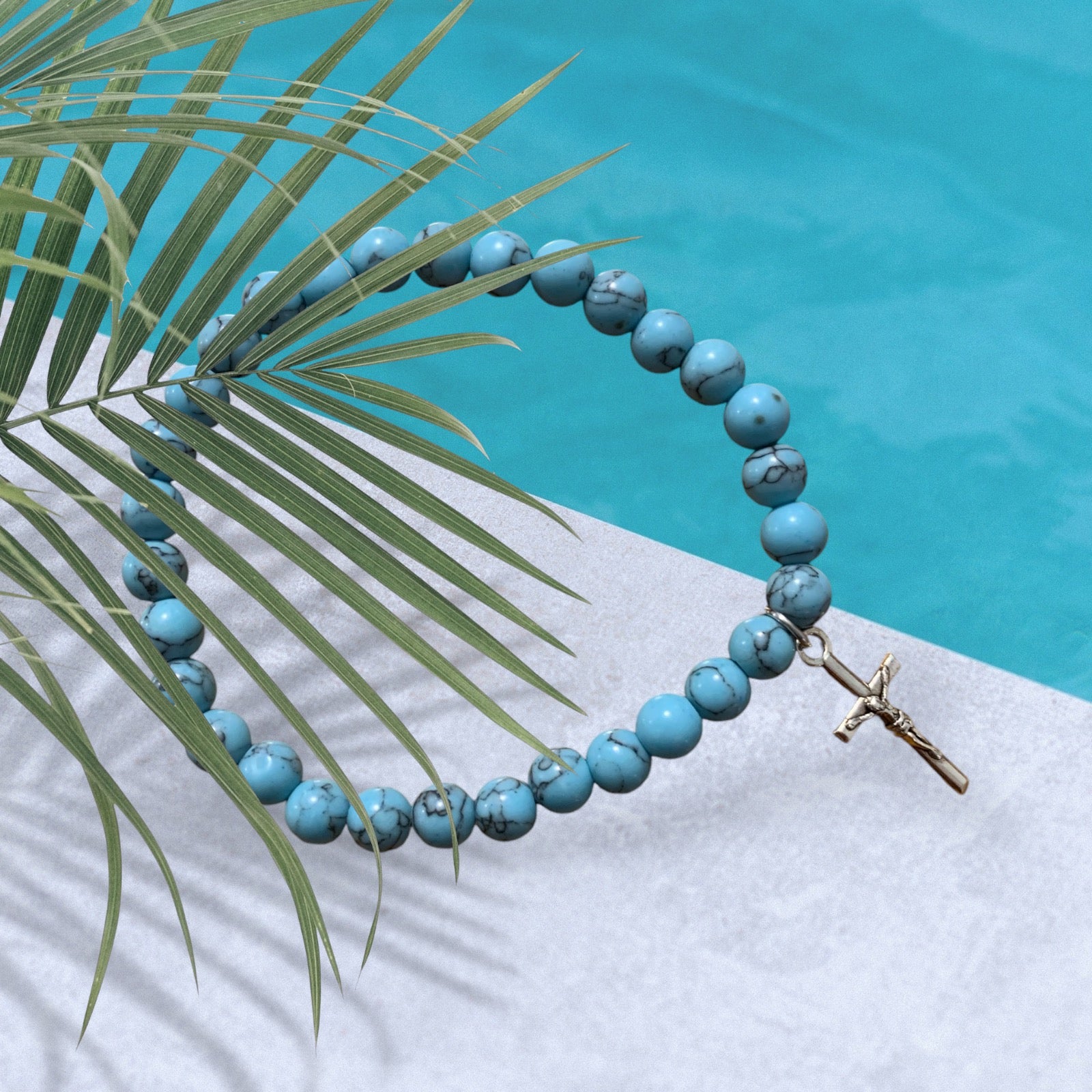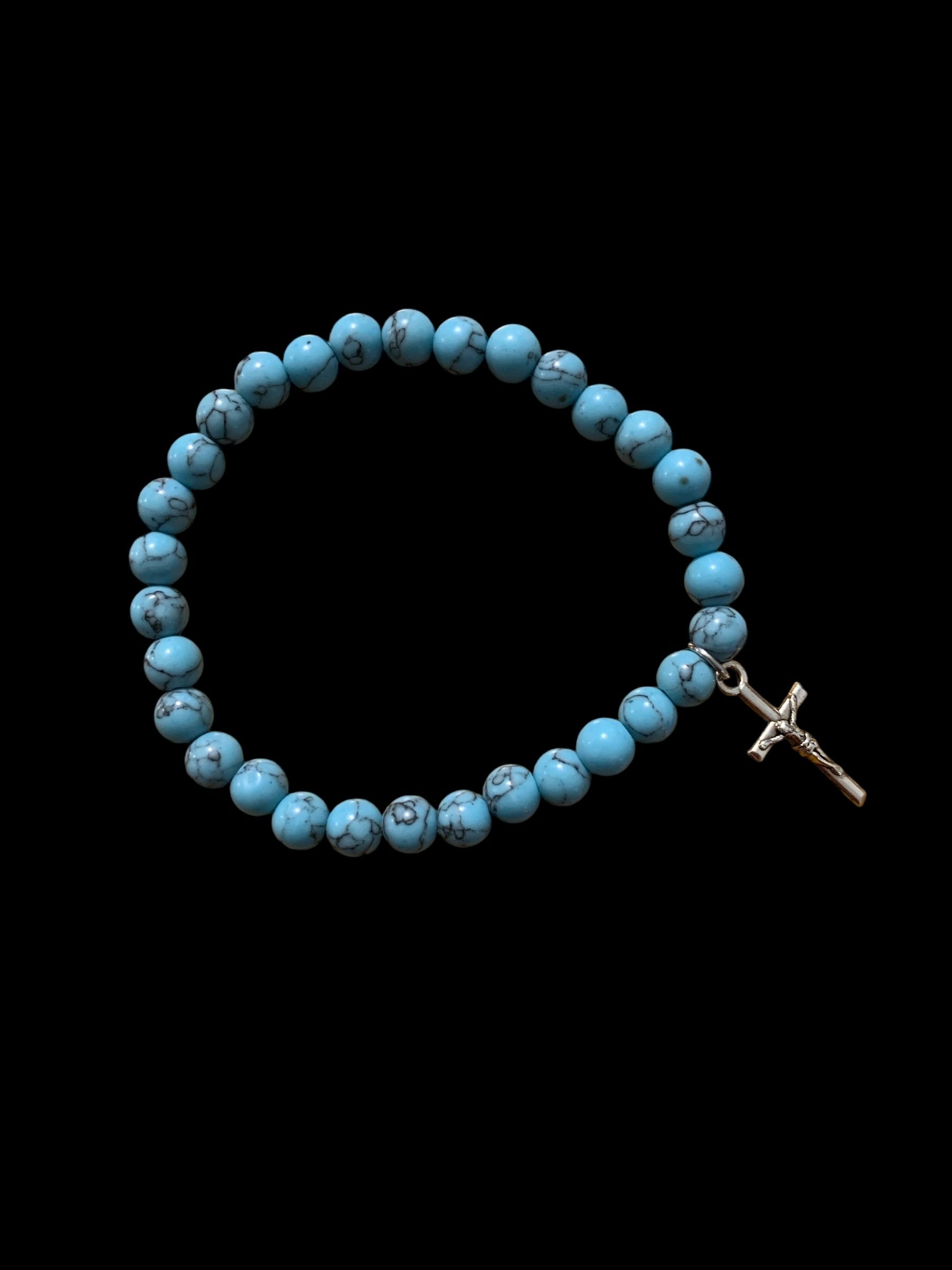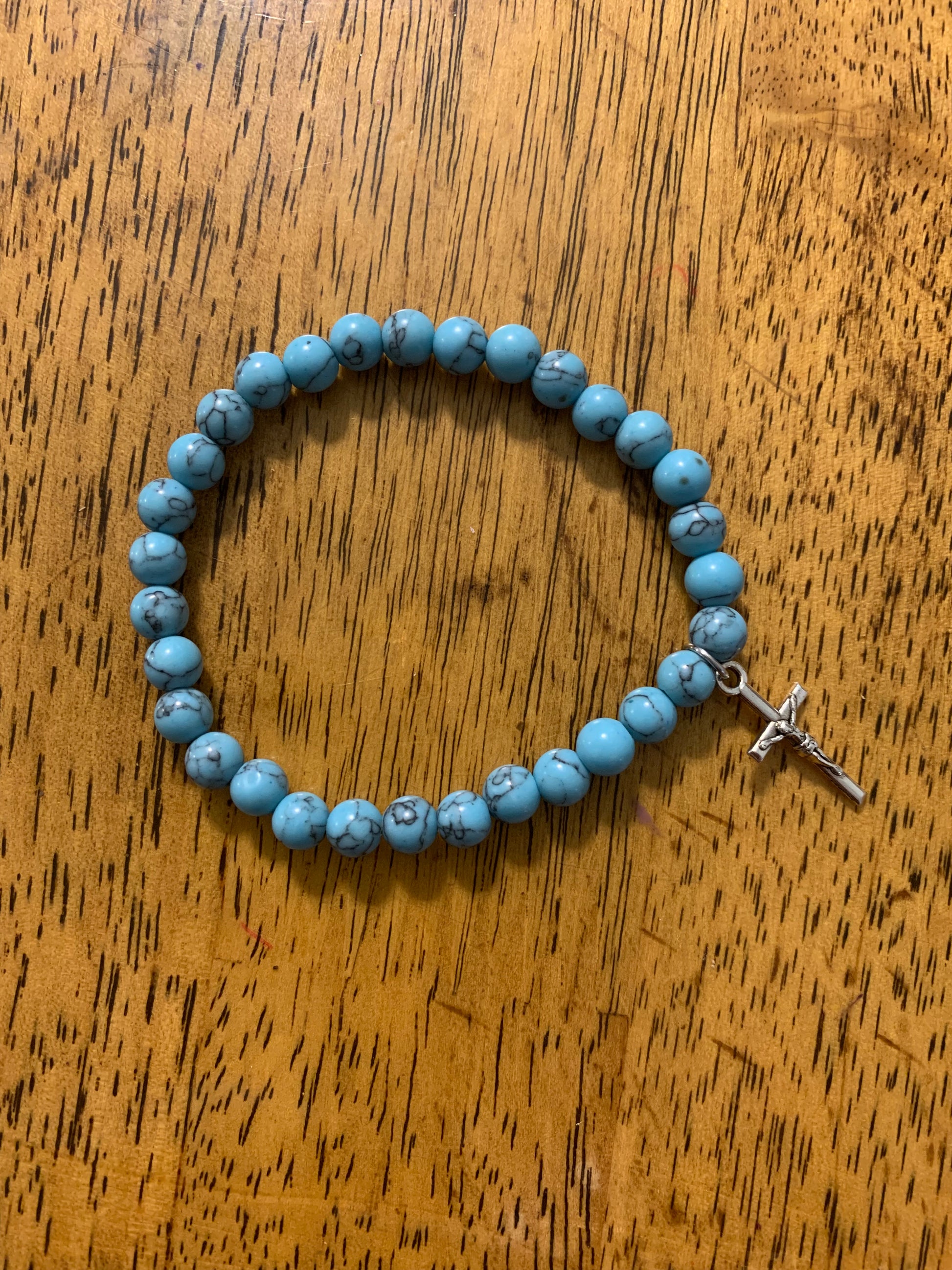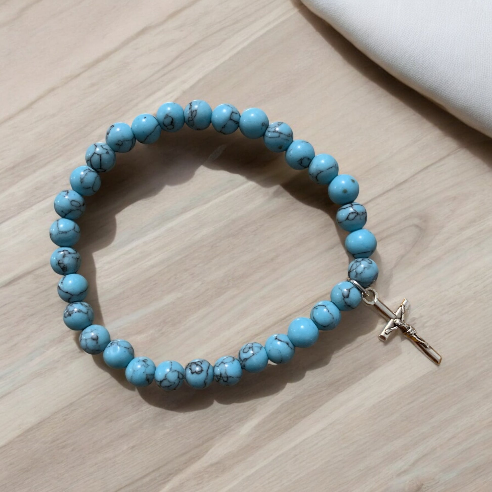 Handmade Turquoise Natural Stone Bracelet with Silver Cross
