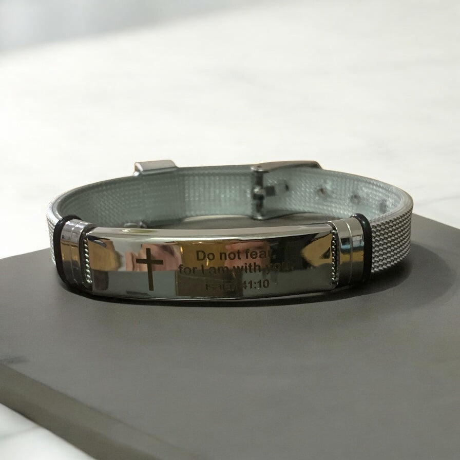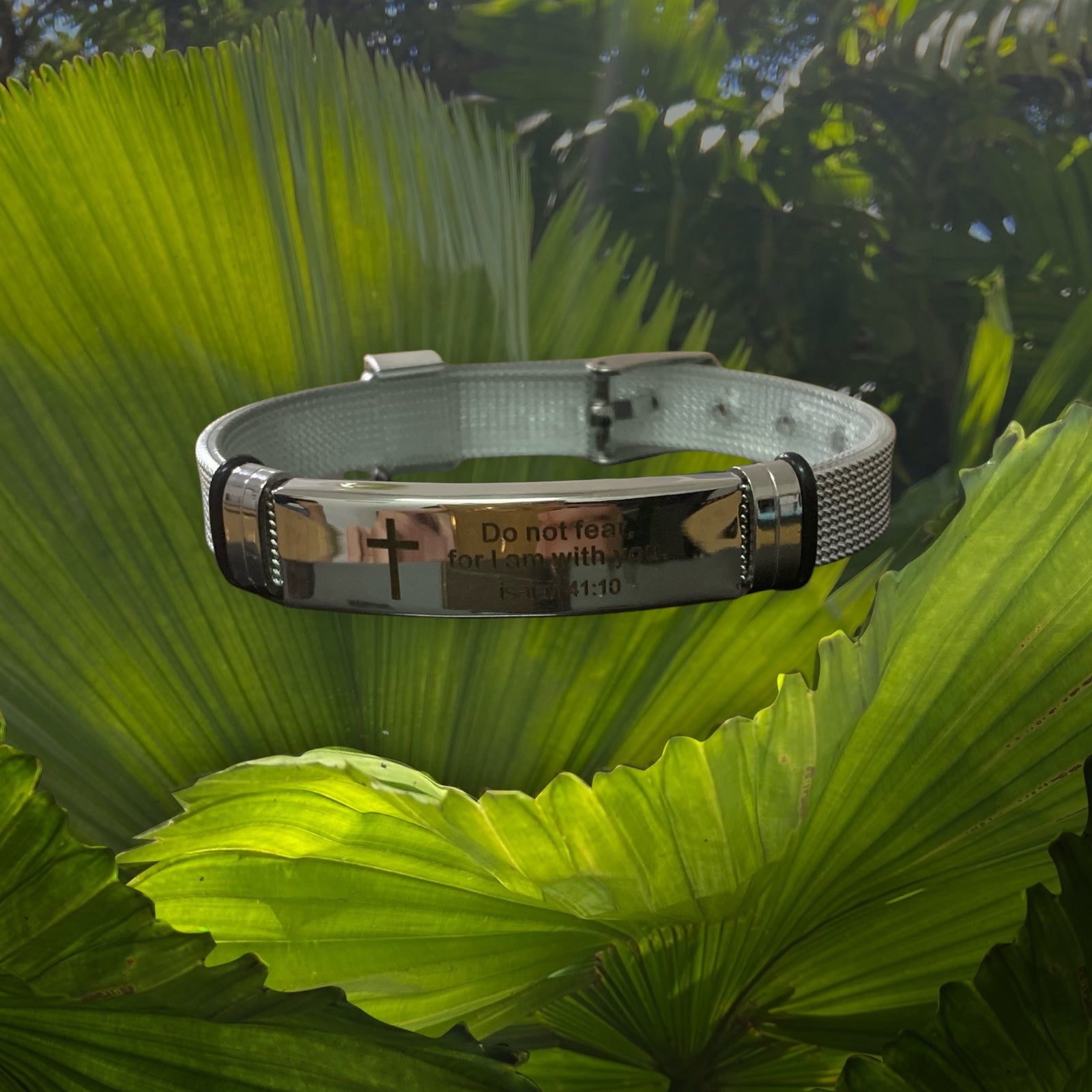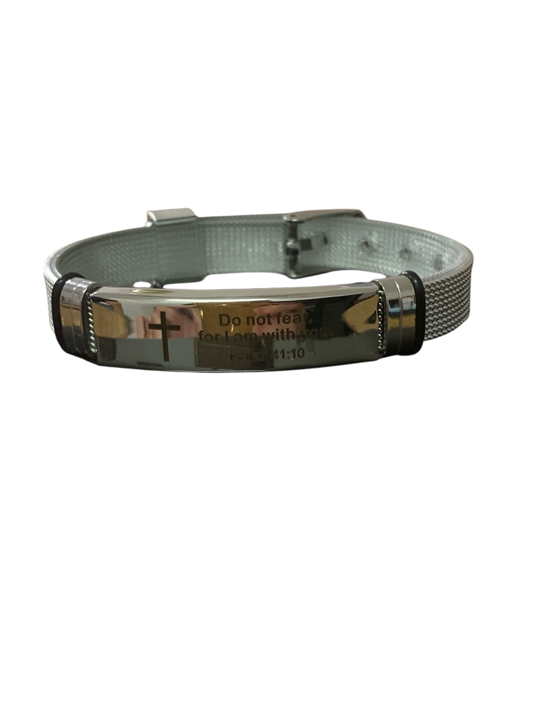 Do Not Fear for I am With You Isaiah 41:10 Silvery Stainless Steel Bracelet