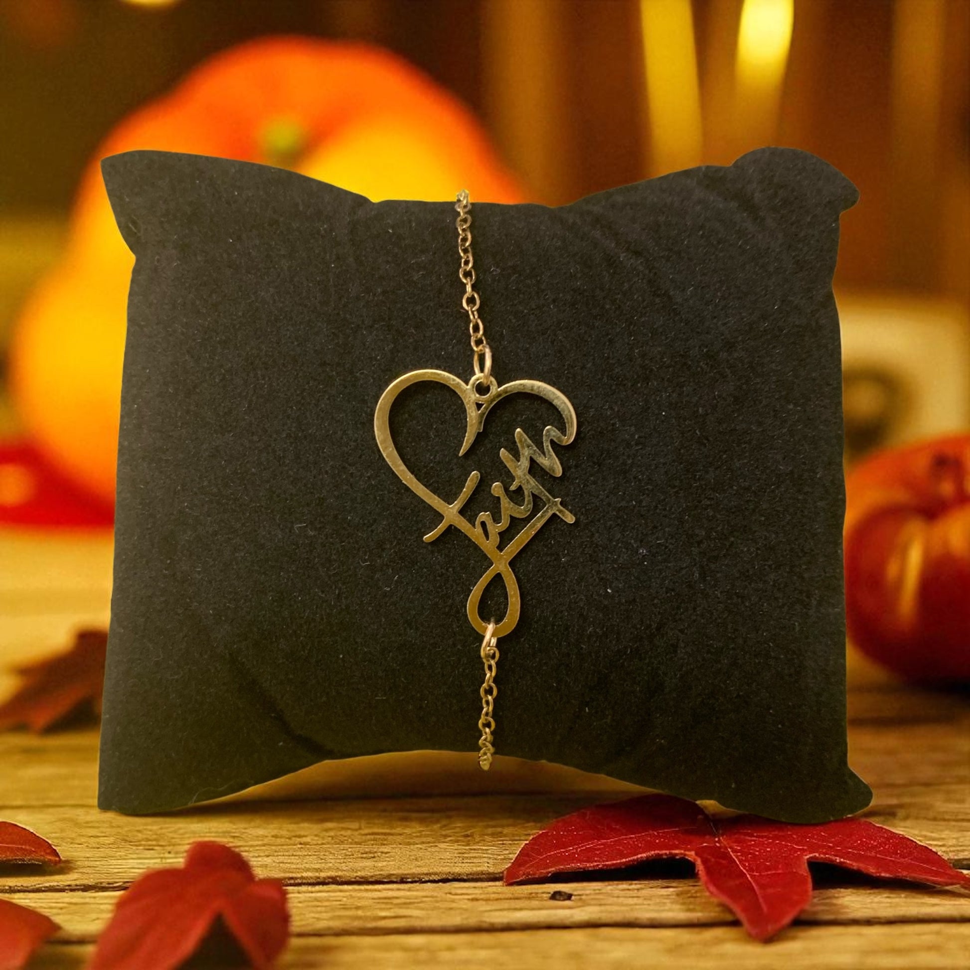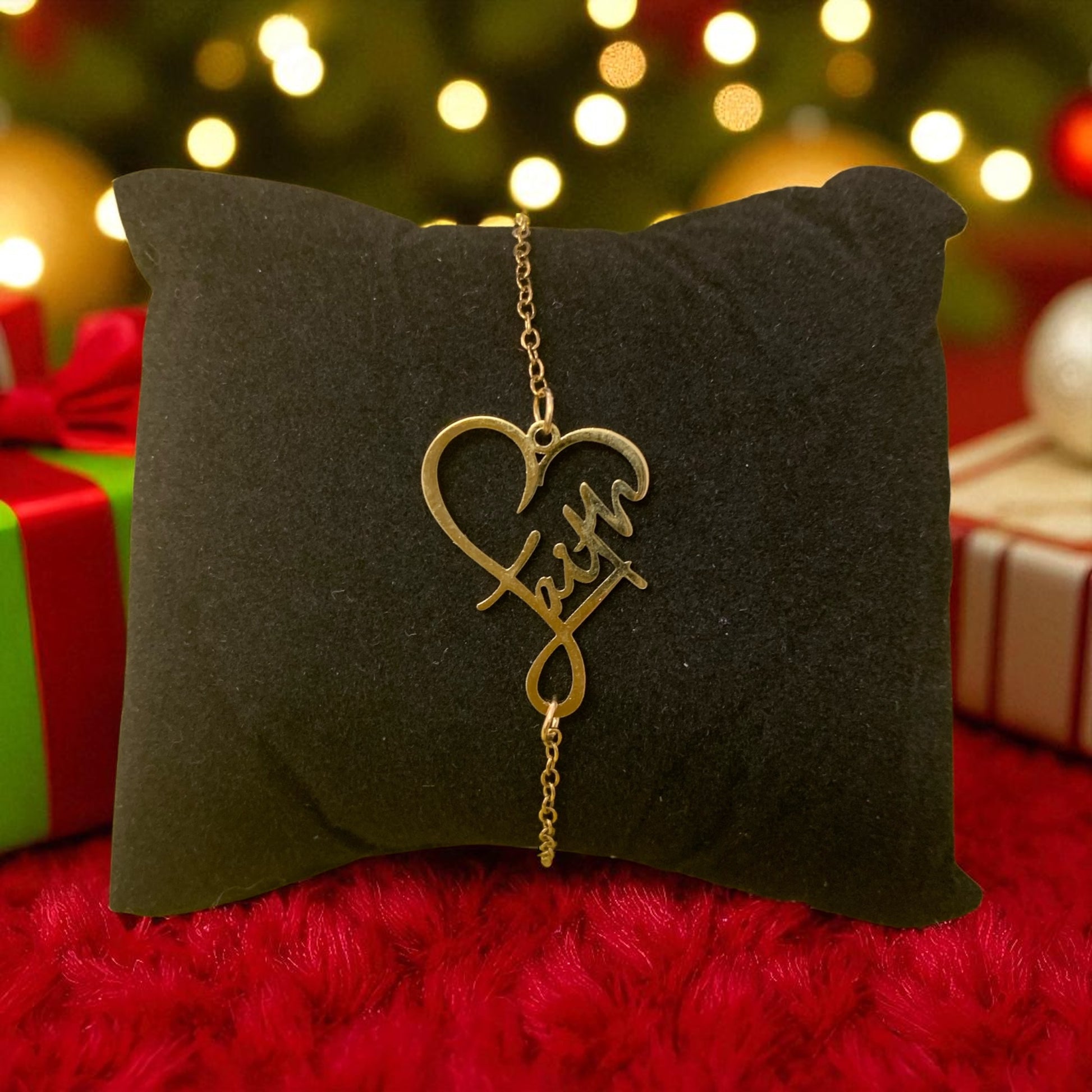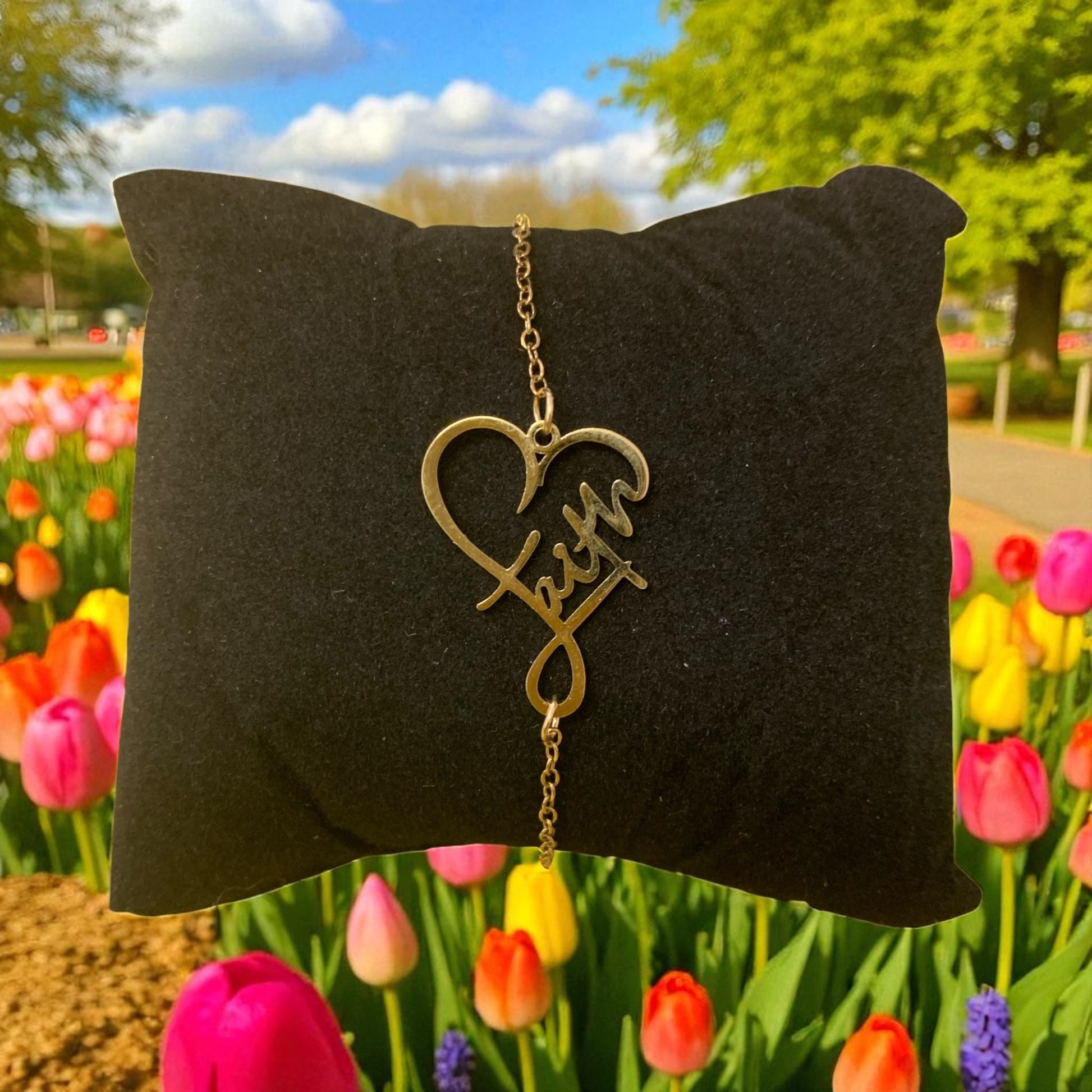 Expertly crafted with gold plated stainless steel, the Faith Heart Bracelet is not only stylish, but also durable. Its intricate design features a heart shape, symbolizing love and faith, making it the perfect accessory for any occasion. Share your faith with this elegant bracelet.