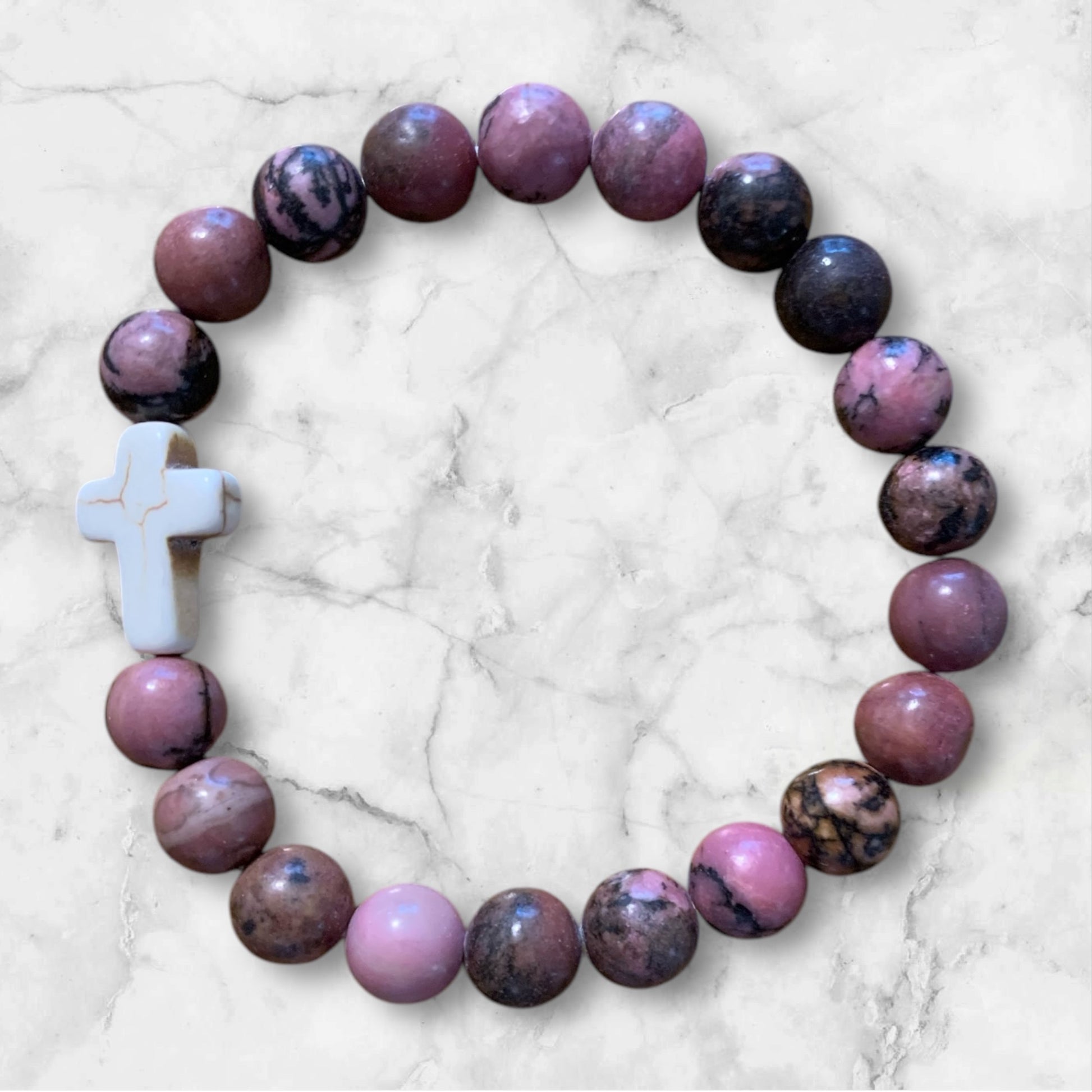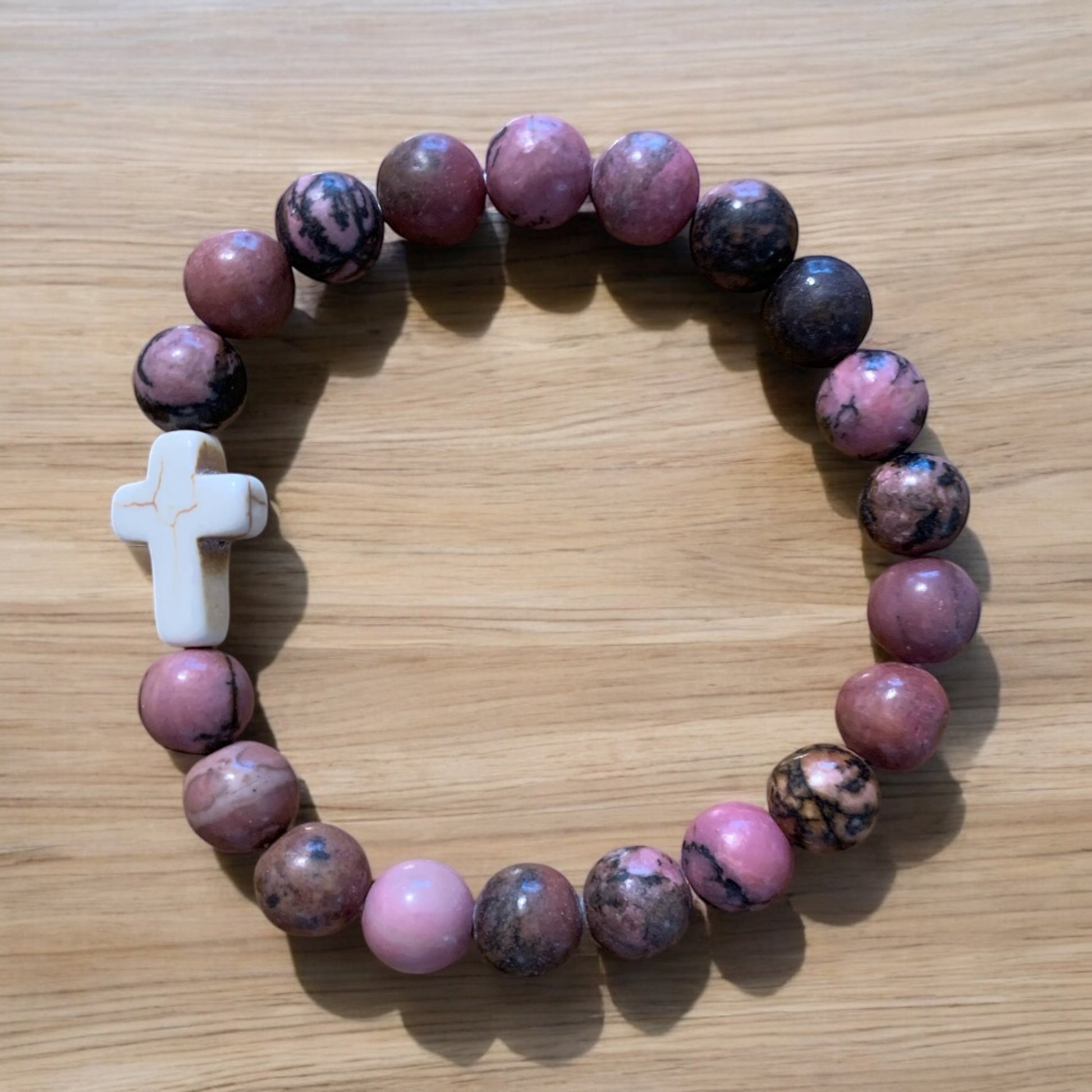 Handmade Rhodonite with Cross Natural Stone Bracelet
