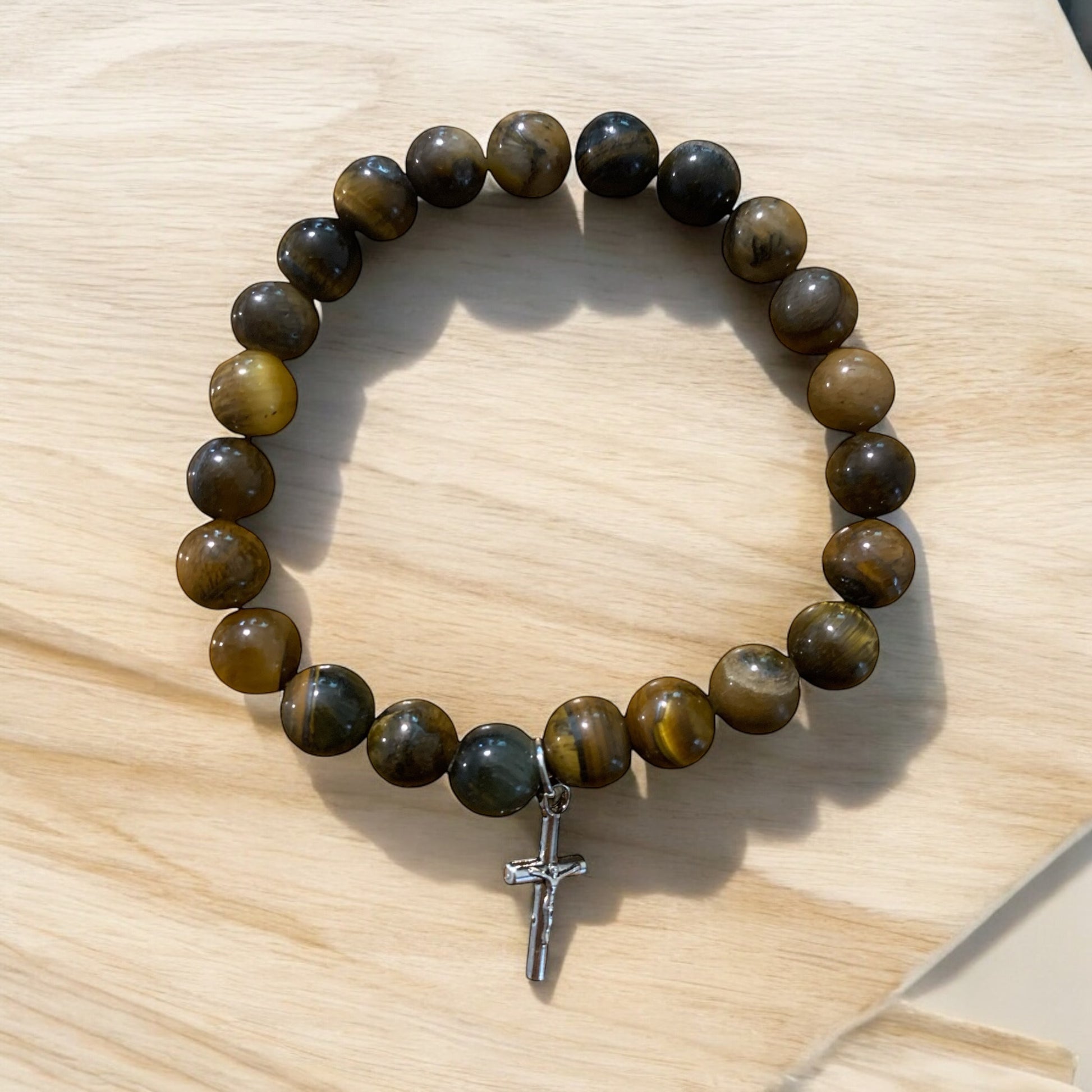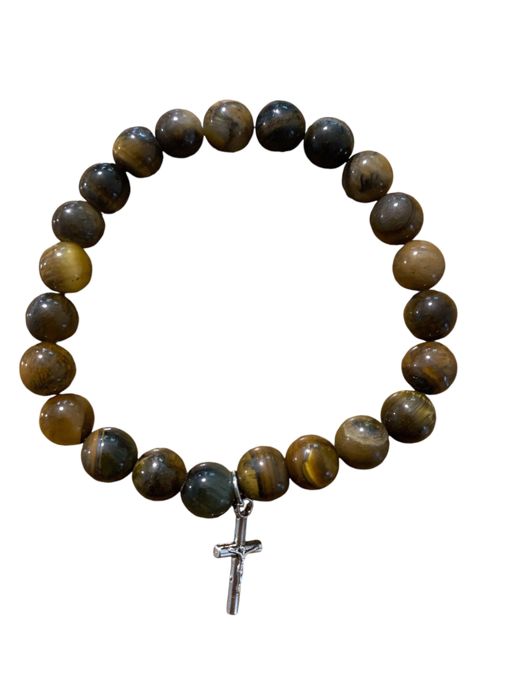 Handmade Tiger’s Eye Natural Stone Bracelet with Cross