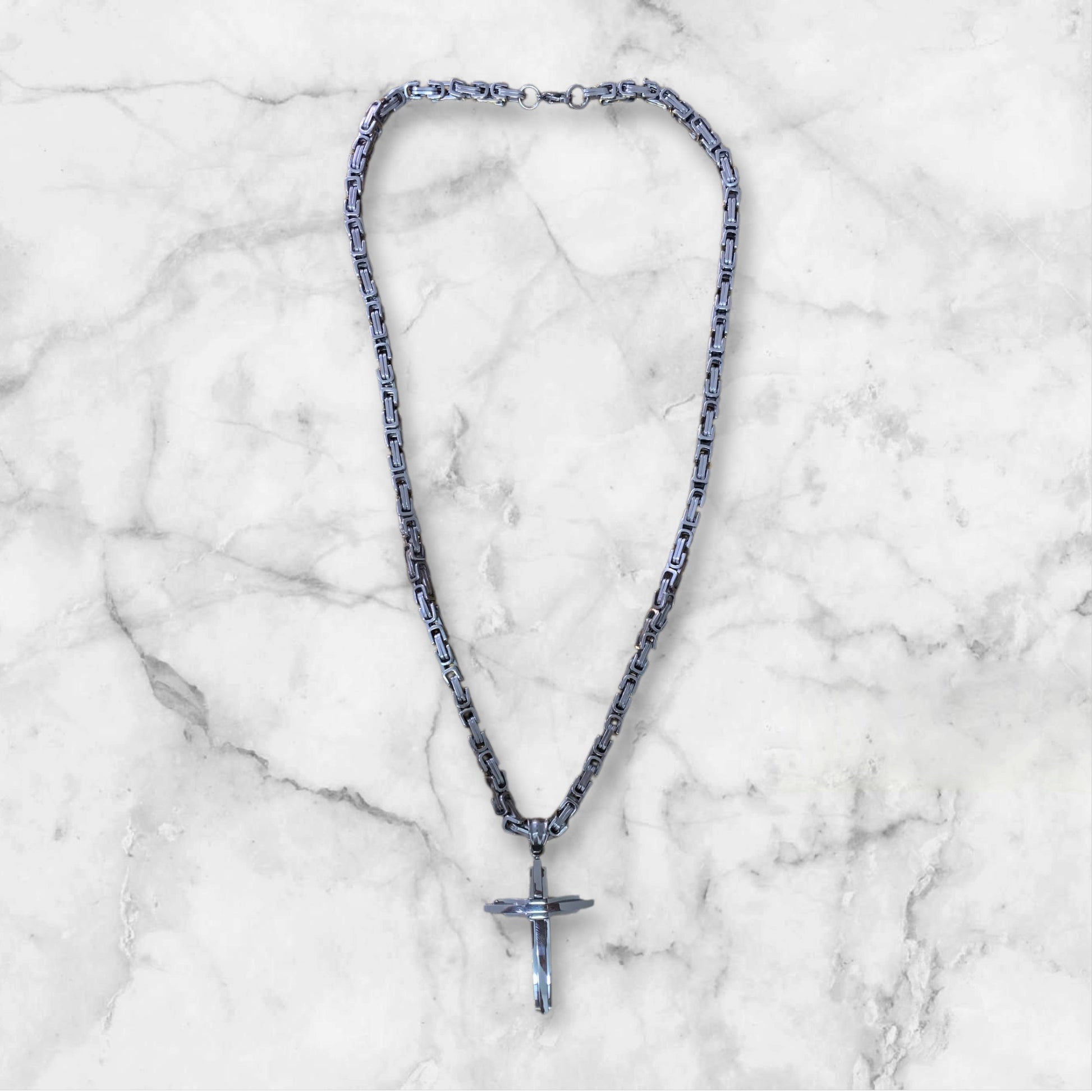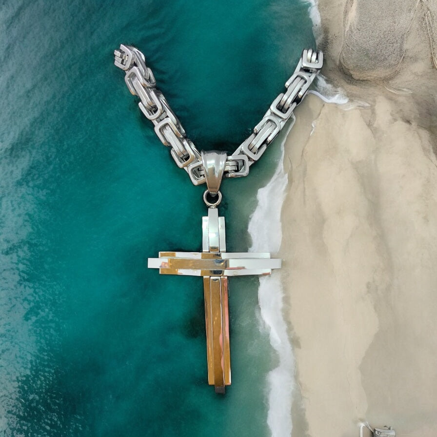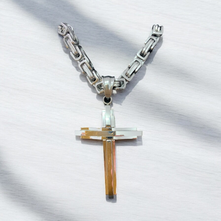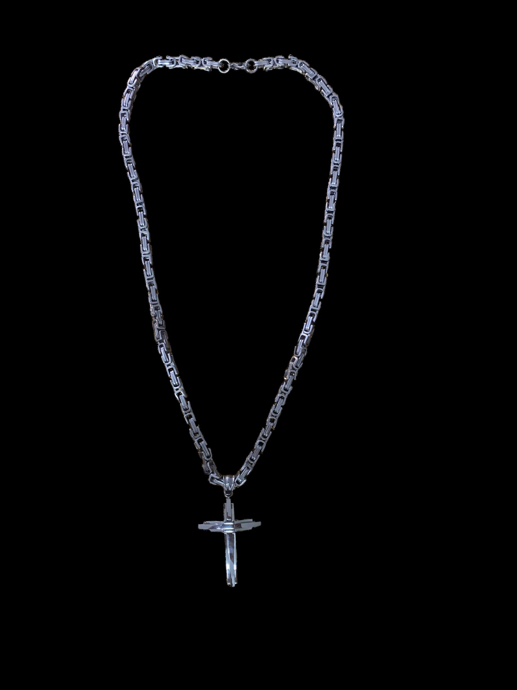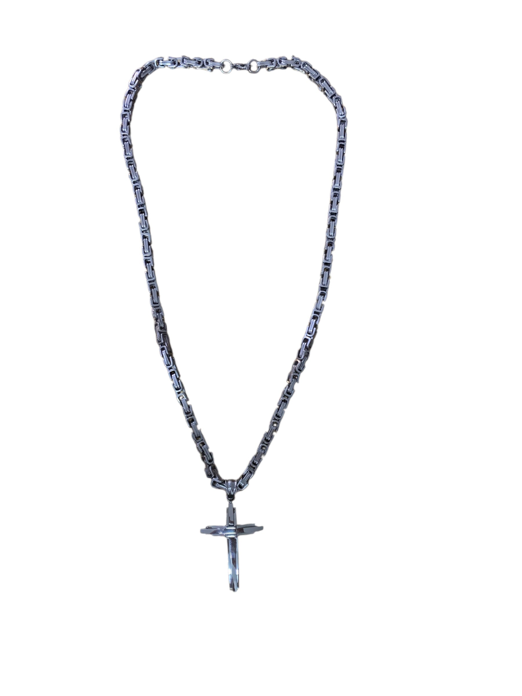 Man’s Stainless Steel Cross Necklace Heavy Thick Silver Color