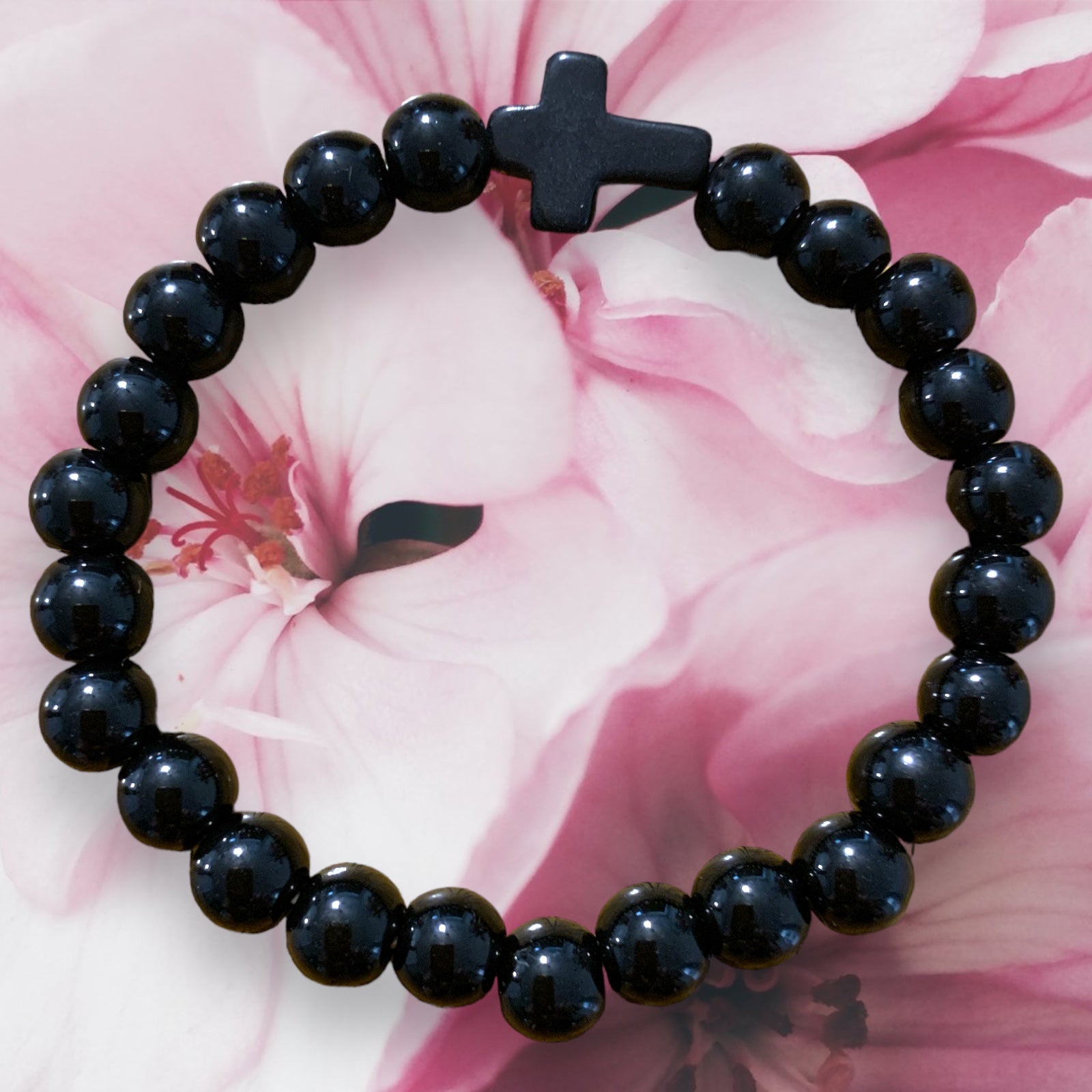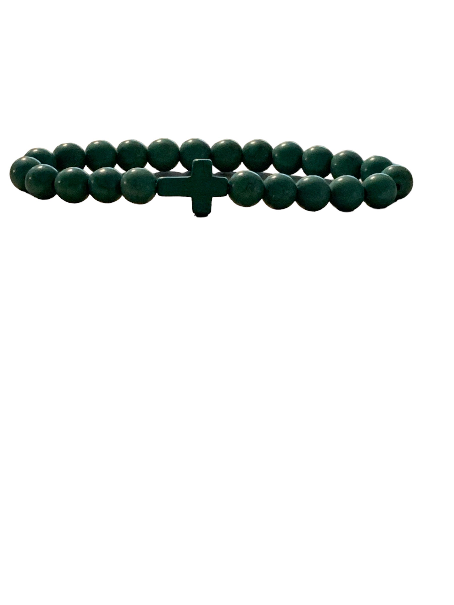 Beautiful natural stone bracelet with cross, 8 inch stretch bracelet.