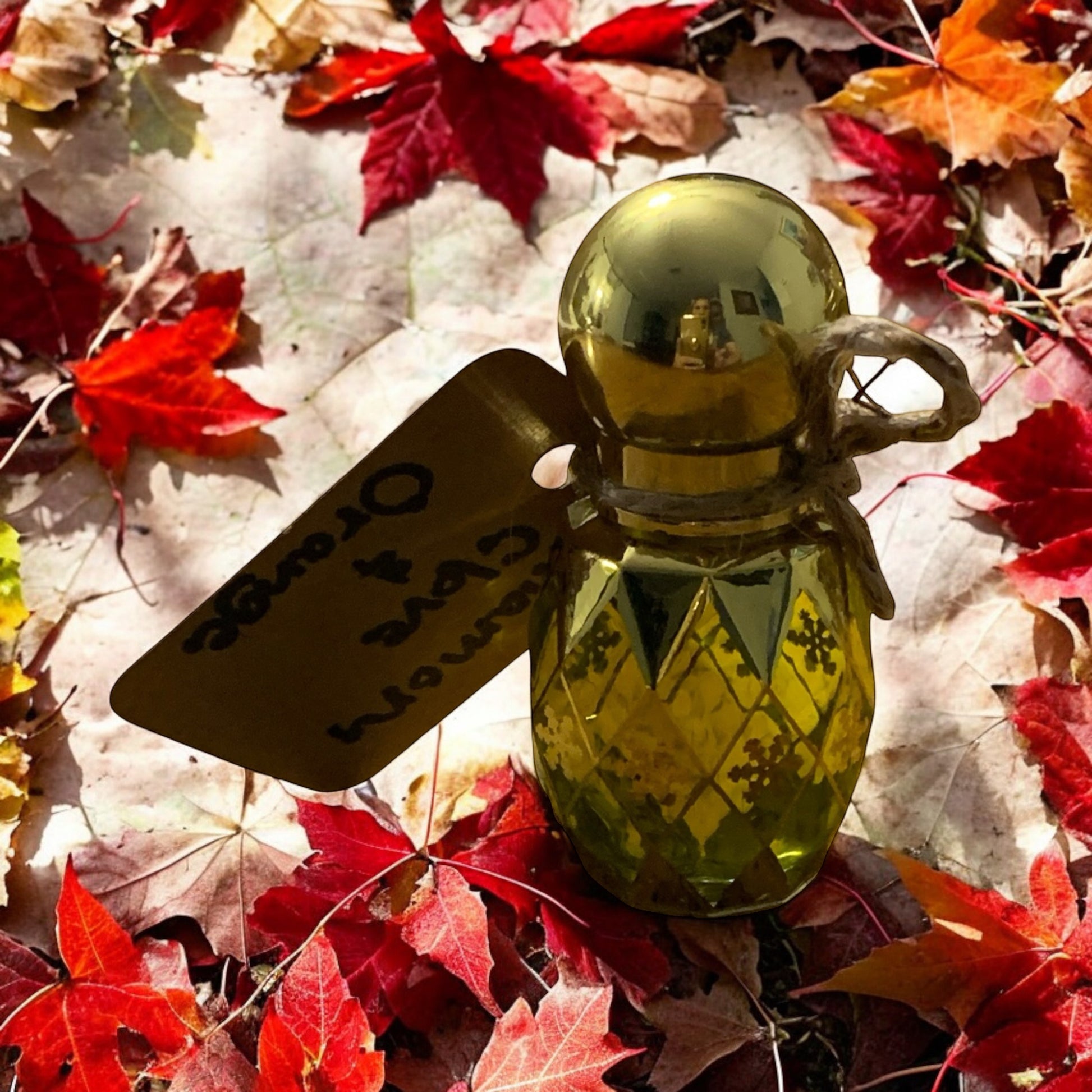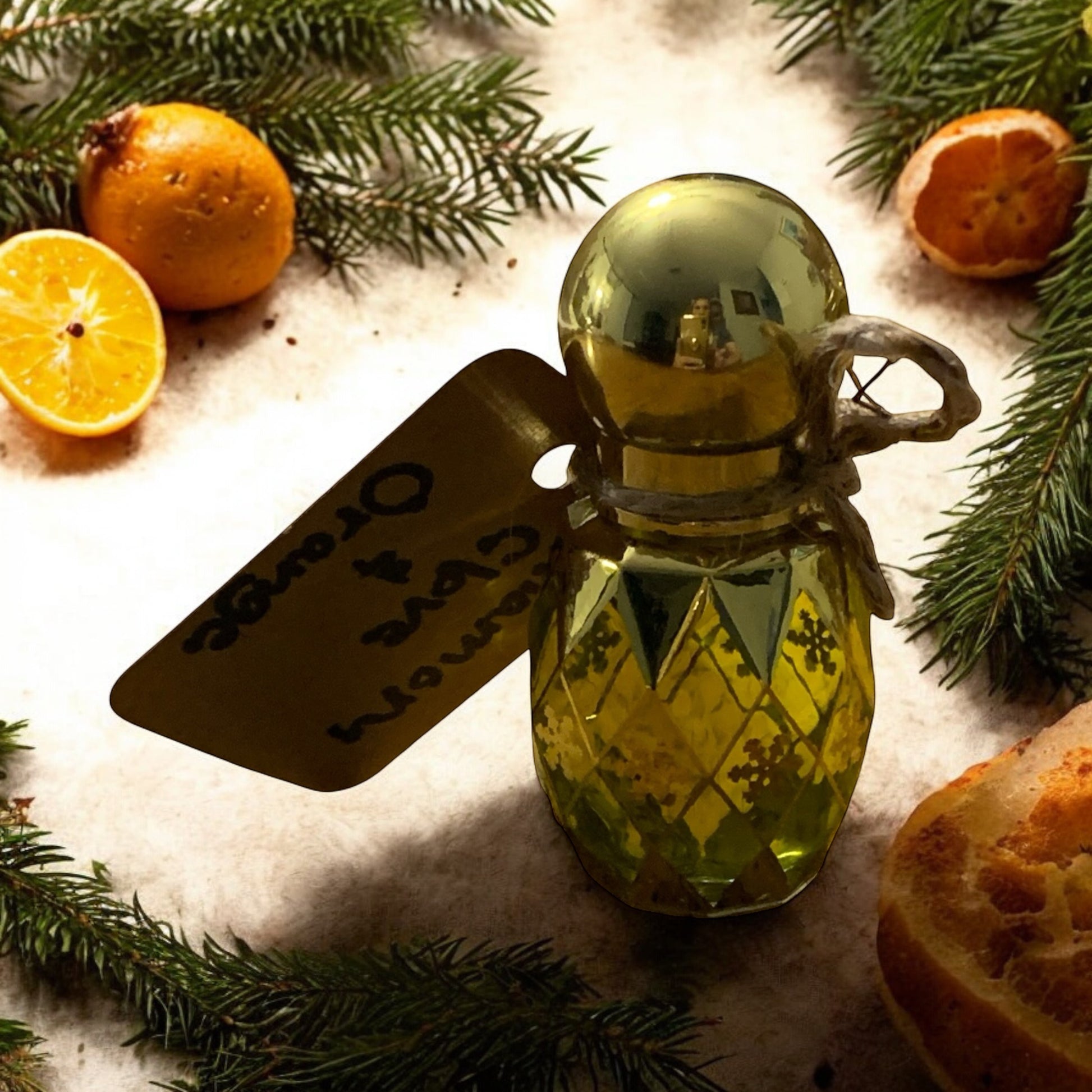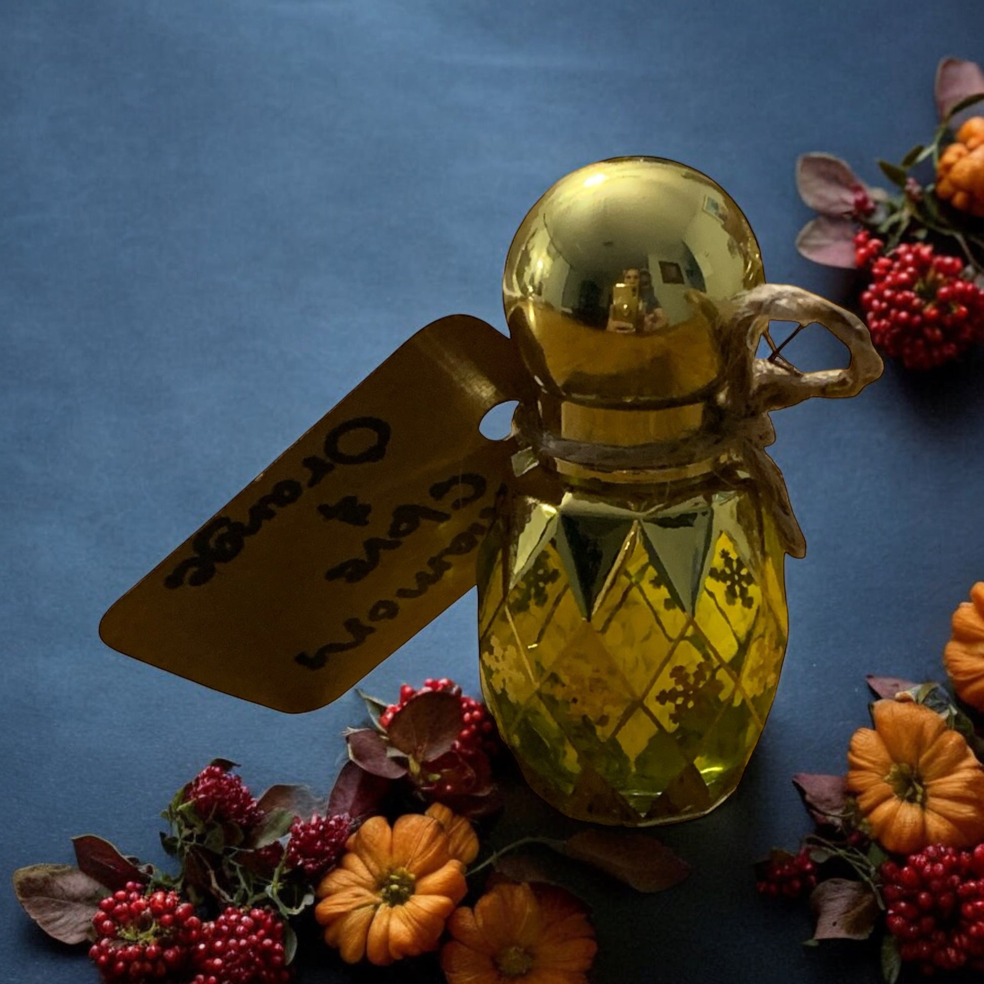 Anointing Oil Orange, Clove, Cinnamon Hand Poured. 12.5 ml bottle. Organic olive oil and essential oils combined for the perfect scent. Store in a cool, dark place. Each bottle includes a velvet pouch. For topical use only.
