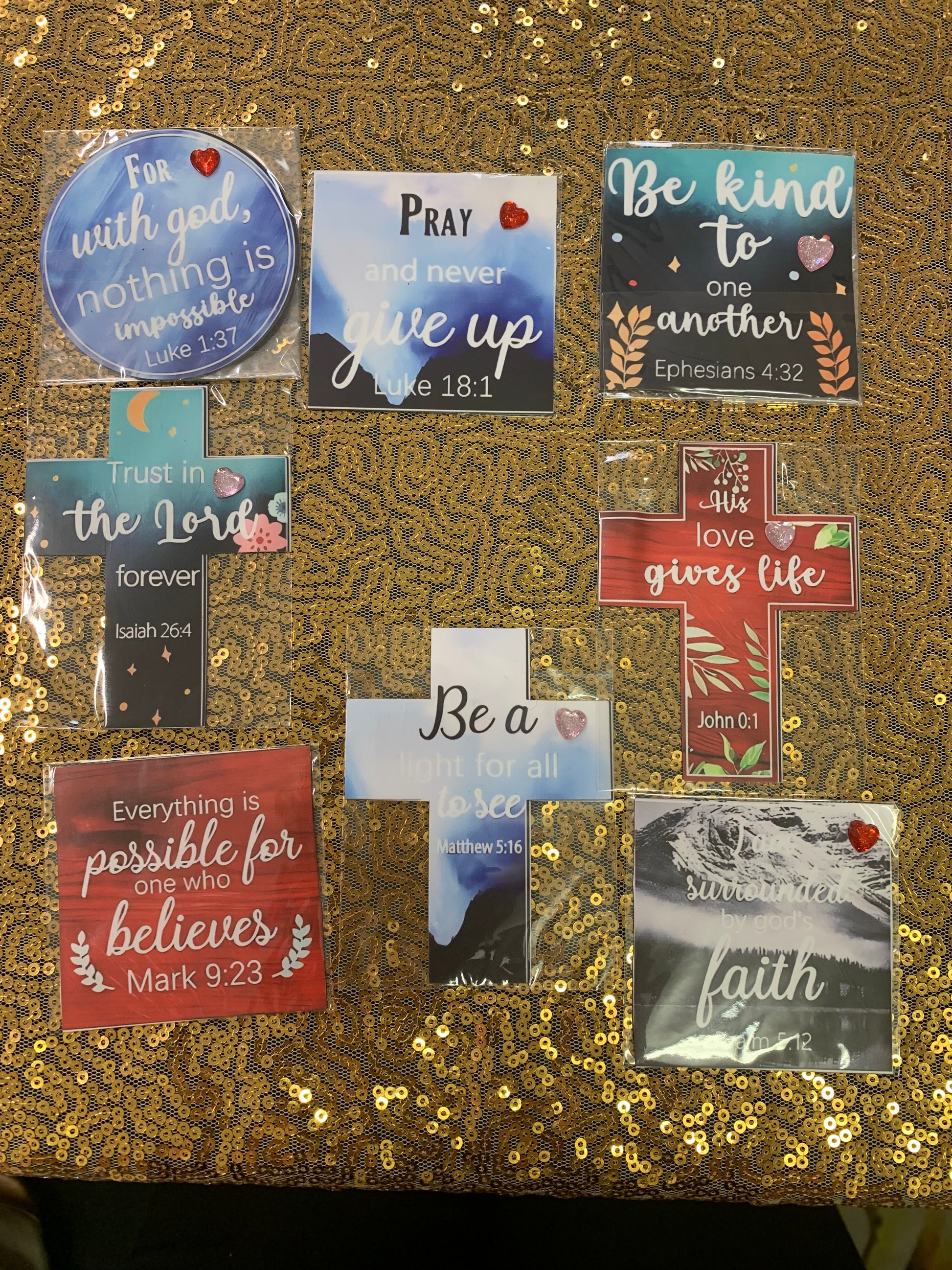 Enhance your daily spiritual practice with our set of high-quality Bible verse magnets. Each magnet features a powerful and uplifting verse, providing a constant reminder of God's love and guidance. Display them on your fridge or any magnetic surface for daily inspiration.