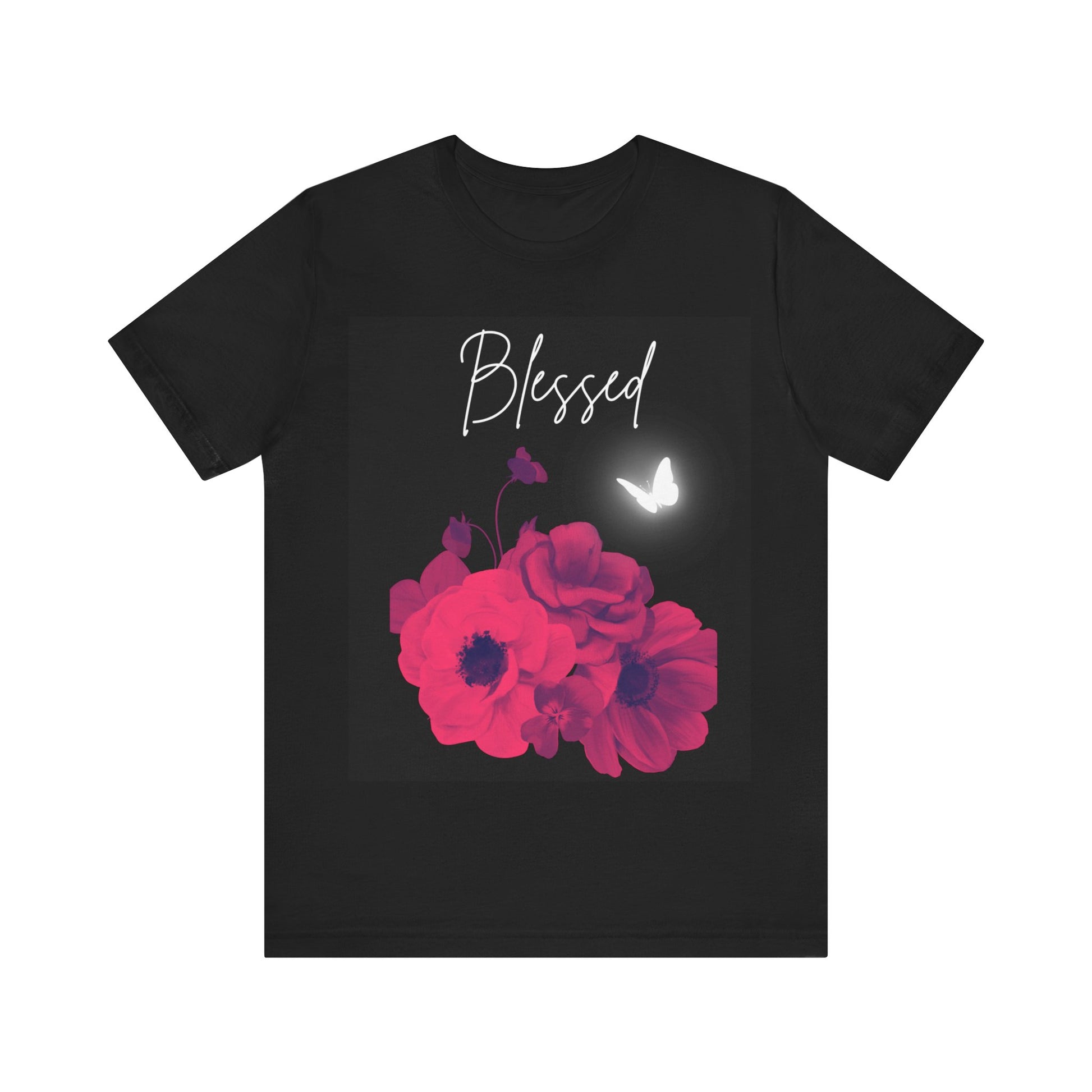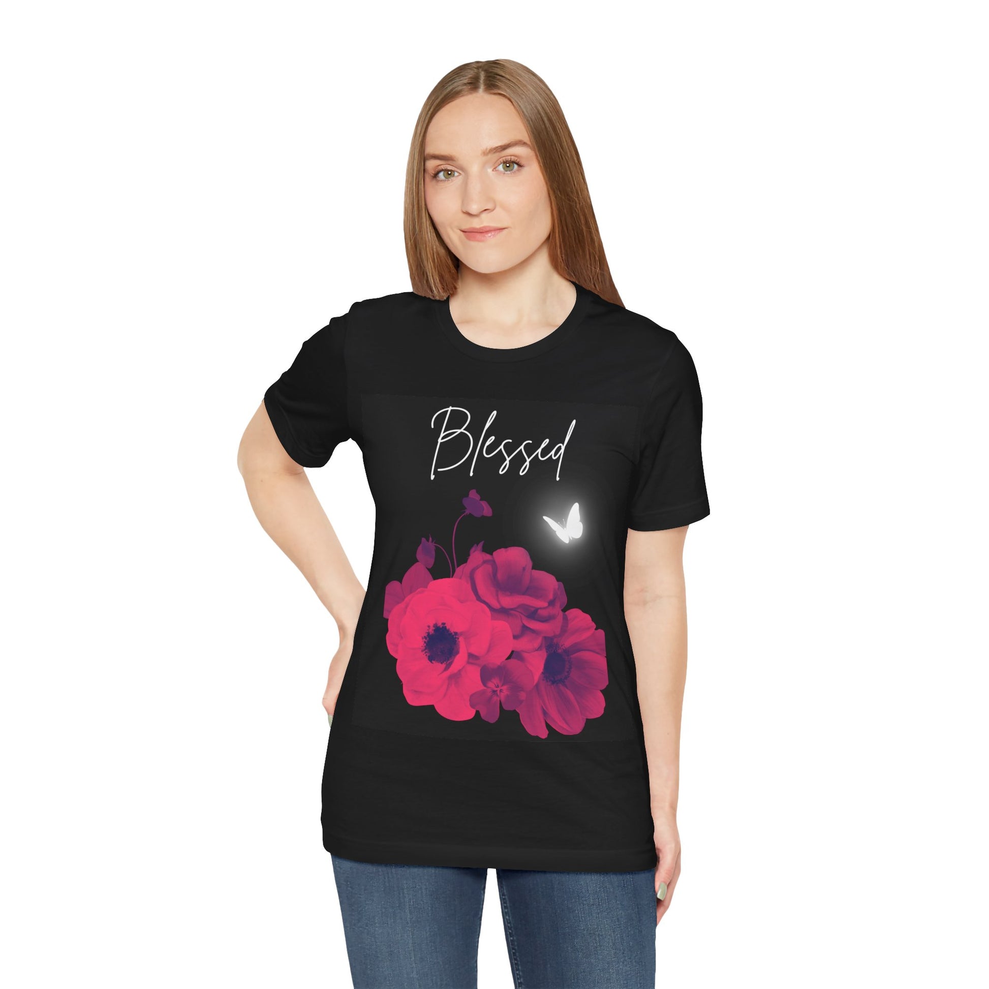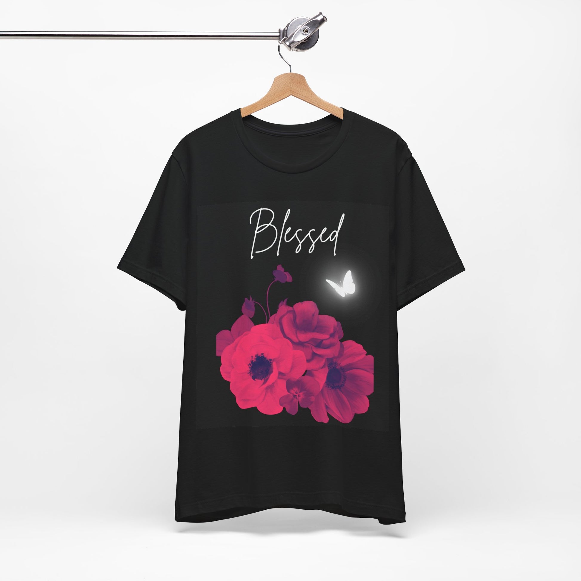 Blessed Red Flowers Butterfly Jersey Short Sleeve Tee