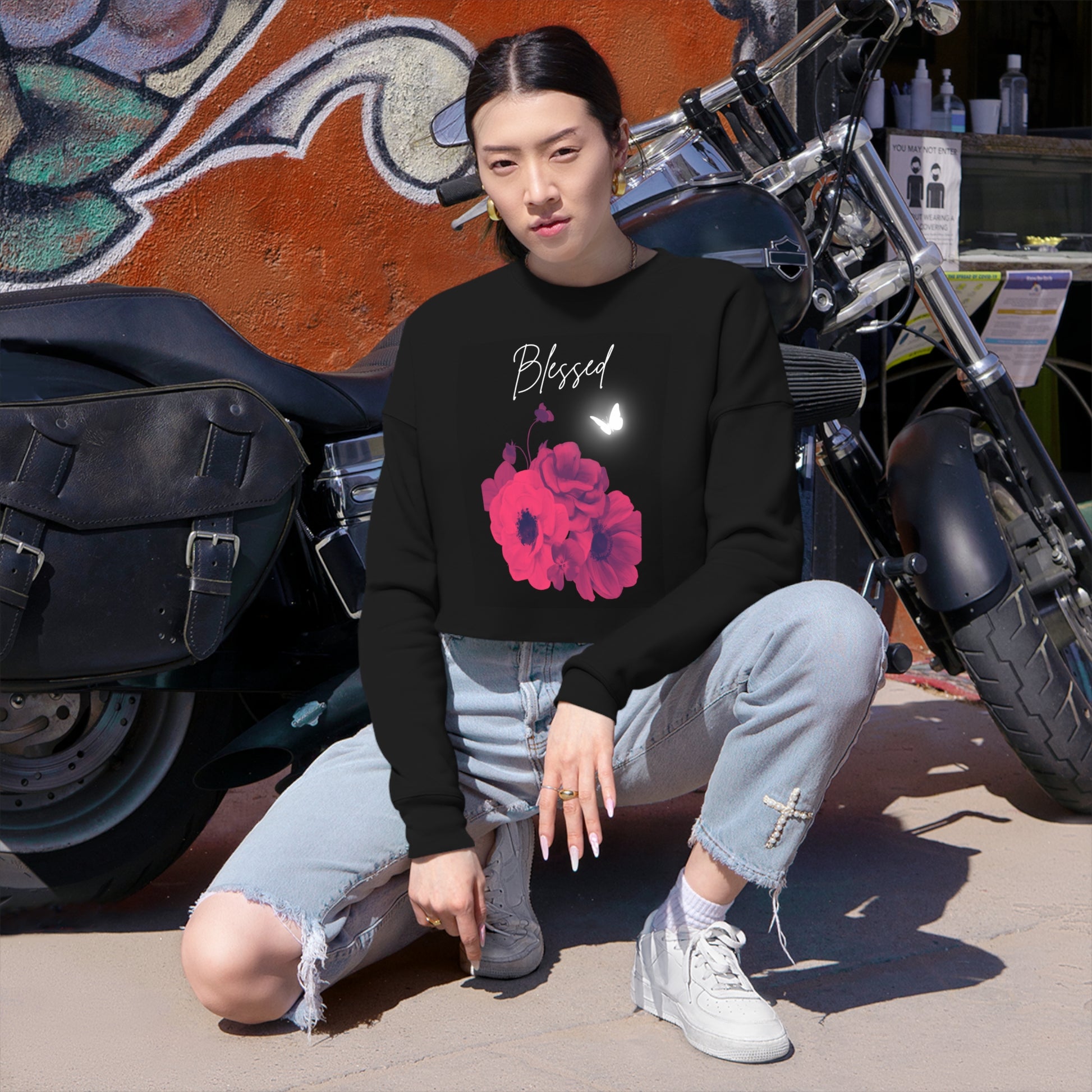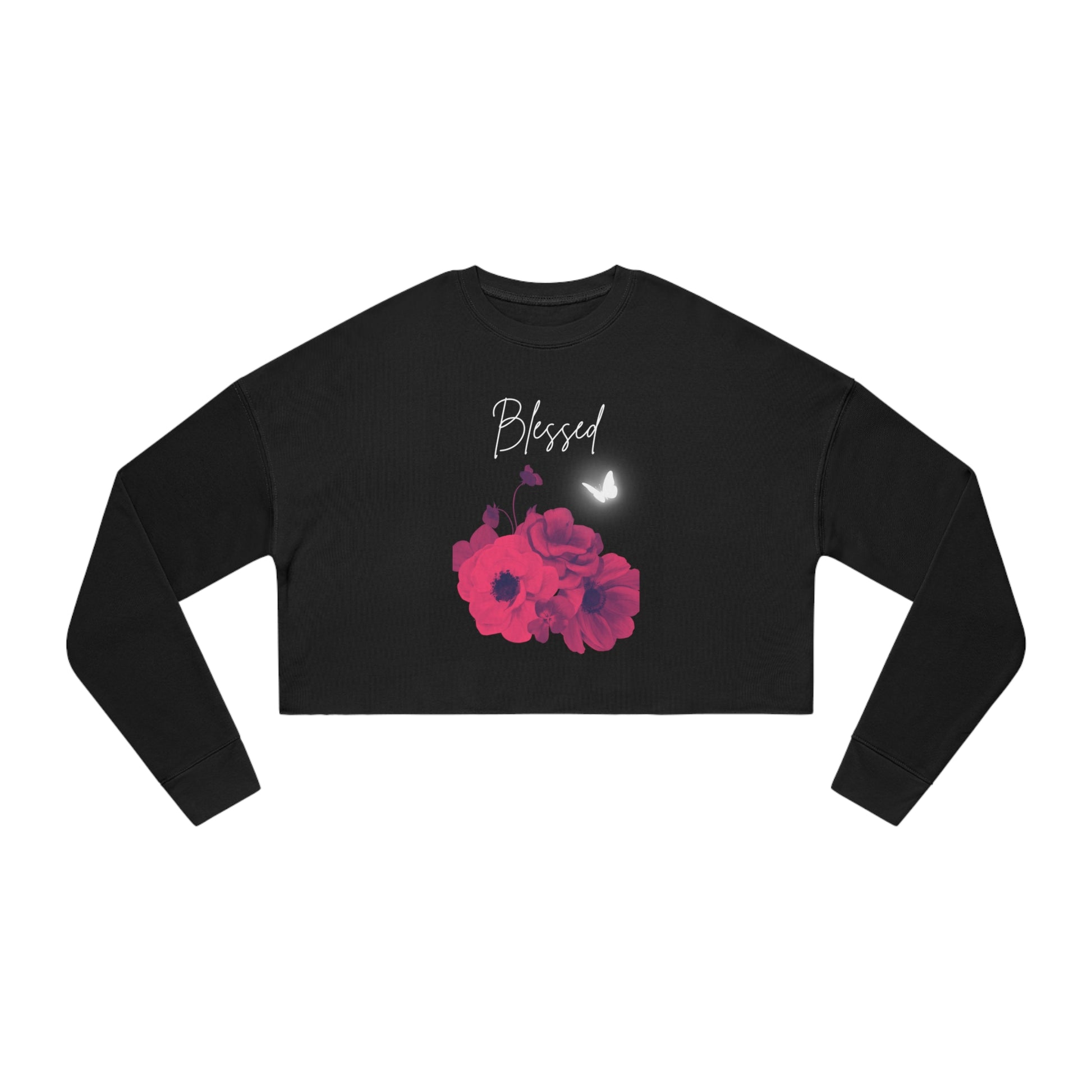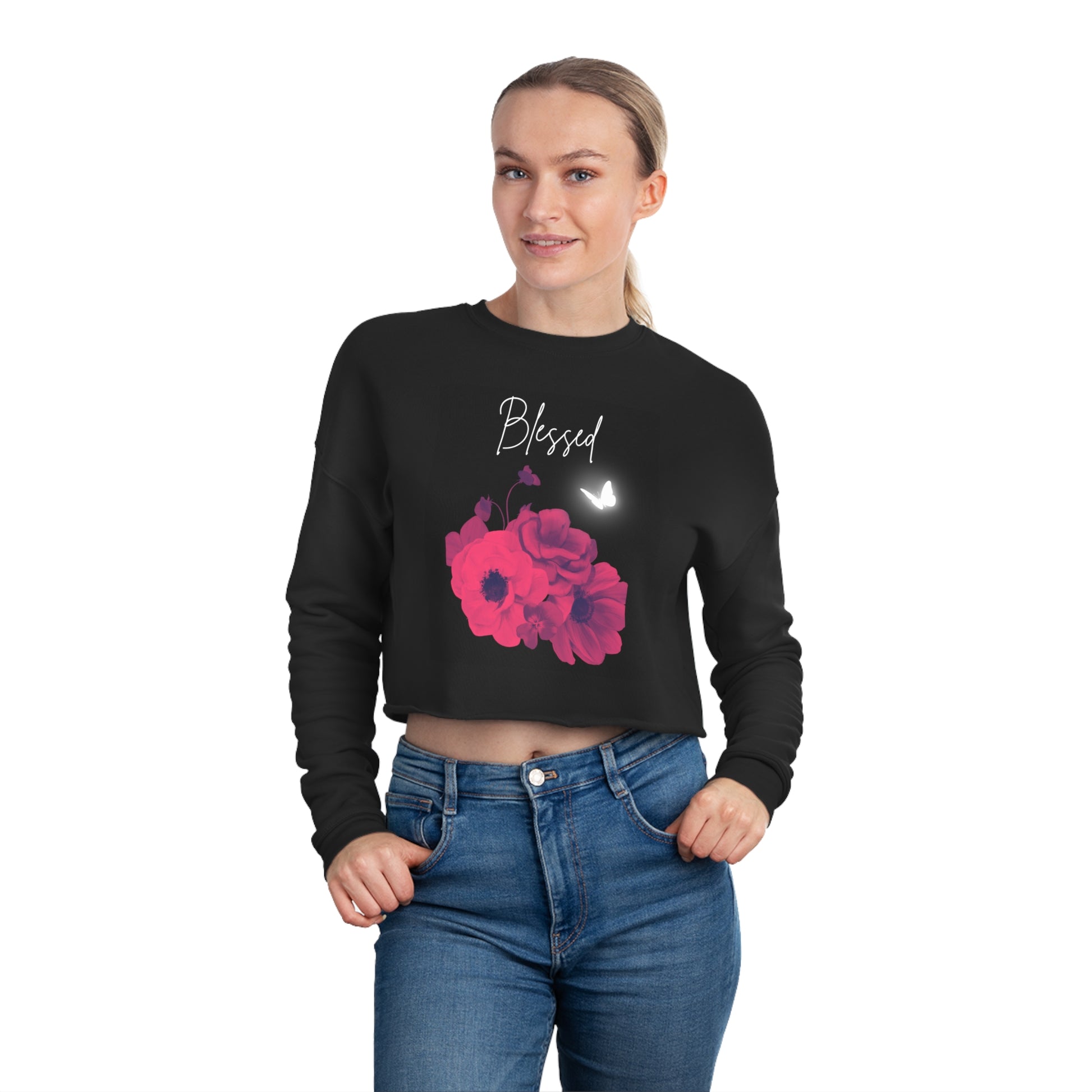 Blessed Red Flowers Butterfly Women's Cropped Sweatshirt