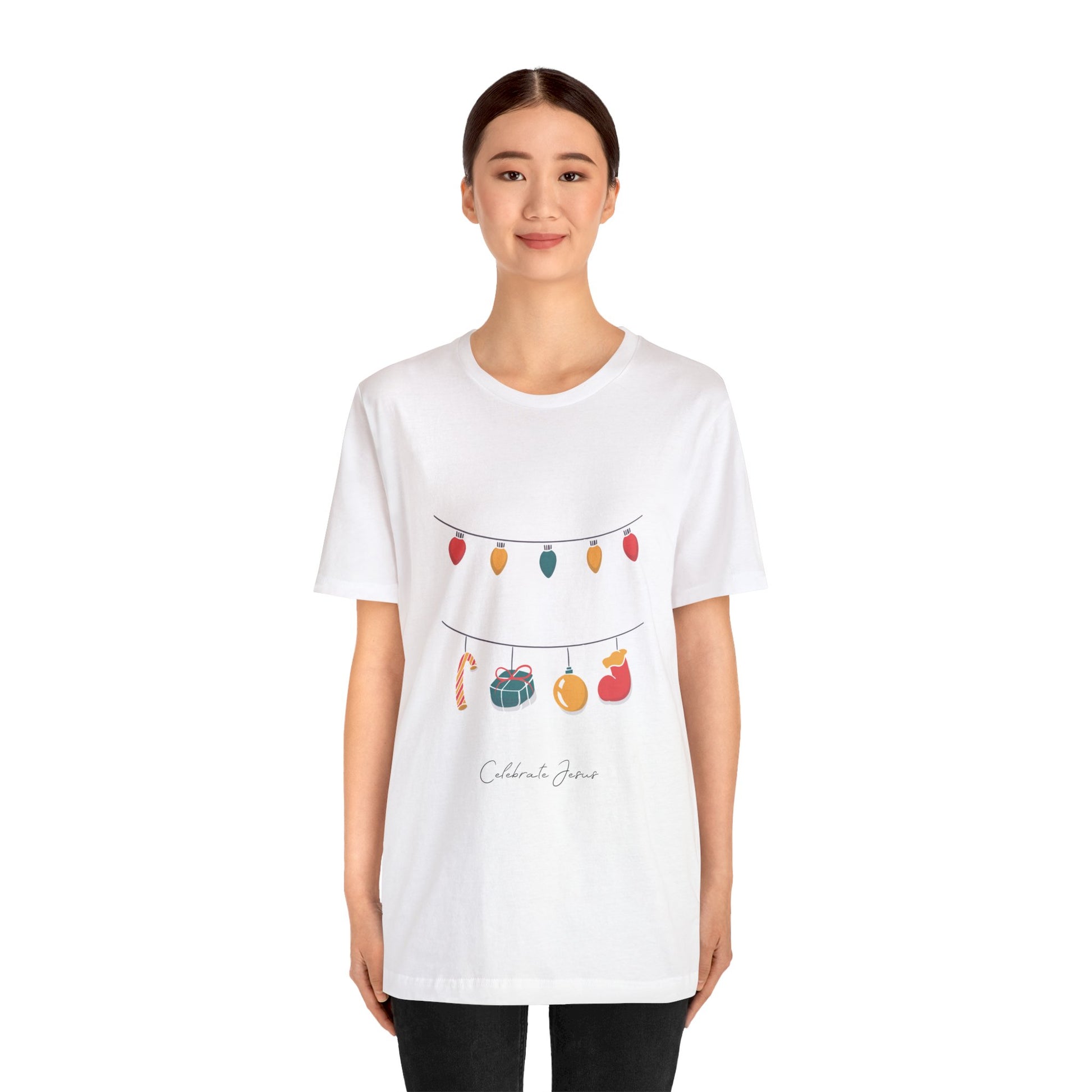 This festive Christmas T shirt allows you to proudly celebrate the true meaning of the season - Jesus Christ. Made from high-quality materials, it offers both comfort and style. With its classic design and impactful message, it's perfect for spreading joy and sharing your faith with others.