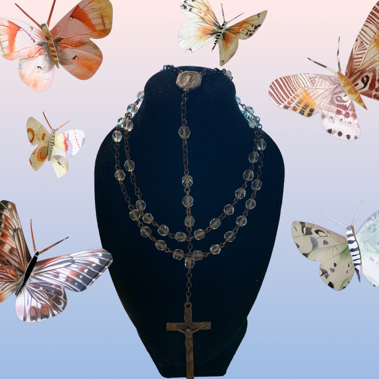 Clear Bead Rosary, Vintage Collection. 24 inch rosary.