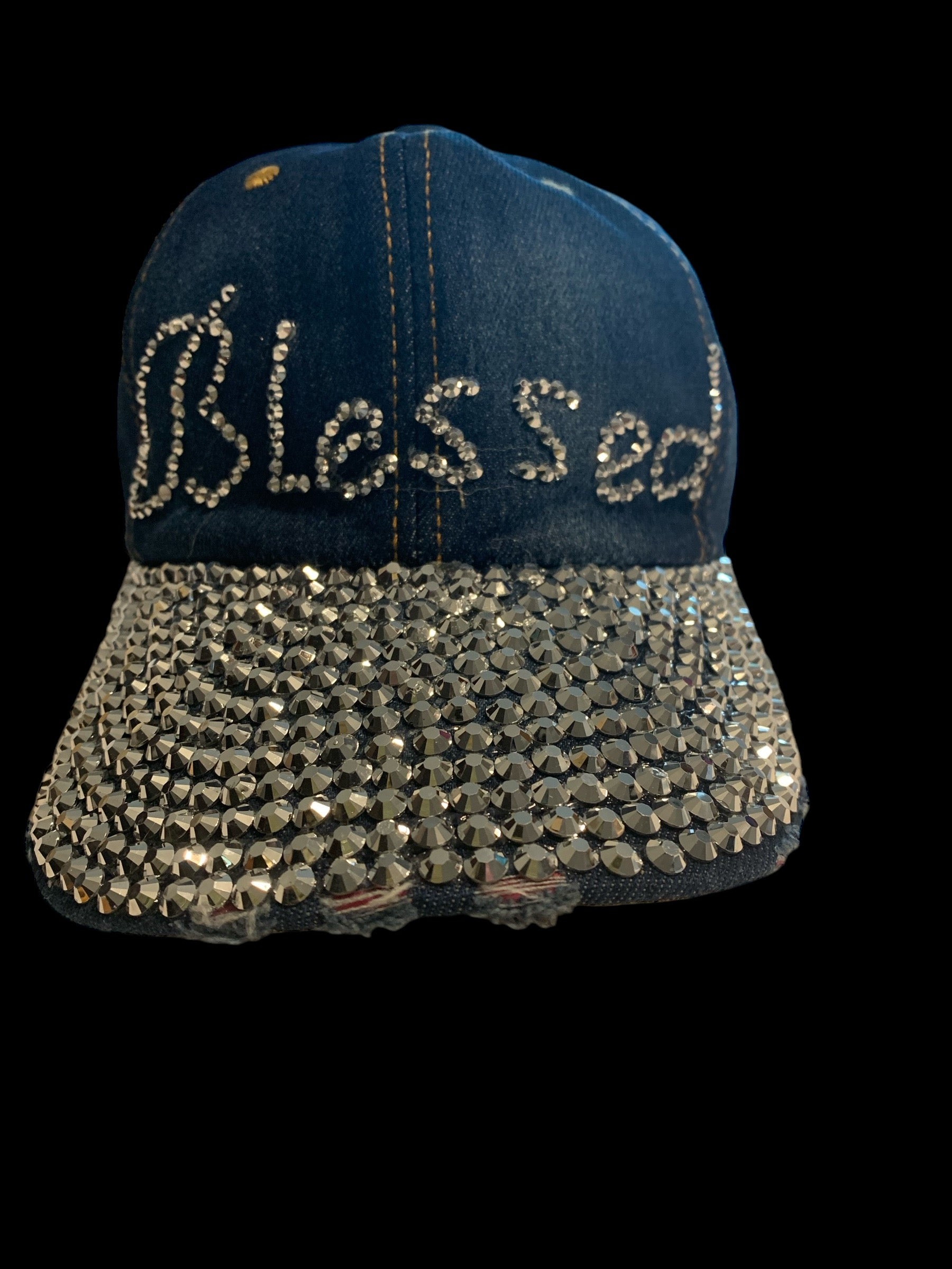 Blessed Rhinestone Blue Jean Cap Hat