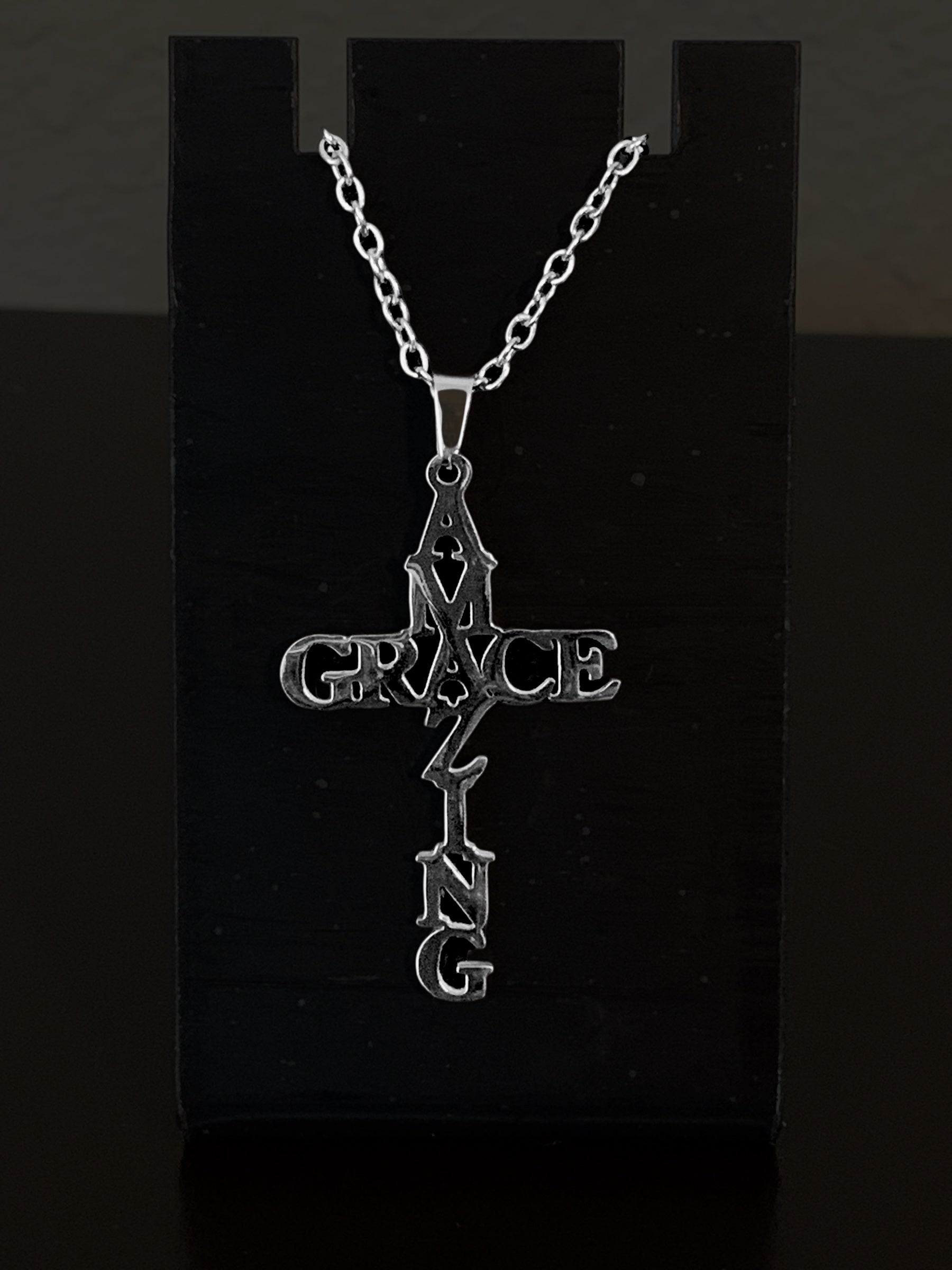 Amazing Grace Cross Stainless Steel Necklace. 18 inch chain.
