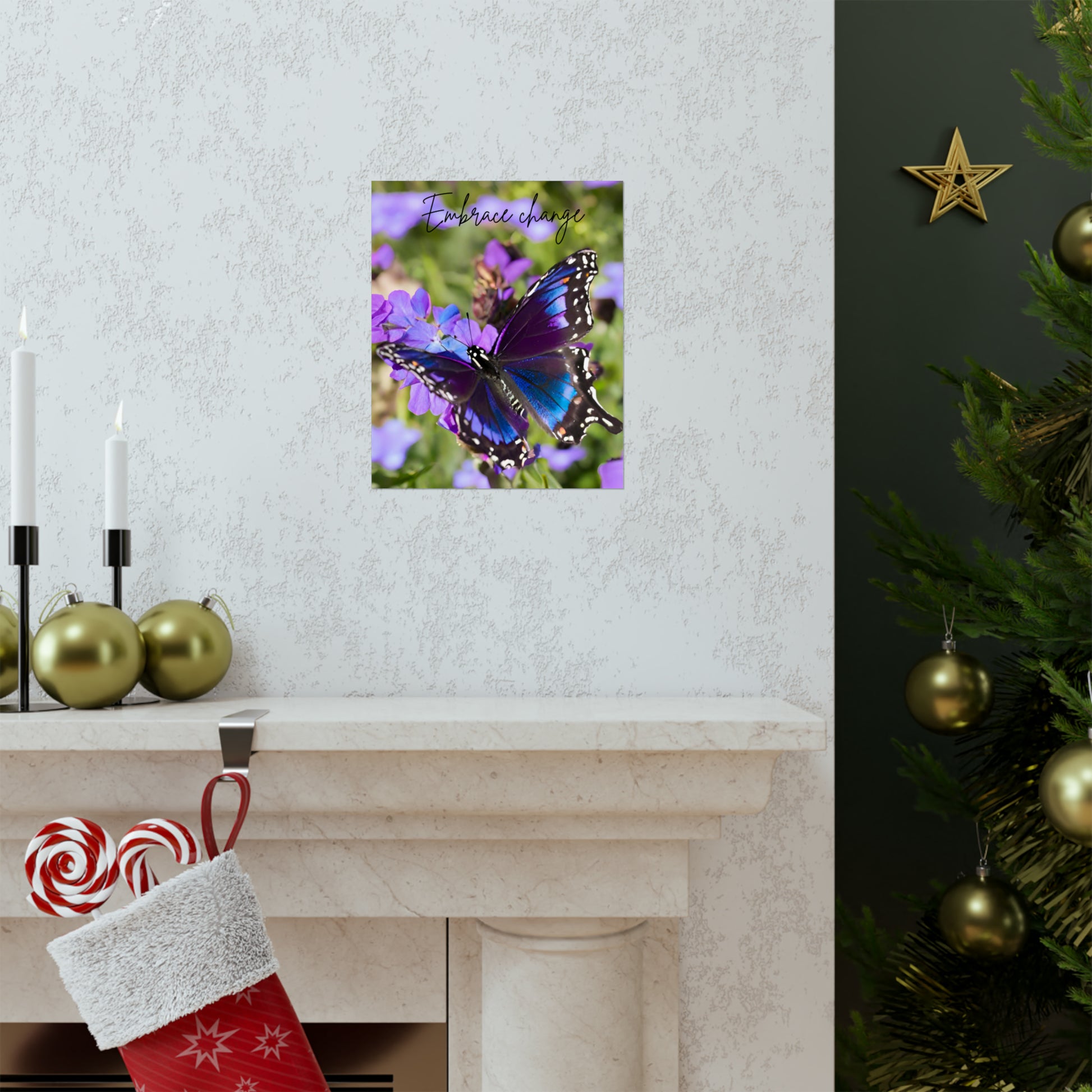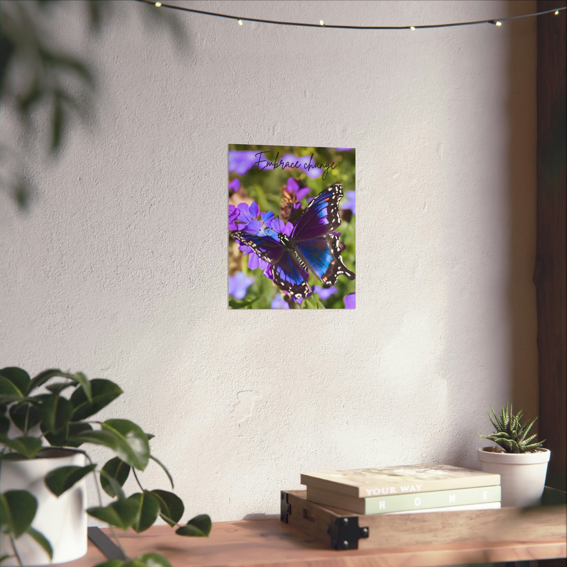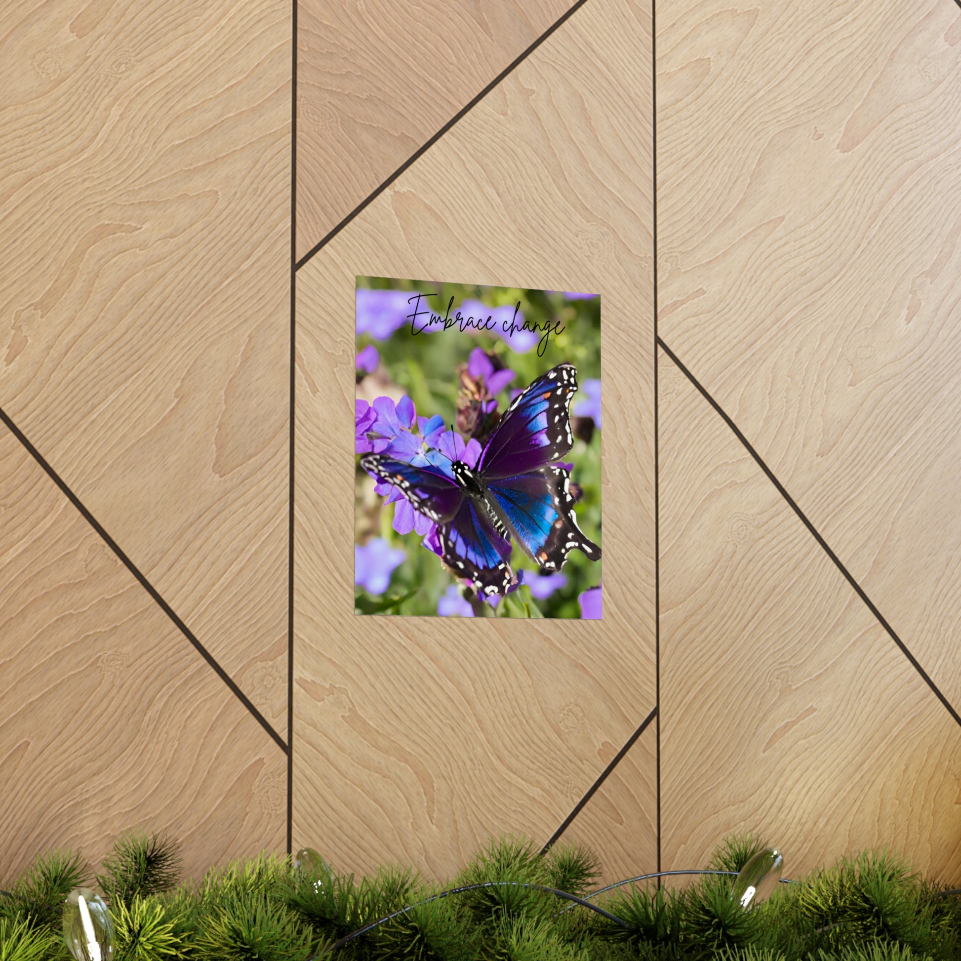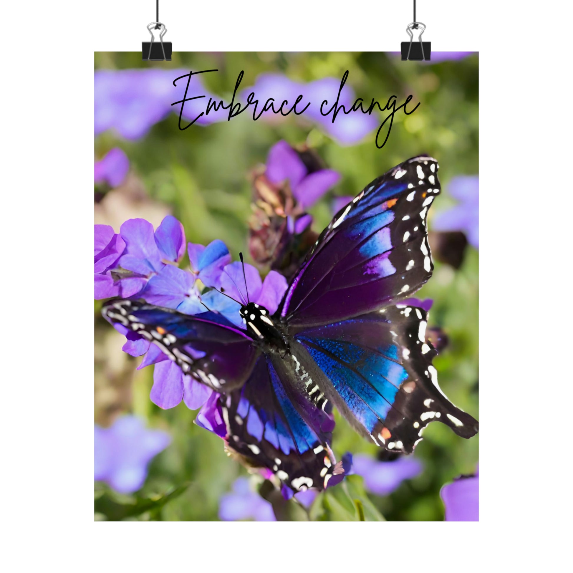 Embrace Change Purple Butterfly Matte Vertical Poster. Introducing the perfect means to print art on – the premium matte vertical posters. Made with museum-grade paper (175gsm fine art paper), these posters translate any digital artwork into exquisite real life décor. Available in multiple sizes, each poster is printed with top-tier pigmented archival inks for a stunning end result.