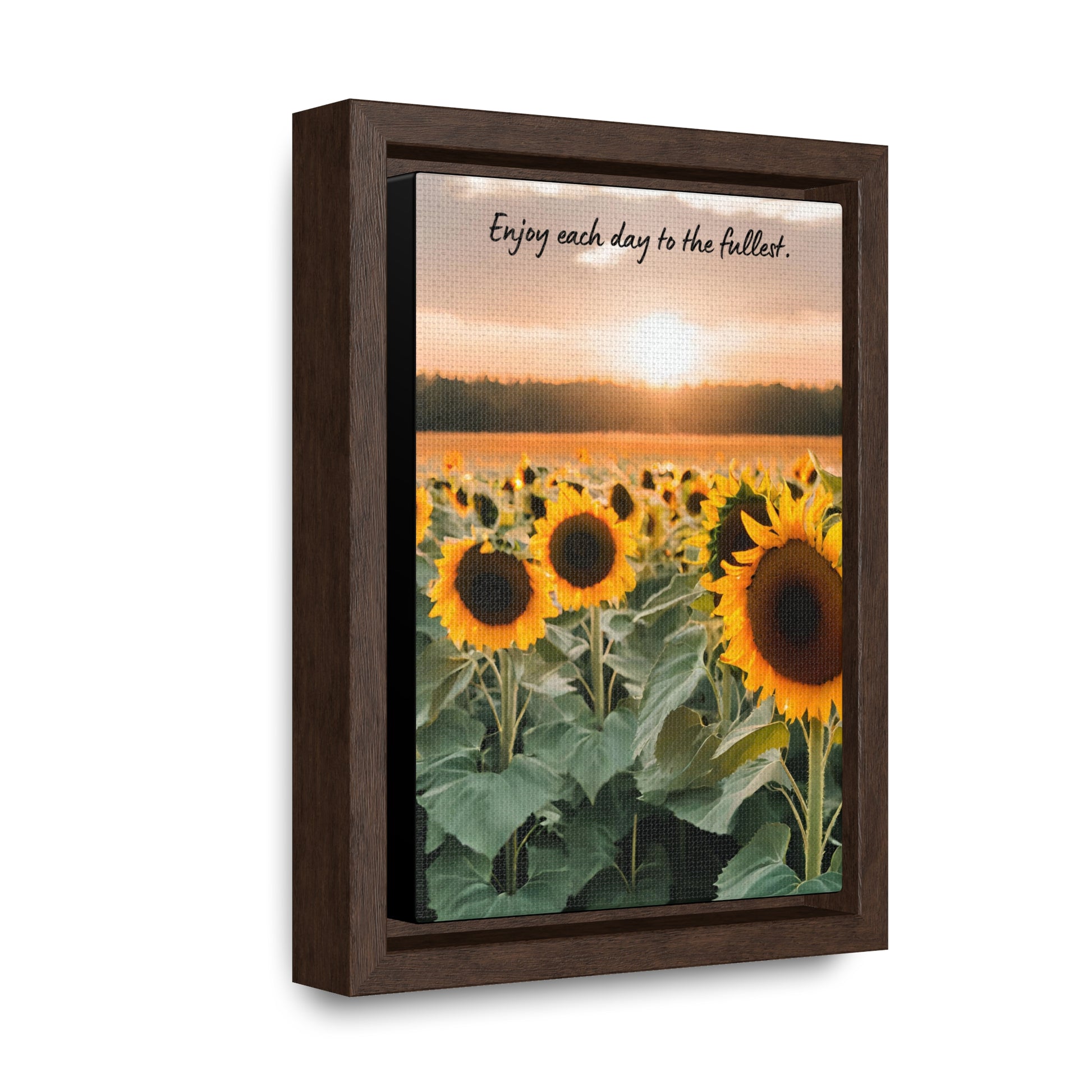 Enjoy Each Day to the Fullest Vertical Frame (5x 7). Let your personality be reflected on the artwork adorning your walls. This vertical gallery wrapped canvas print will always look as tight and flat as the day it was made. Every frame is built with a solid face to support the canvas and prevent deforming. Available in multiple sizes, comes in walnut and black frame options.