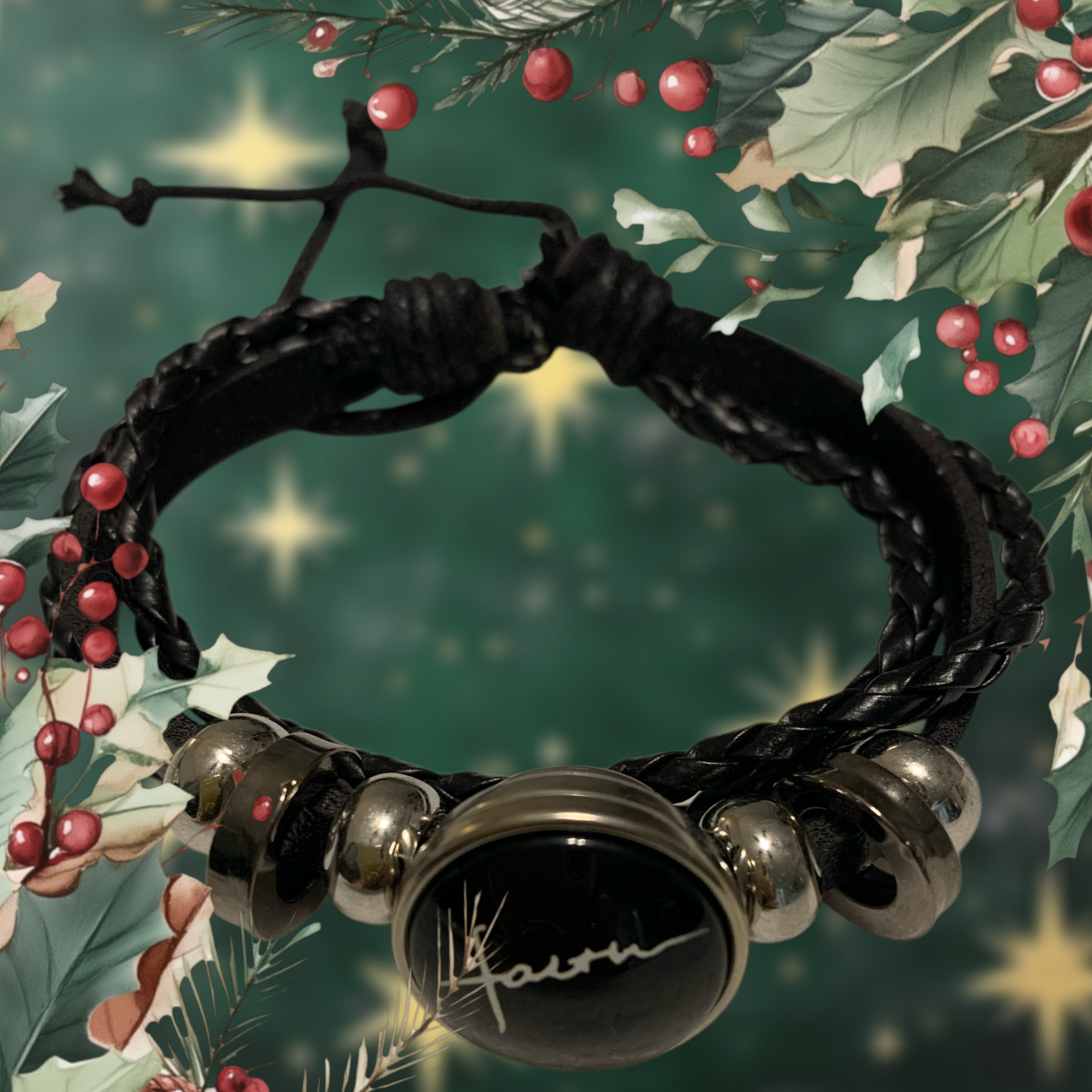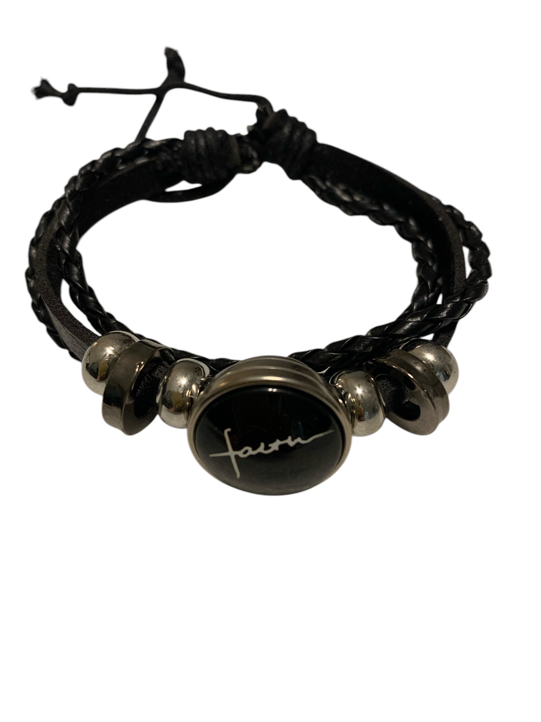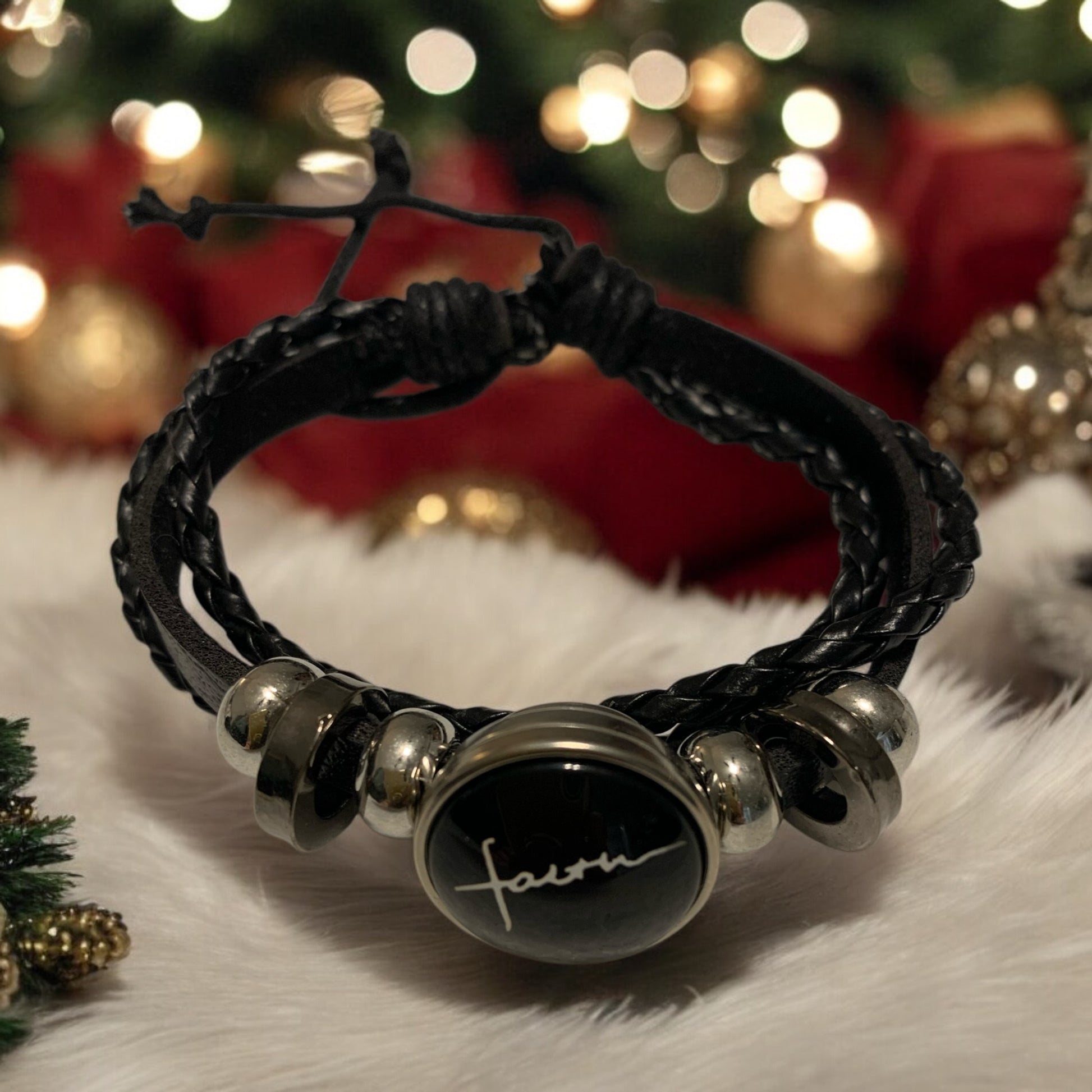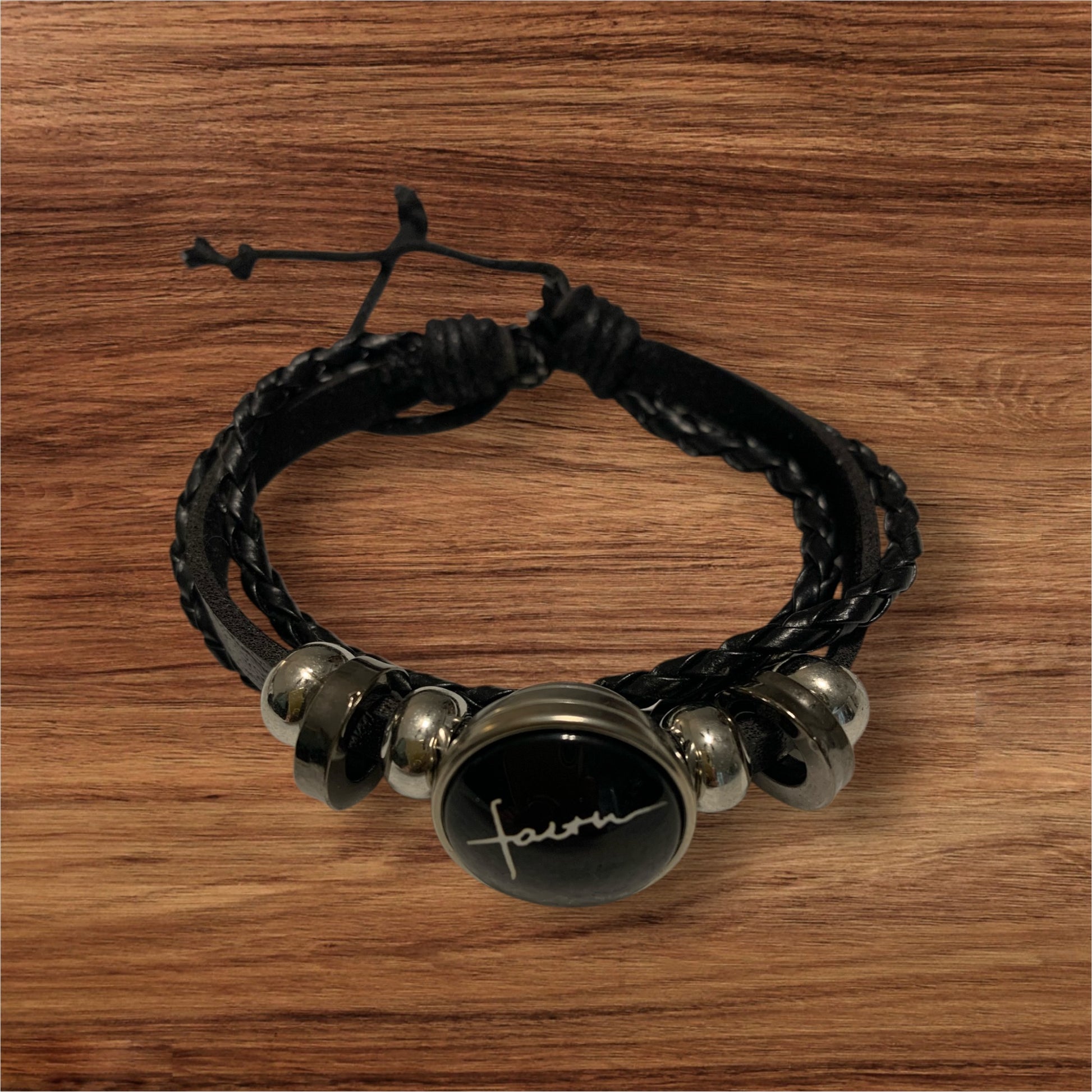 Faith Cross Dome Multistrand Faux Leather Cord Adjustable Bracelet
