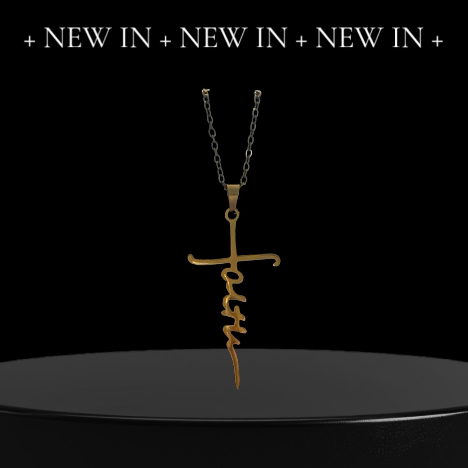 Faith Cross (Gold Plated Stainless Steel) Necklace. Chain can be worn at various lengths 18-20 inches). Cross is 1.5 inches height x 0.5 inches width.