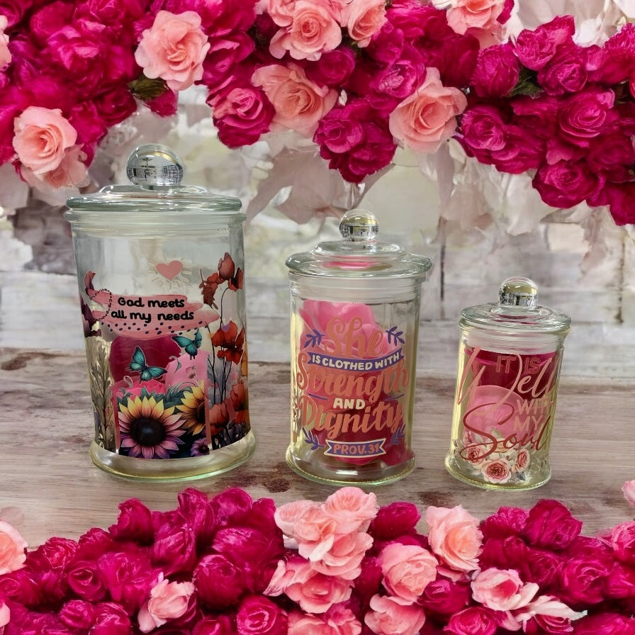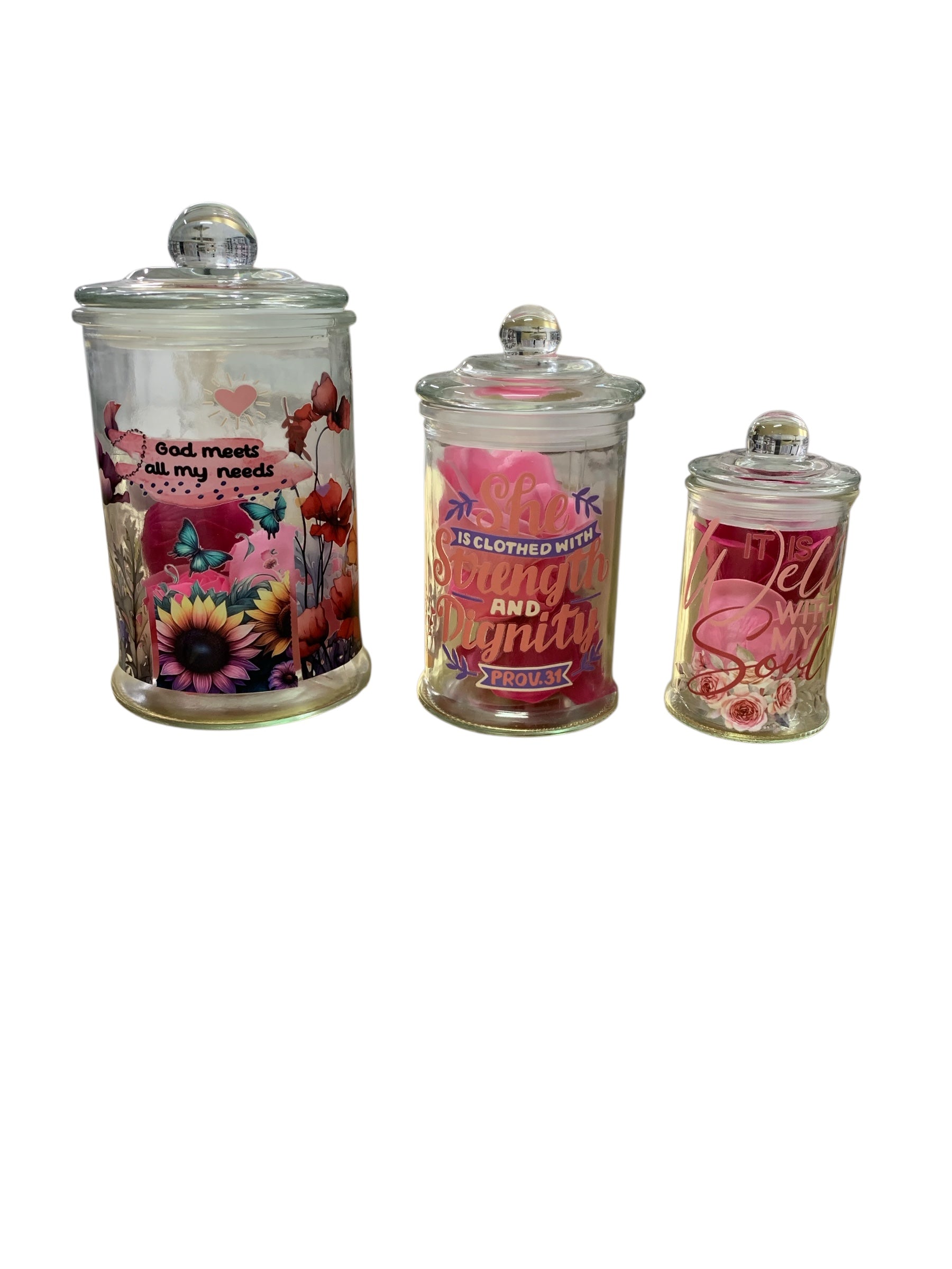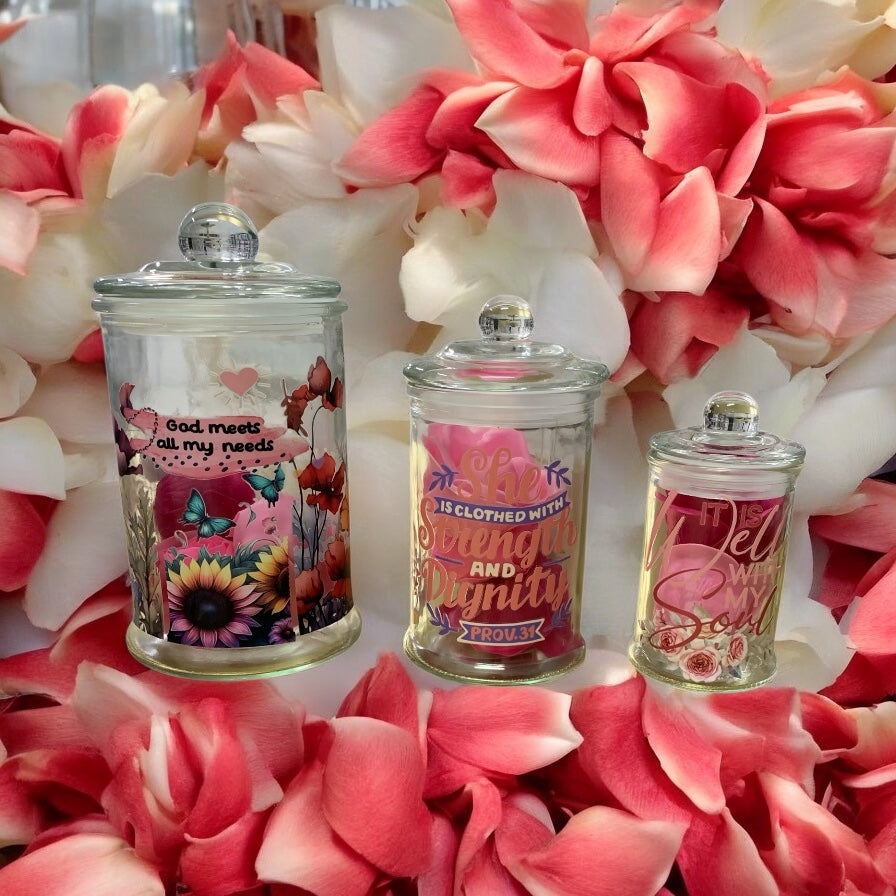 Faith Glass Jar with Lid Includes Bath Rose Petals