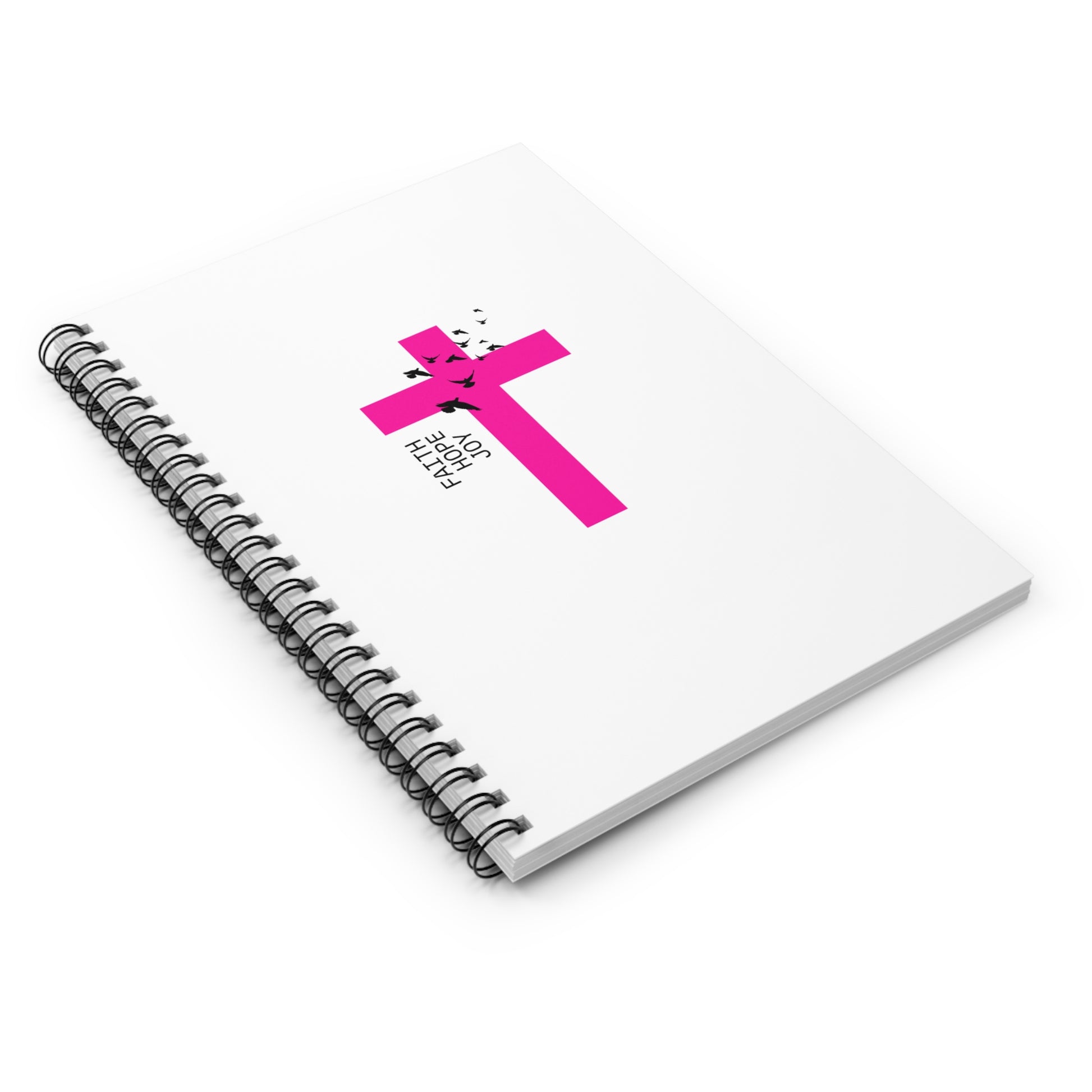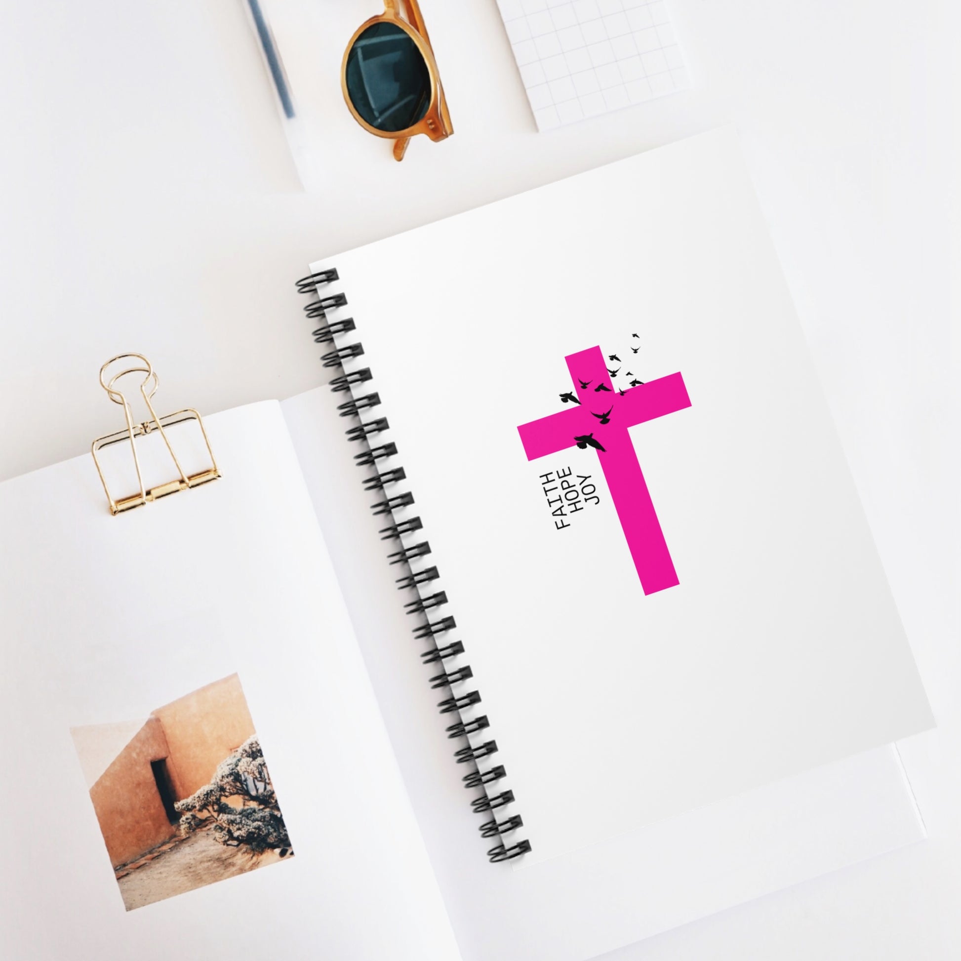 Faith, Hope, Joy Pink Cross Spiral Notebook - Ruled Line