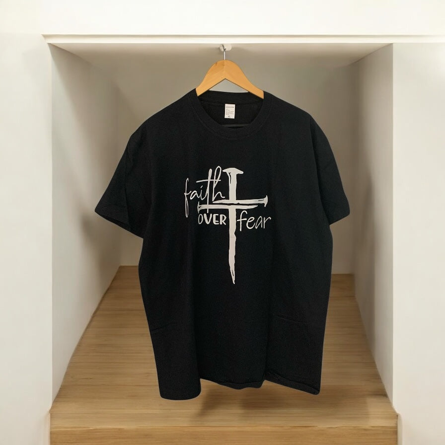 They say fear is the opposite of faith. With our Faith over Fear Cross T Shirt, you can boldly express your trust in something greater. Crafted with comfortable fabric and a powerful message, this shirt is a reminder to live with courage and confidence. Embrace your faith and conquer your fears.