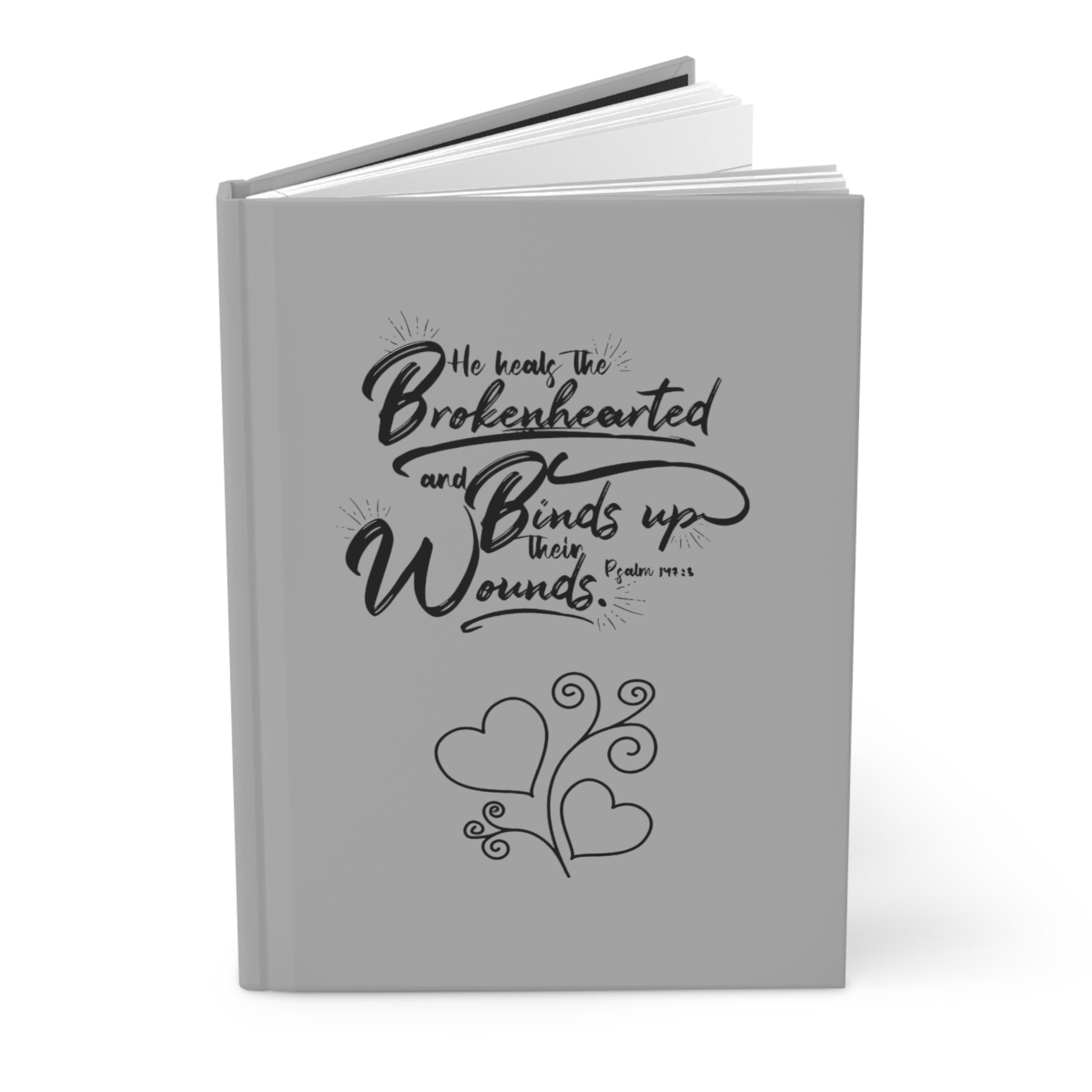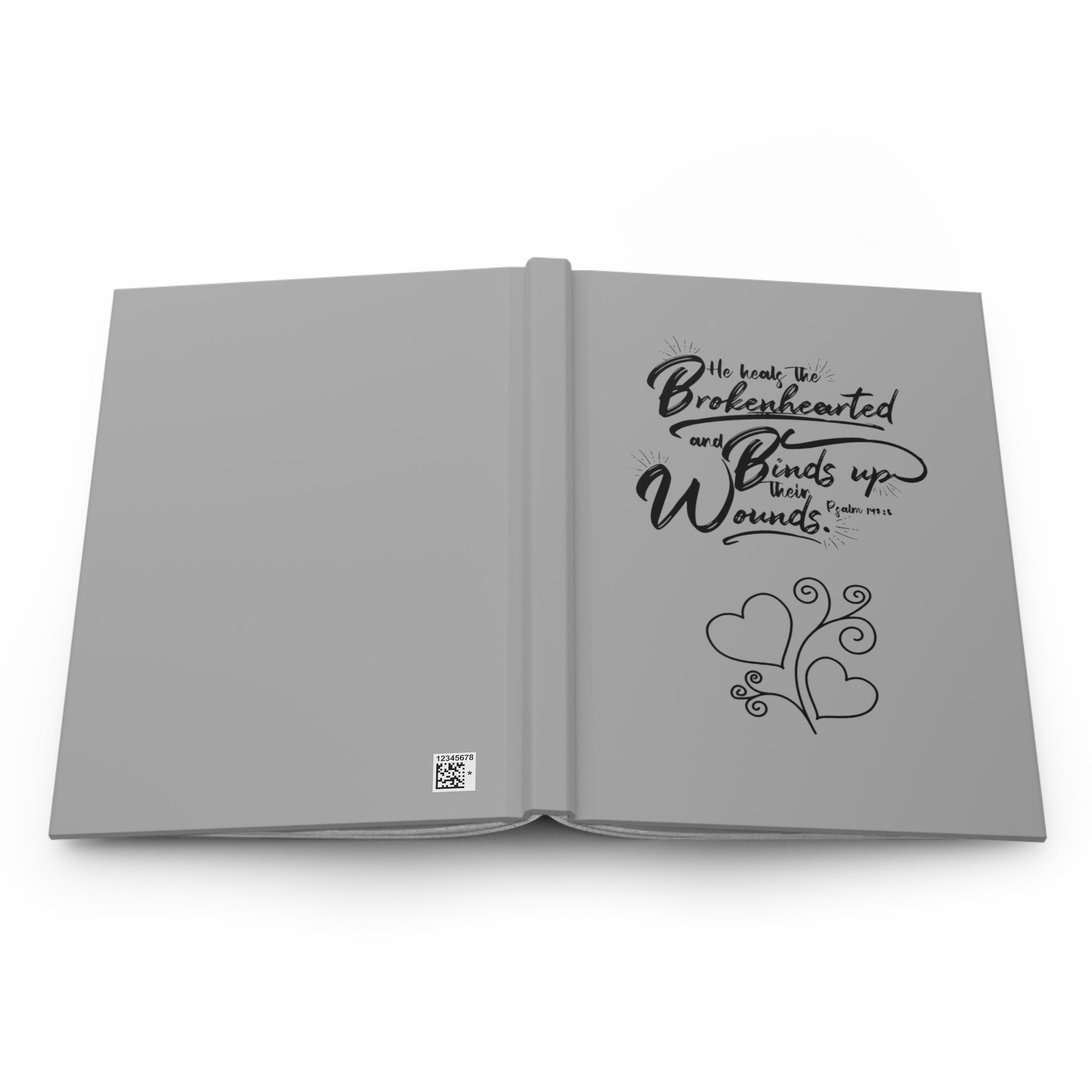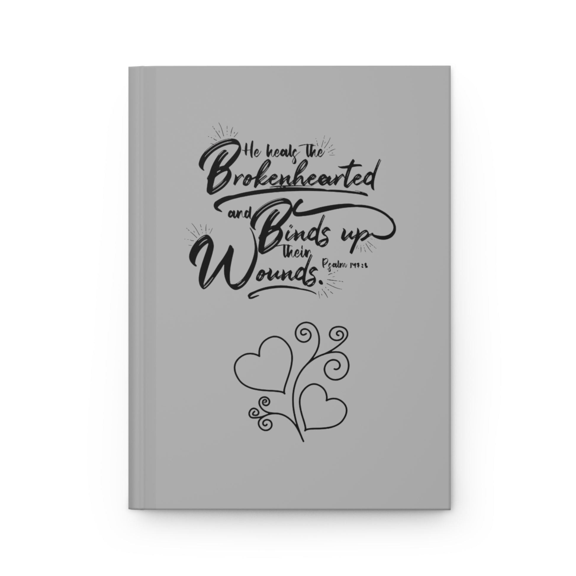 He Heals the Brokenhearted and Binds up their Wounds. Make your everyday journaling more personal, private, and stylish with this matte hardcover journal. Available in 5.75"x8", with 150 lined. The matte laminate coating on the cover will make them stay true to your personal style.