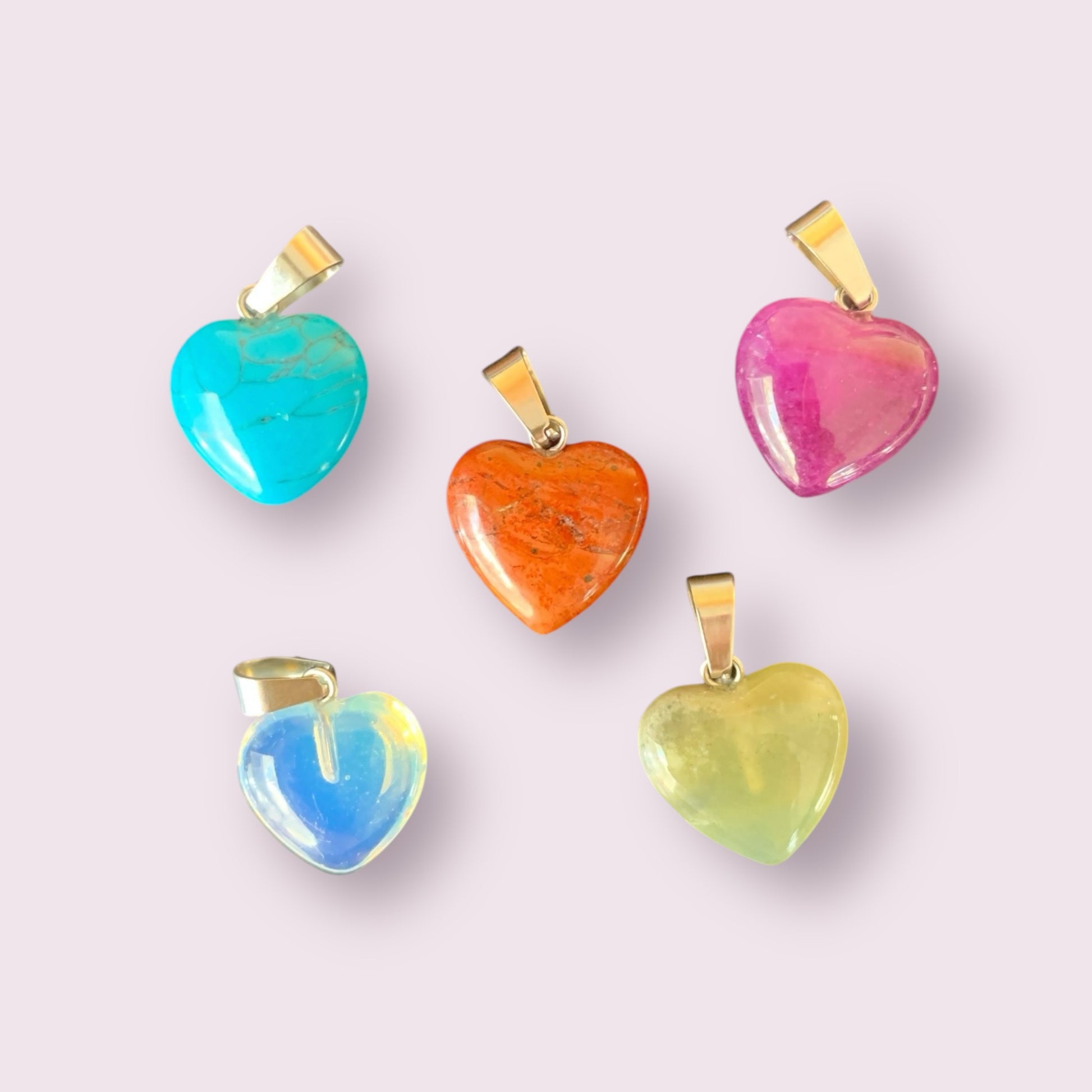 Heart Shaped Crystal Pendants with Leather Necklace. A collection of heart shaped crystal shaped hearts.