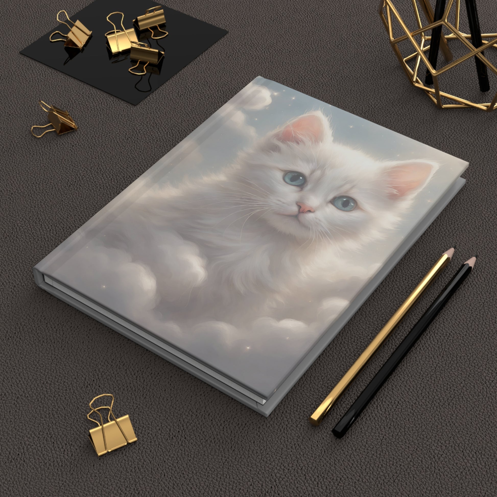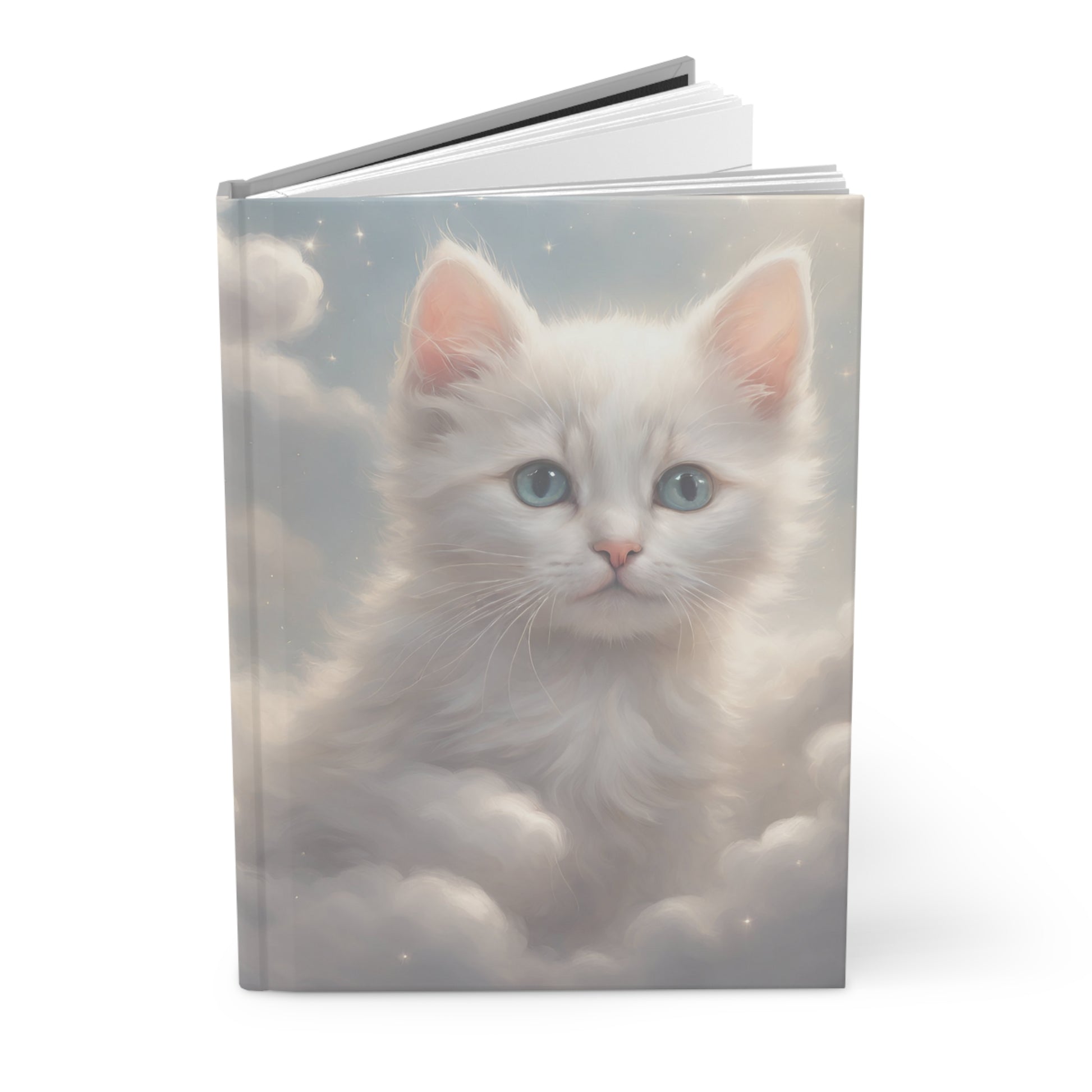 Heavenly Kitten Journal was designed for cat lovers. Make your everyday journaling more personal, private, and stylish with this matte hardcover journal. Available in 5.75"x8", with 150 lined pages. The matte laminate coating on the cover will make them stay true to your personal style.