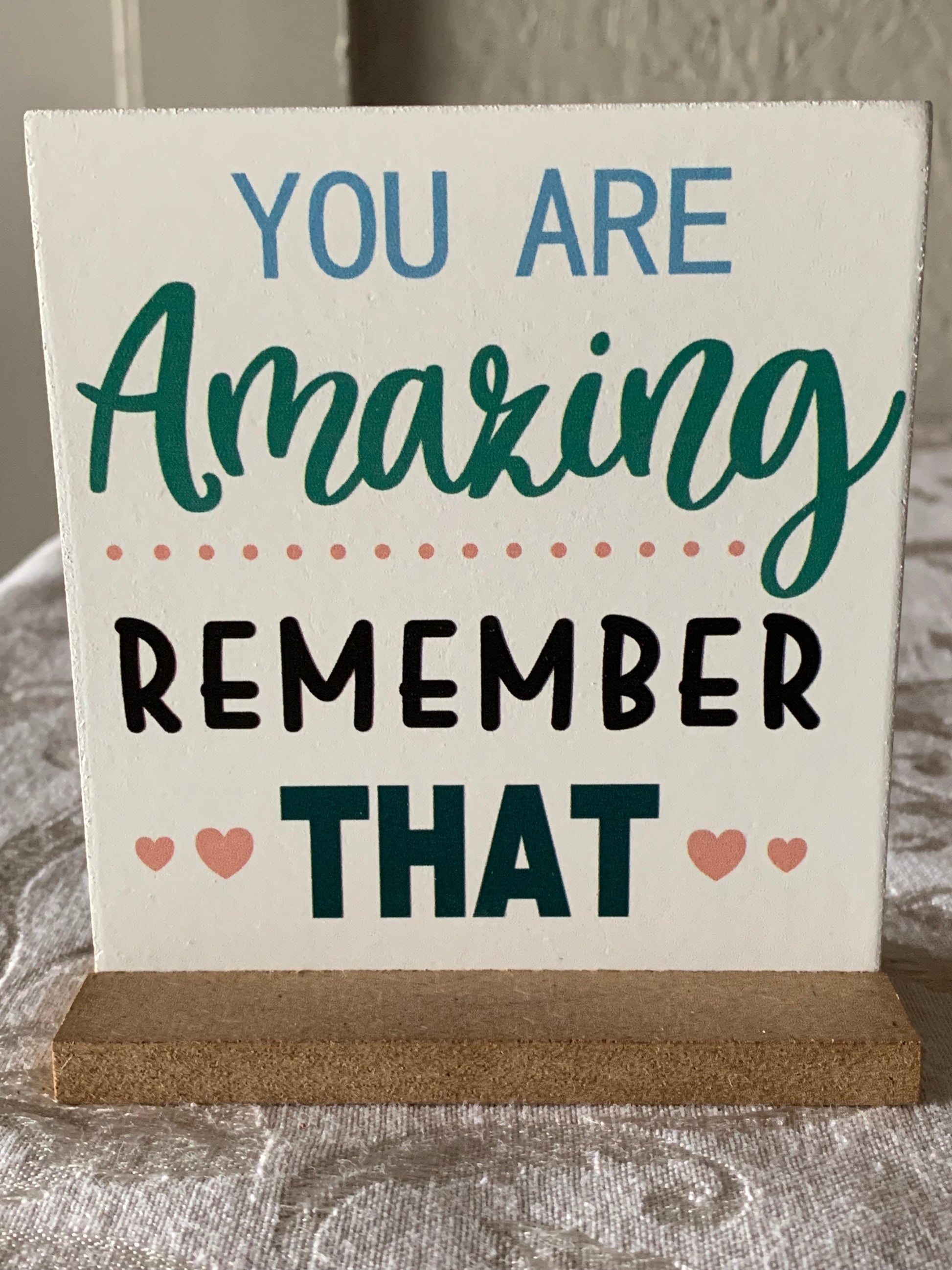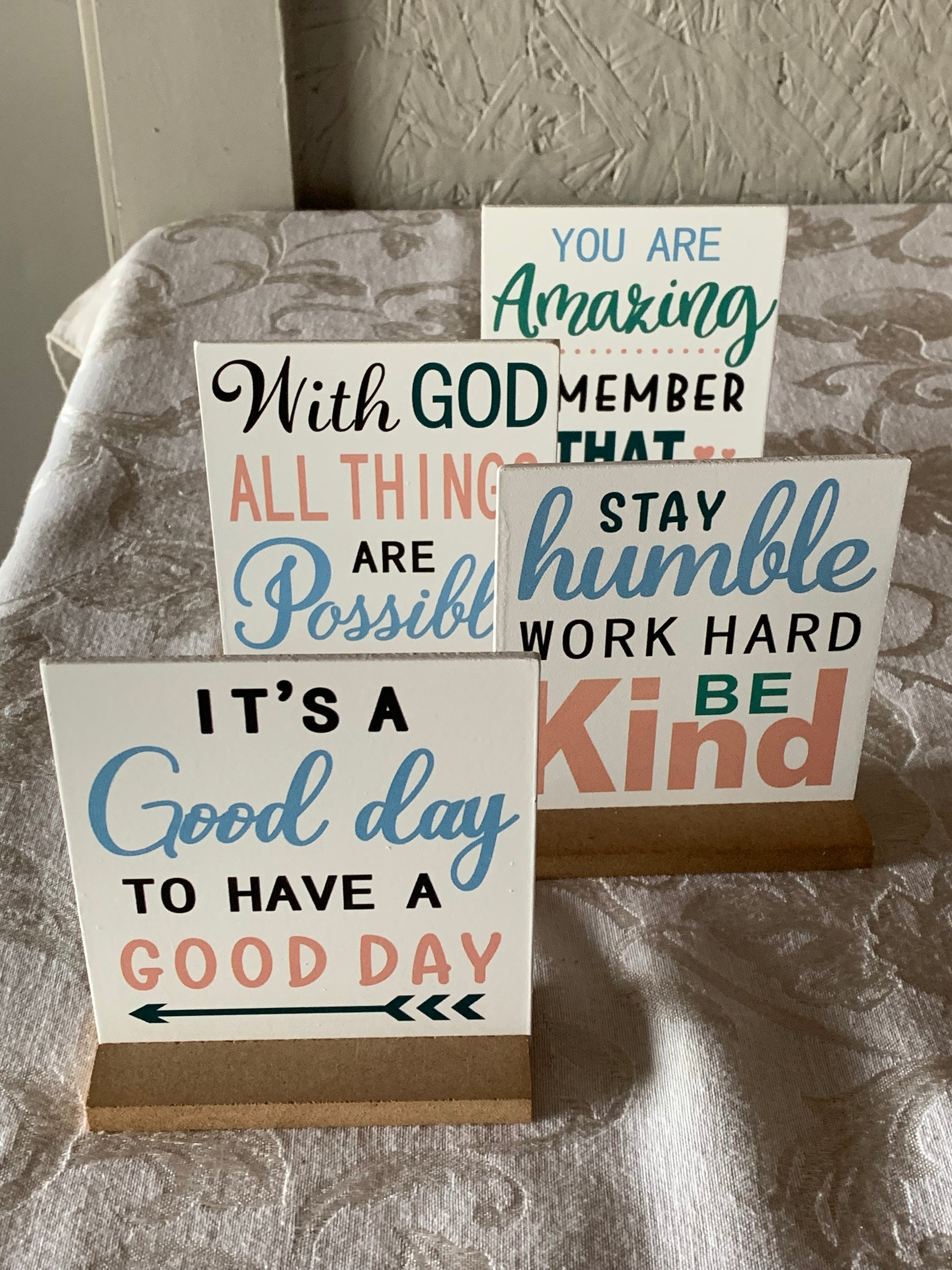 Inspirational quotes desk decor wood table signs. 4 options, price listed is per item. 4 x 4 inches.