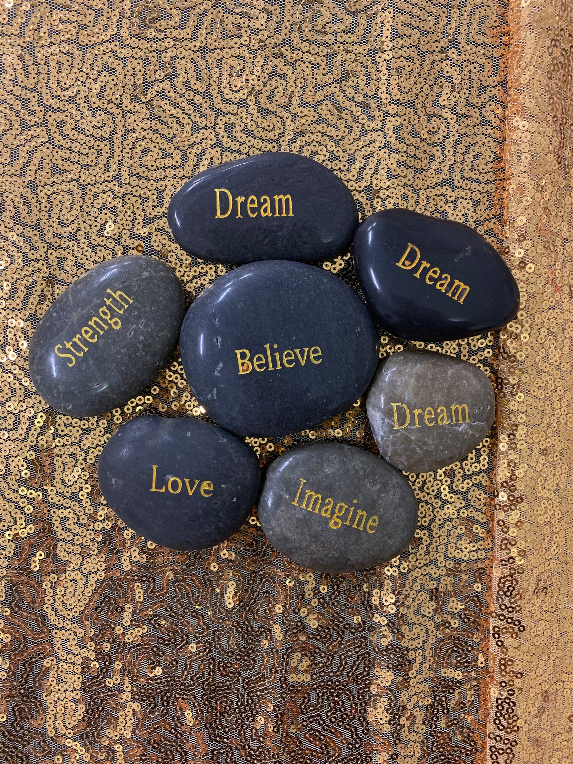 Enhance your daily life with Inspirational Rocks. These rocks feature uplifting messages to boost your mood and promote a positive mindset. Hand-picked and crafted, each rock offers a unique and valuable reminder. Incorporate these into your decor or carry one with you for a daily dose of motivation. Sold individually.