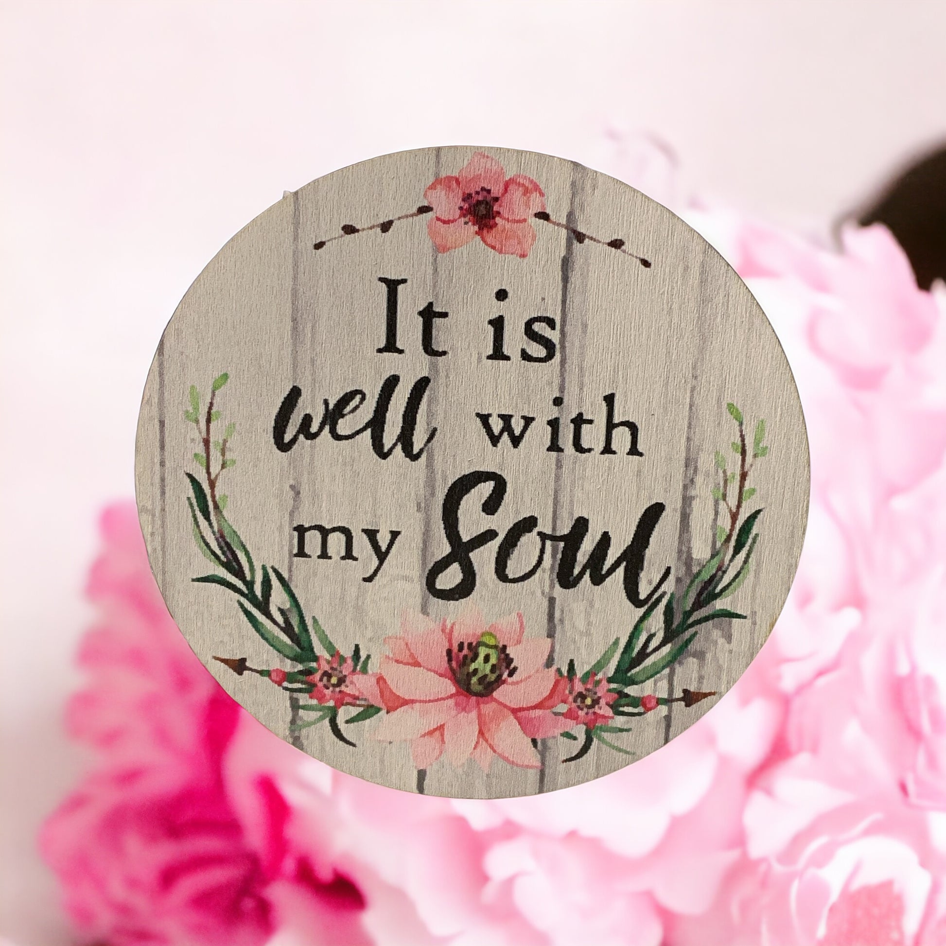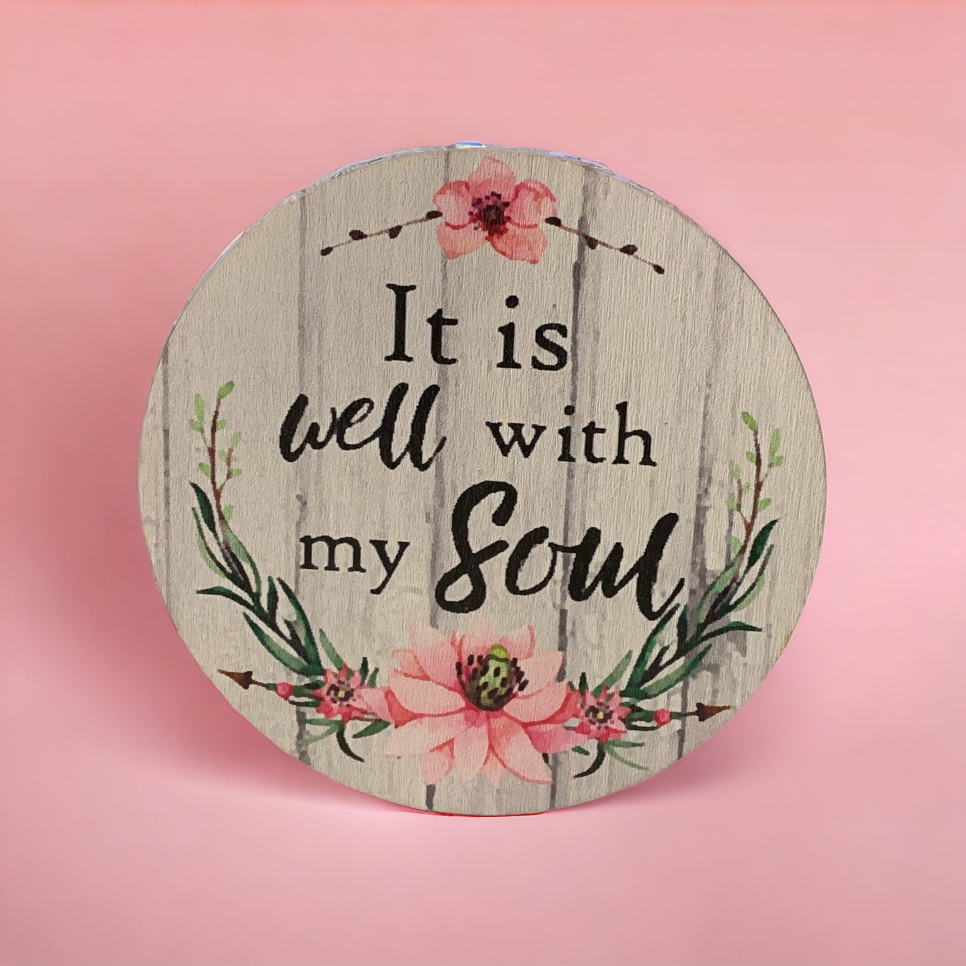 It is Well with my Soul Coasters, Set of 6. Made out of wood, handmade. 4 inches diameter.