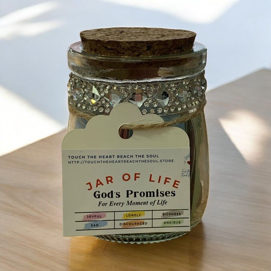 Discover the power of God's promises with Jar of Life. This inspirational jar contains meaningful scriptures that will uplift your spirit and guide you through every moment. Let the words of God bring joy and comfort to your life. Embrace His promises today!