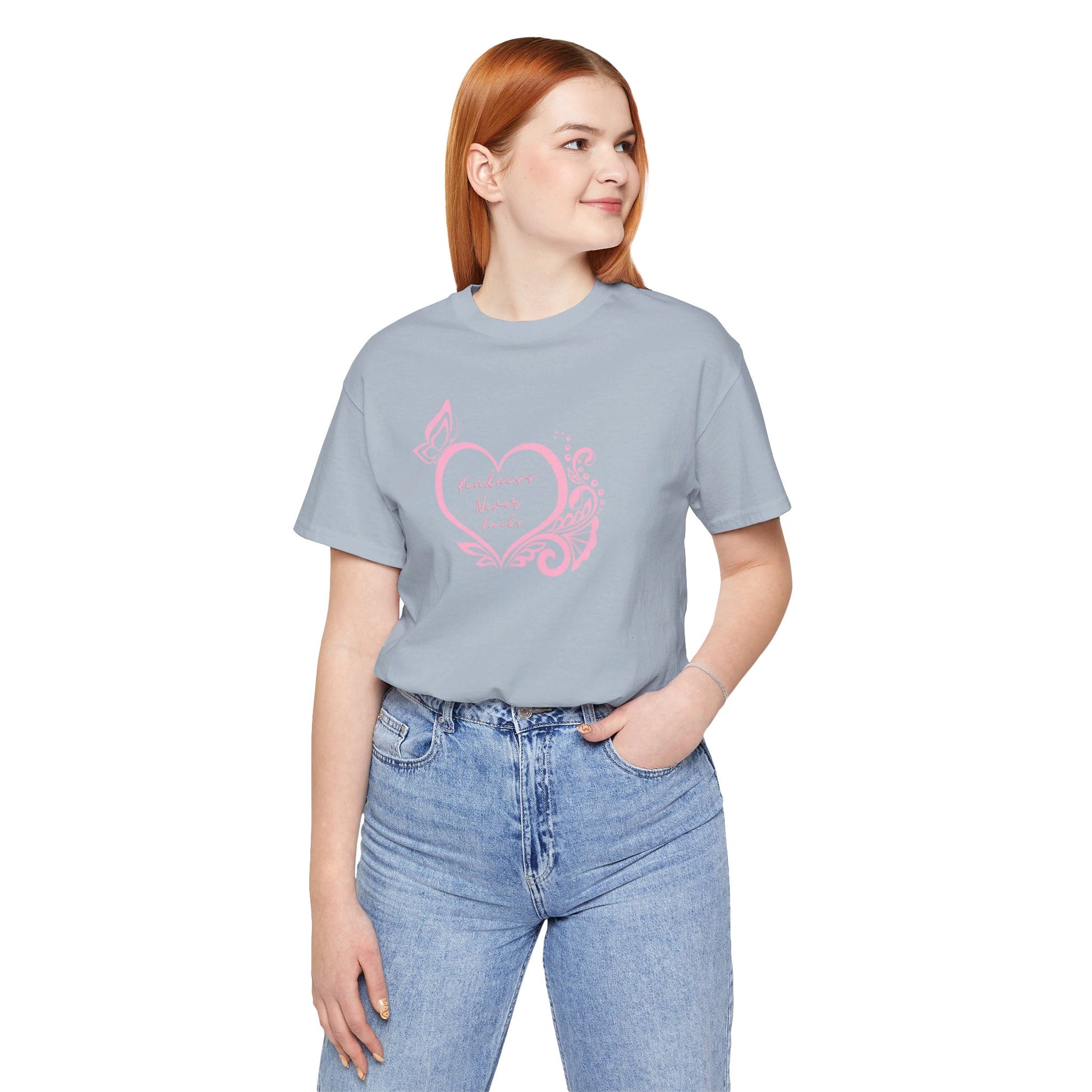 Kindness Never Fails Pink Heart Tee Short Sleeve