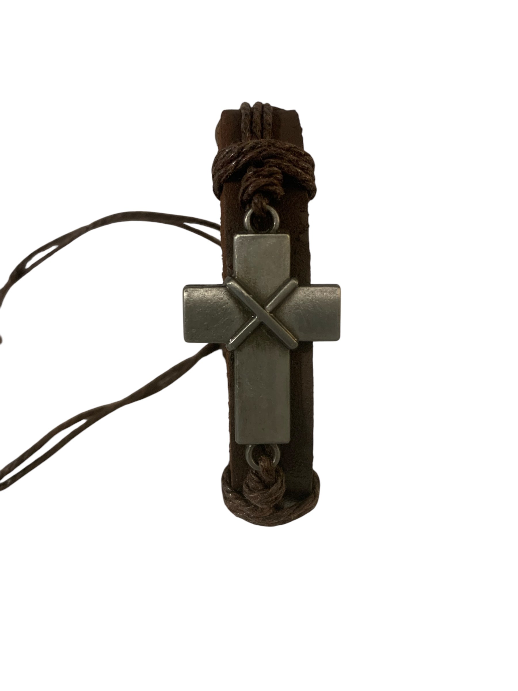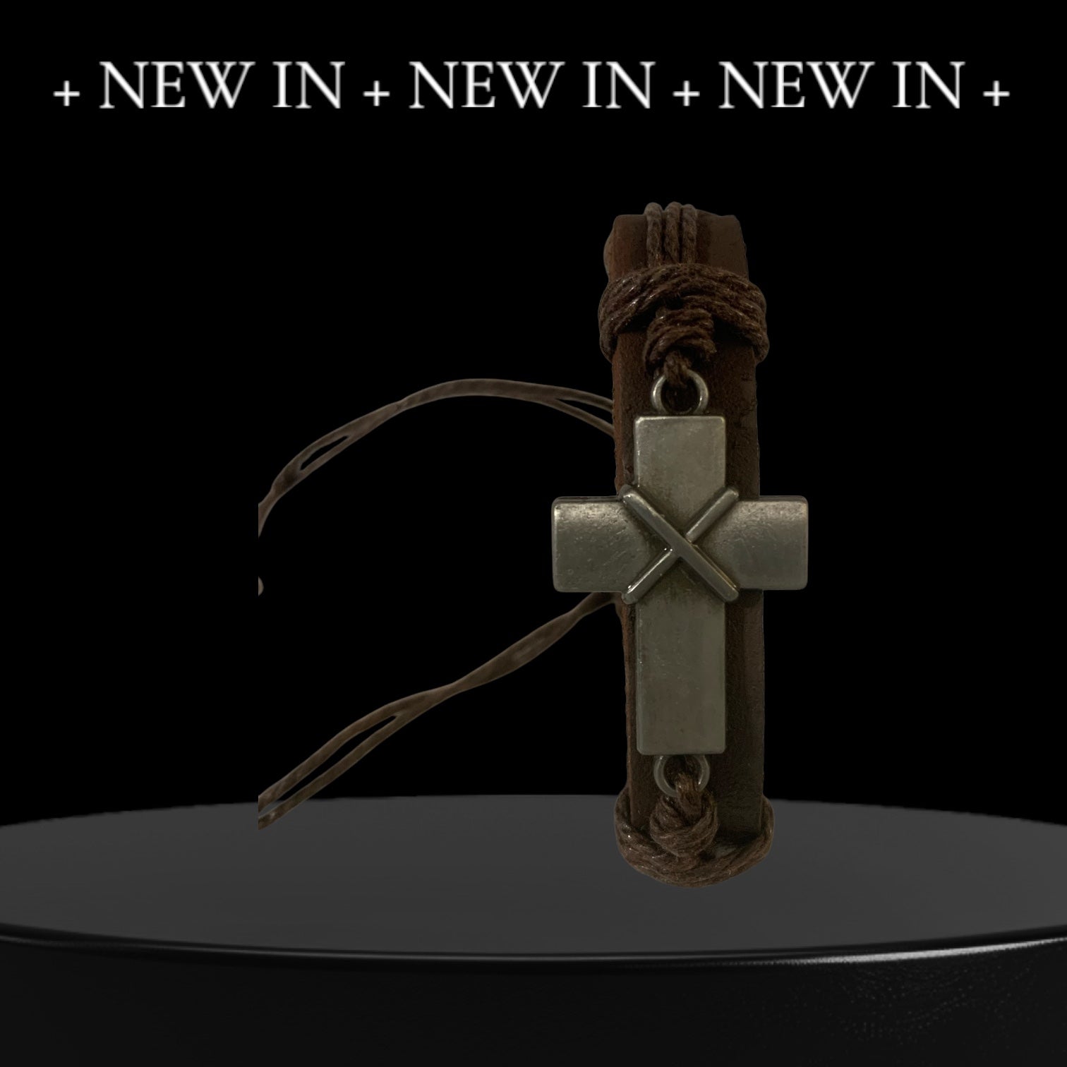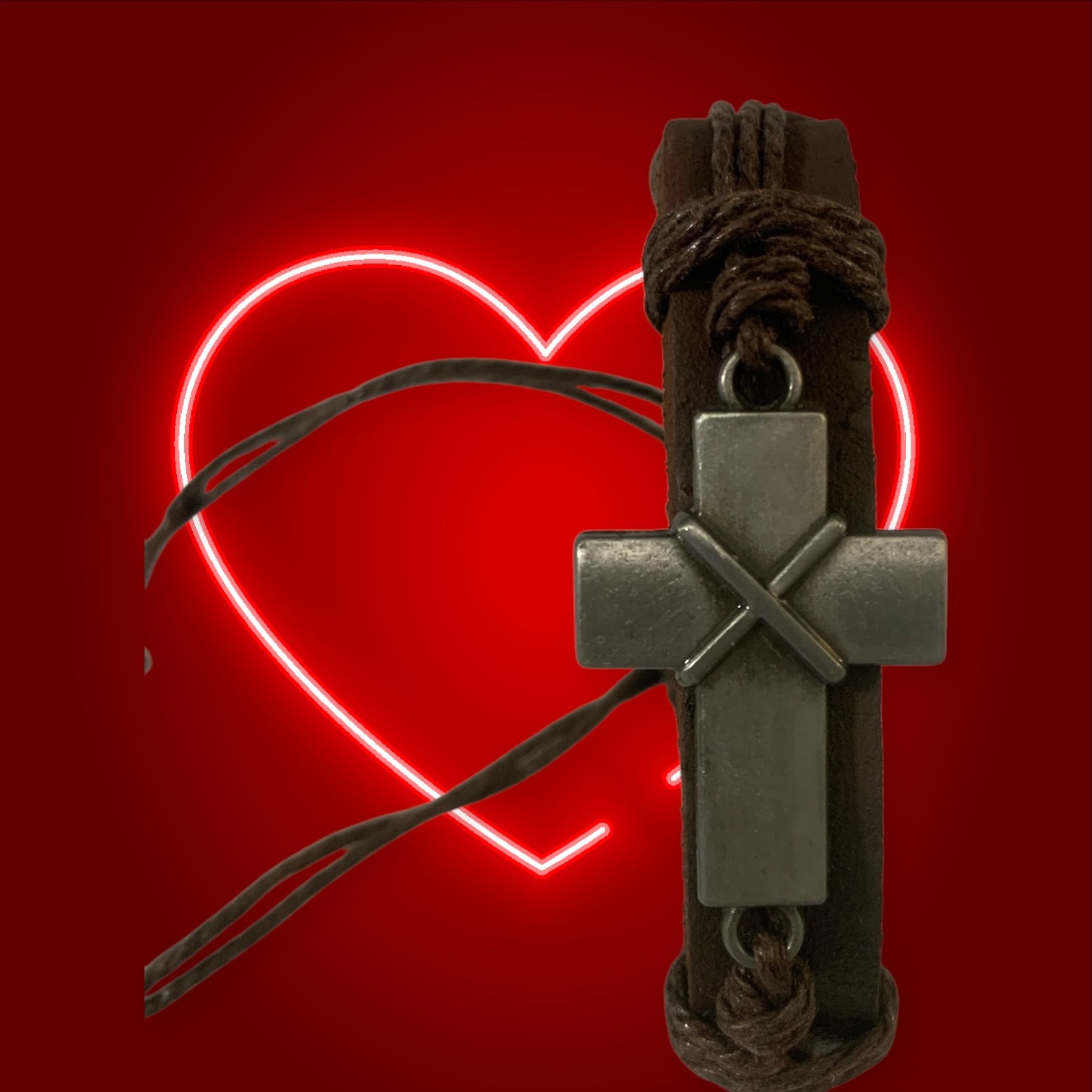 This genuine leather man's bracelet features a sleek and stylish cross design. Crafted with high-quality materials, this adjustable bracelet offers both durability and versatility. Elevate any outfit with this must-have accessory.