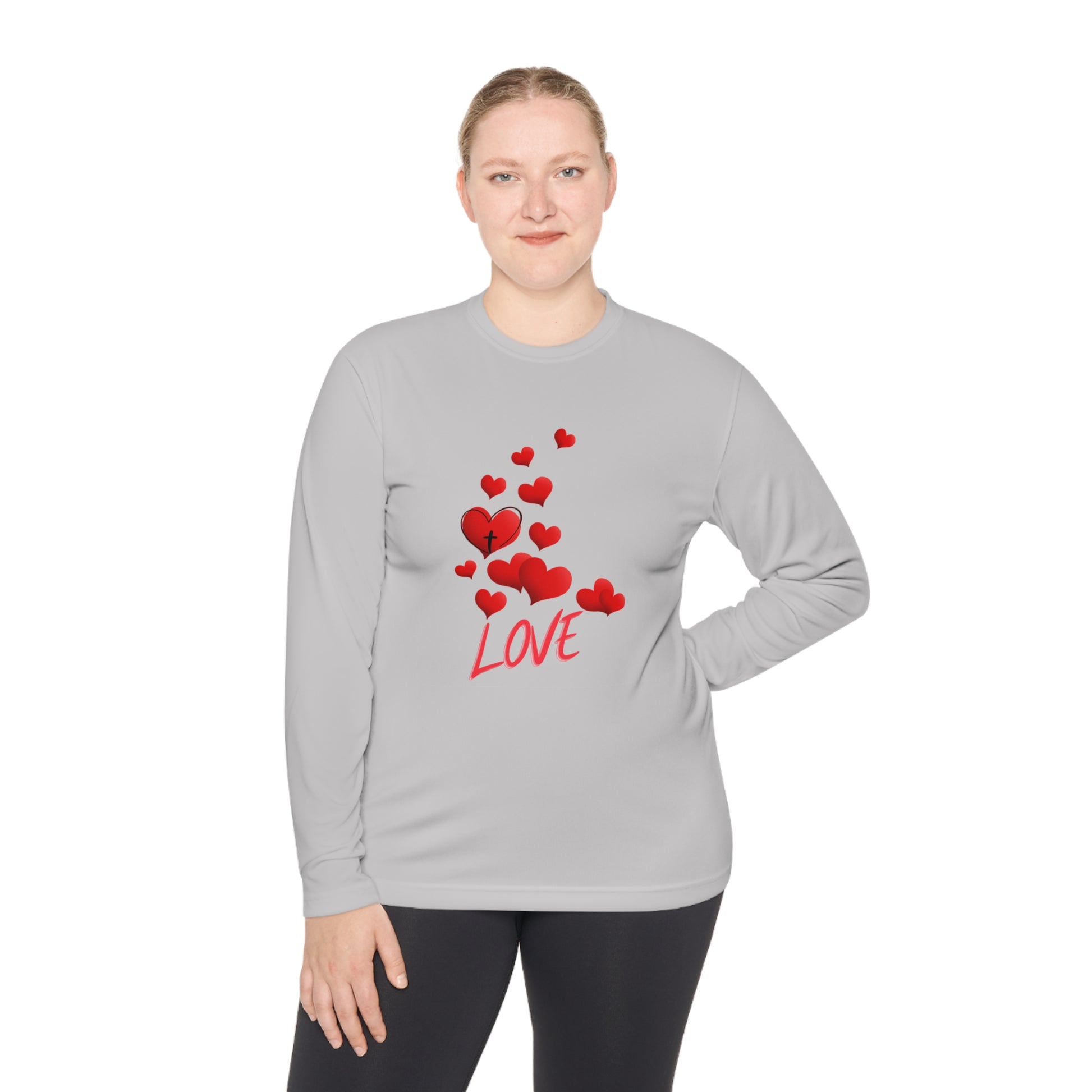 Love Red Hearts and Cross SPORT Long Sleeve Tee