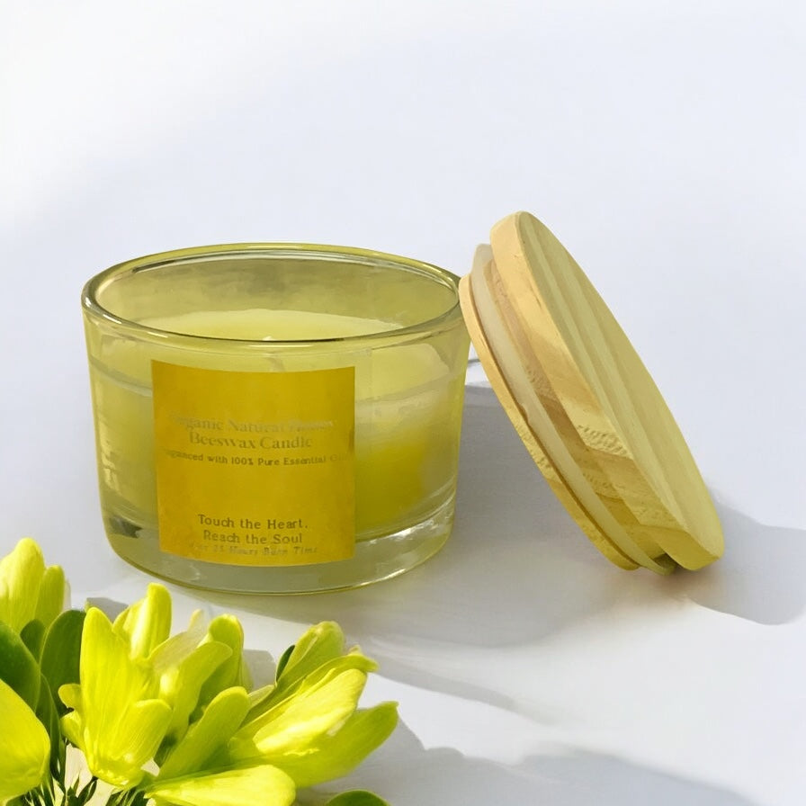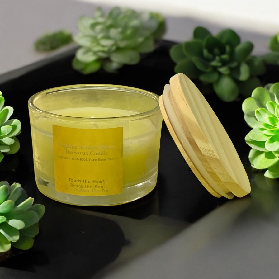 Organic Honey Beeswax Natural Scent Candle with Bible Verse on Wood Lid