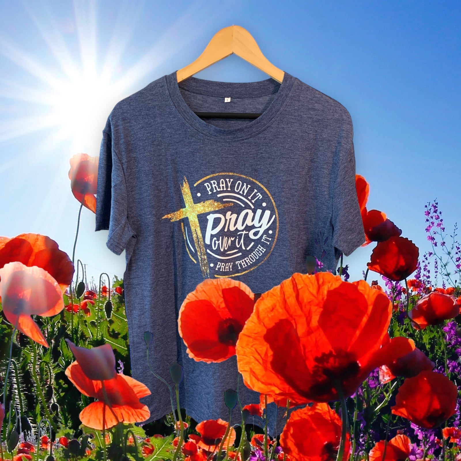 This Pray On It Gold Cross T-Shirt is the perfect addition to any wardrobe. Made with high-quality materials and featuring an elegant gold cross design, this t-shirt not only makes a fashion statement, but also serves as a reminder to always keep faith. Show your devotion in style with this Pray On It T-Shirt. Pray On It Gold Cross T-Shirt. 100% cotton.