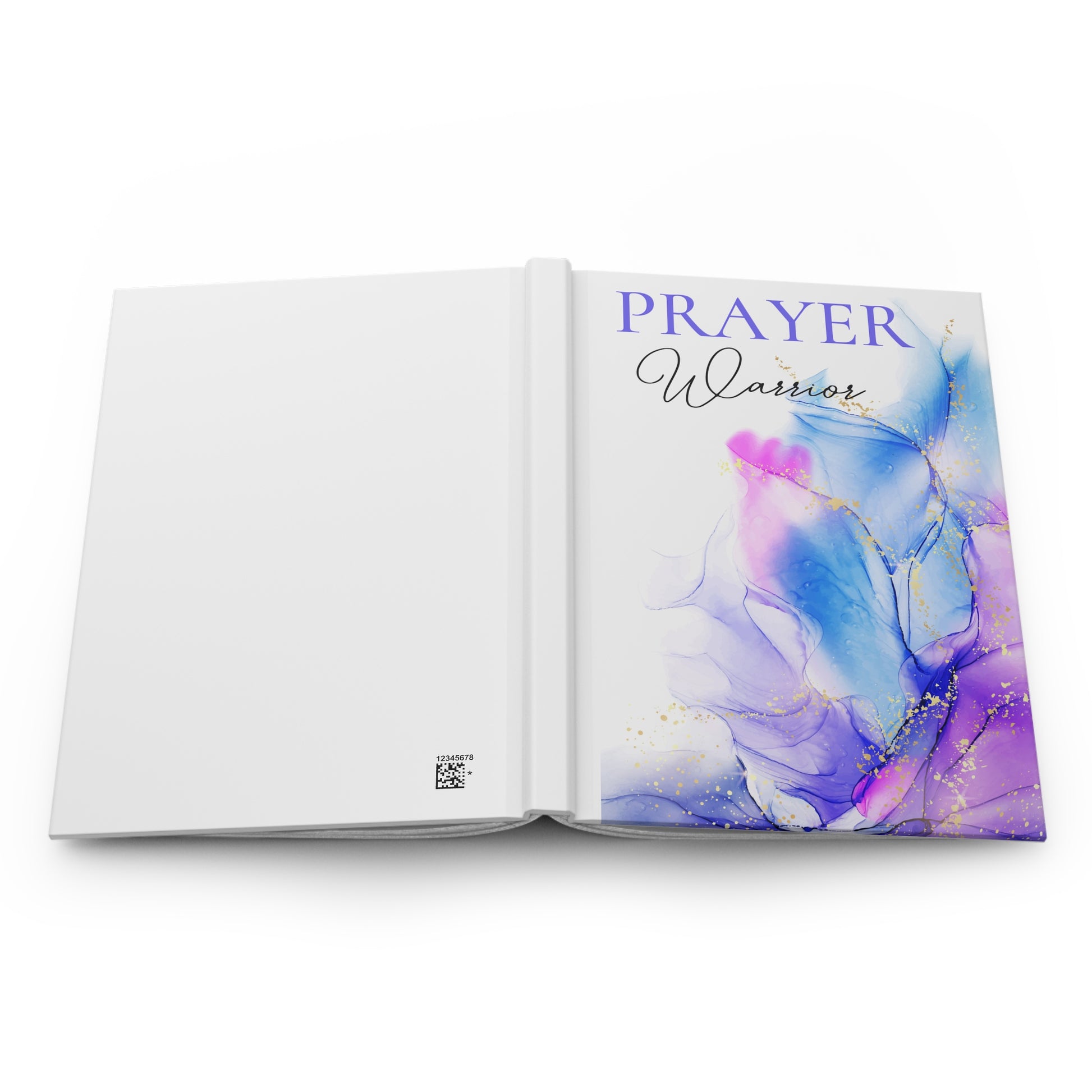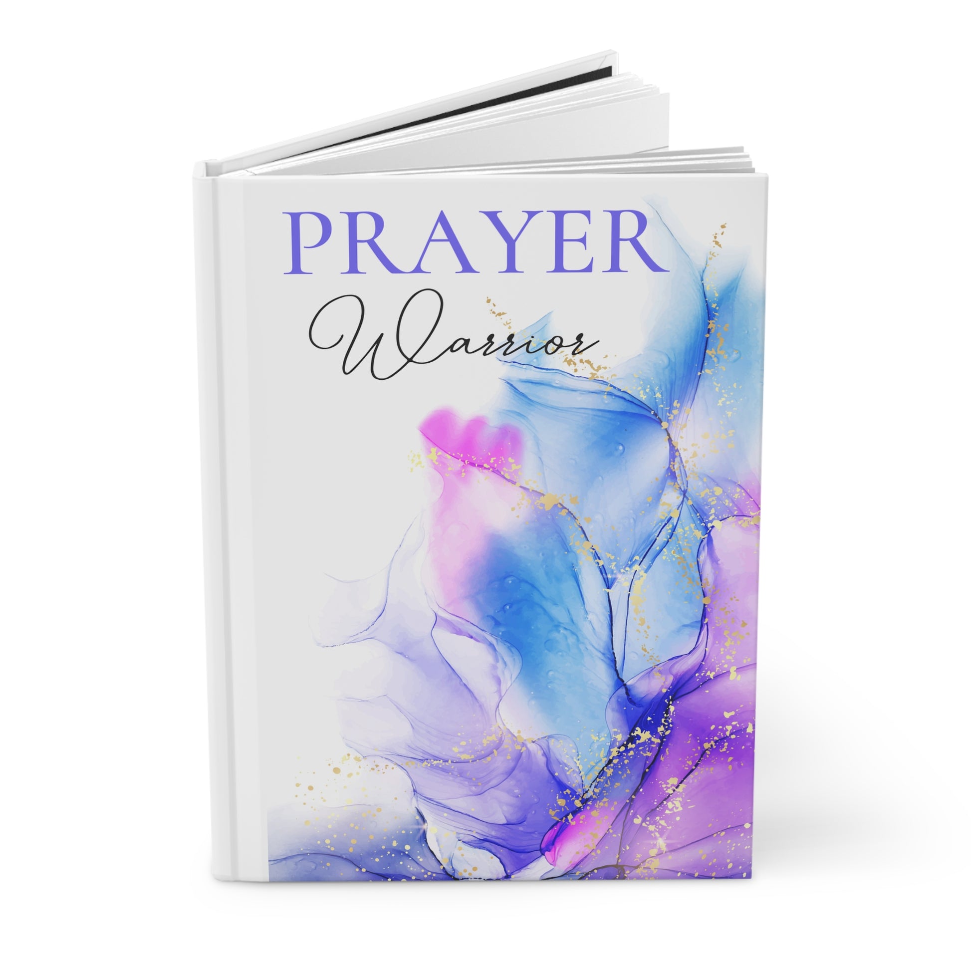Prayer Warrior Purple Blue Pink Watercolor Splash Hardcover Journal Matte. Make your everyday journaling more personal, private, and stylish with this matte hardcover journal. Available in 5.75"x8", with 150 lined pages, these sturdy hardcover journals are fully customizable on the front and on the back covers. The matte laminate coating on the cover will make them stay true to your personal style.