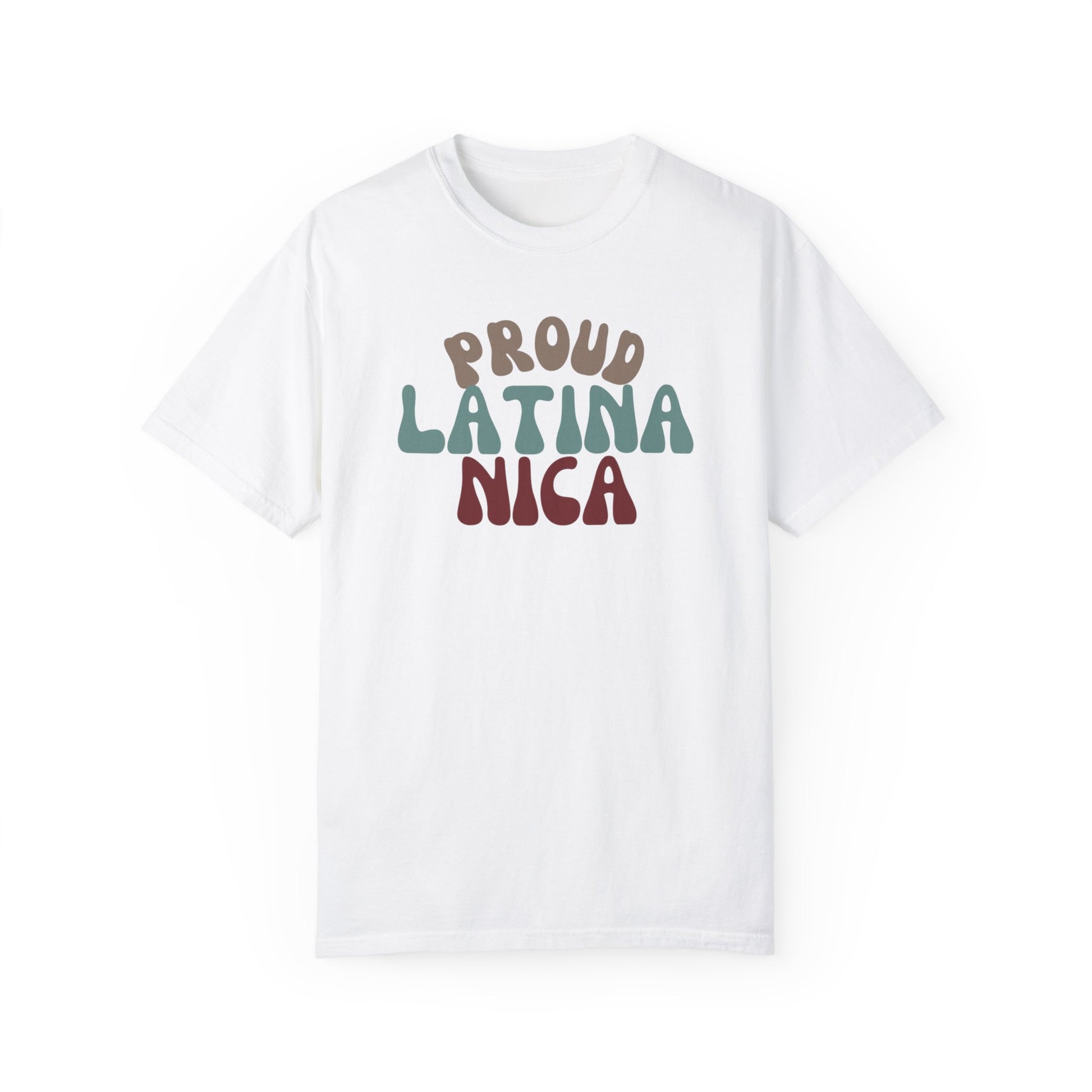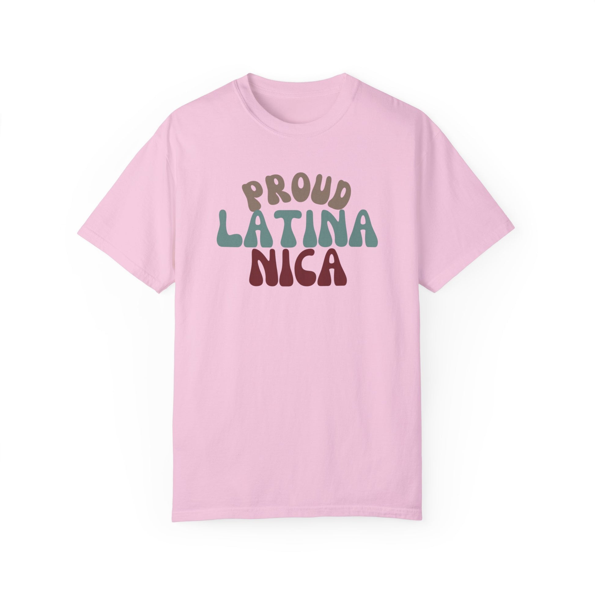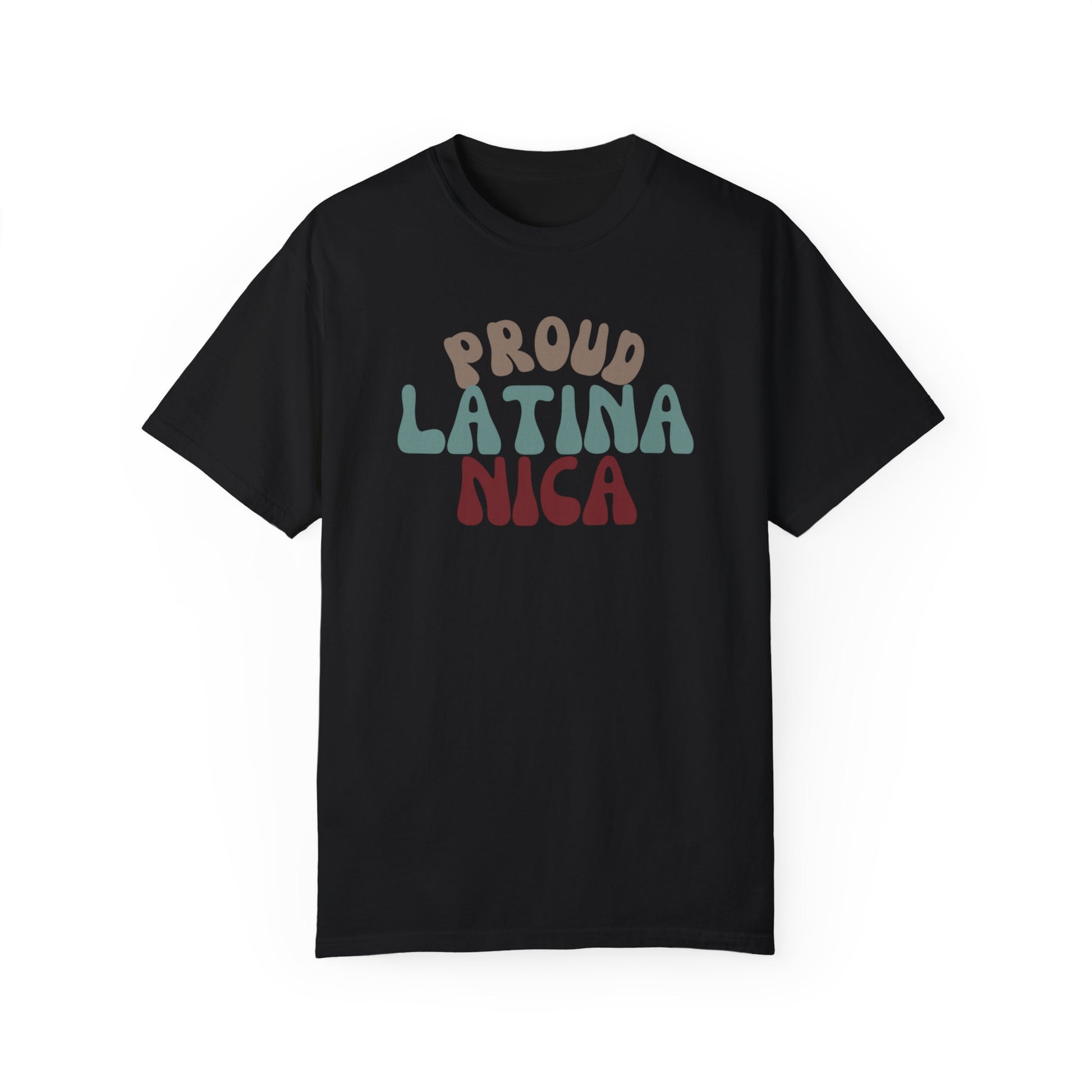 Proud Latina Nica Comfort Colors Garment Dyed T-shirt, Proud Latina Nicaraguense, Nica tee, Nicaraguan T-shirt, Latina Pride, Gift for her. Comfort Colors introduces the “Comfort Colors 1717” garment-dyed t-shirt; a fully customizable tee made 100% with ring-spun cotton. The soft-washed, garment-dyed fabric brings extra coziness to your wardrobe while the relaxed fit makes it an excellent daily choice. The double-needle stitching throughout the tee makes it highly durable while the lack of side-seams helps the shirt retain its tubular shape. Discover all 58 colors in our Comfort Colors 1717 color charts below. .: