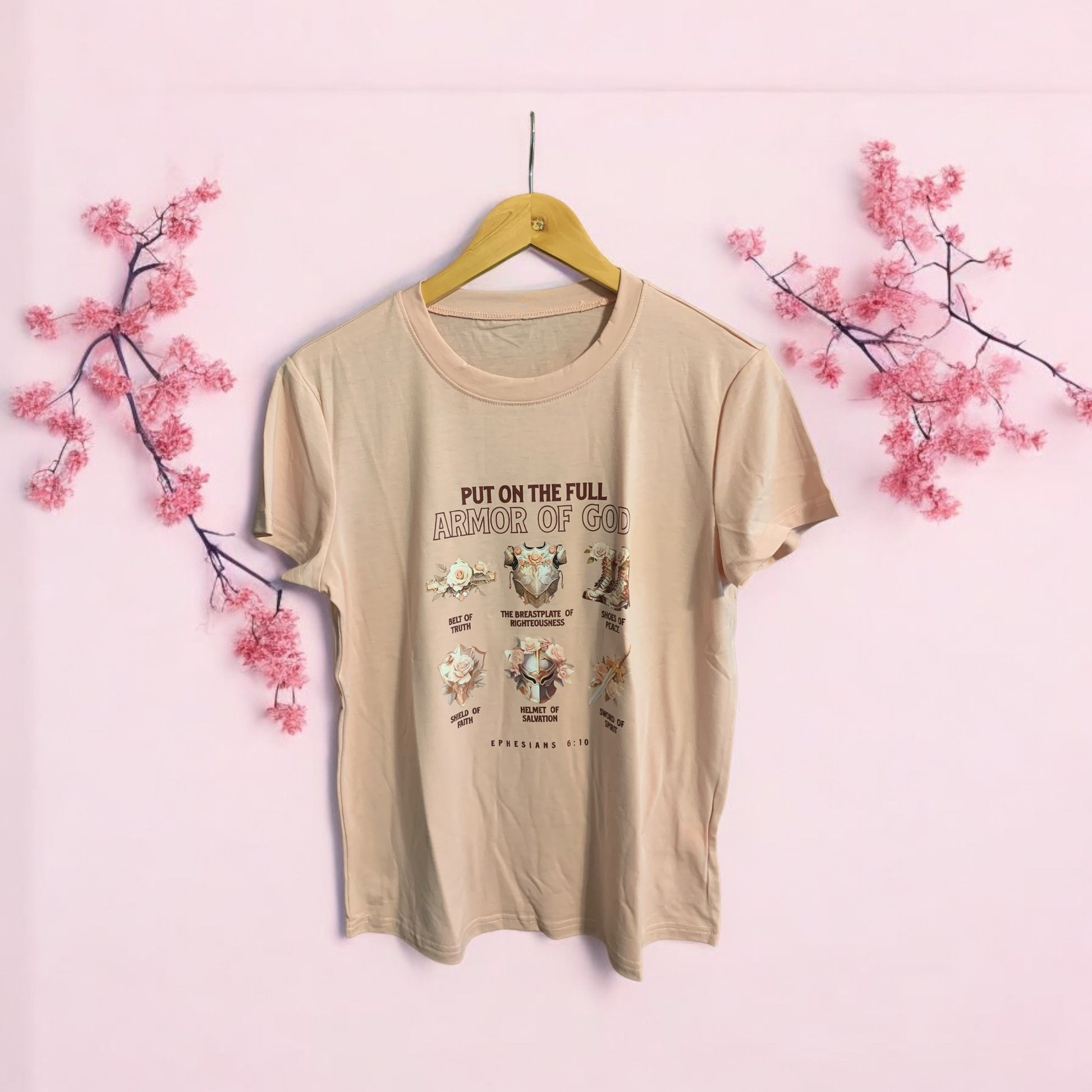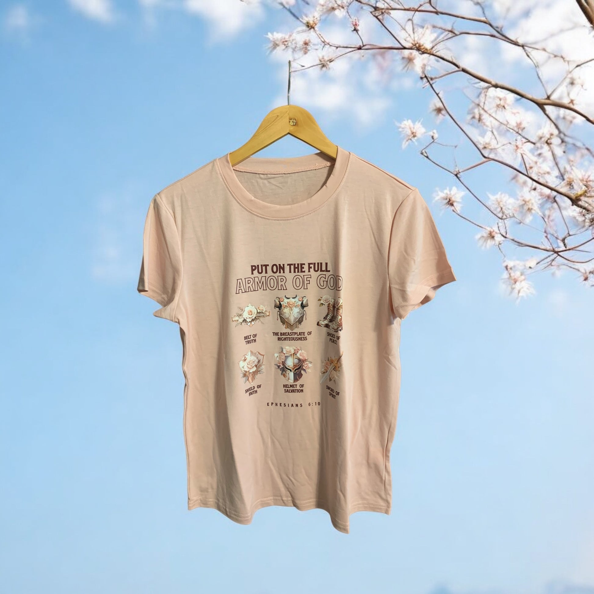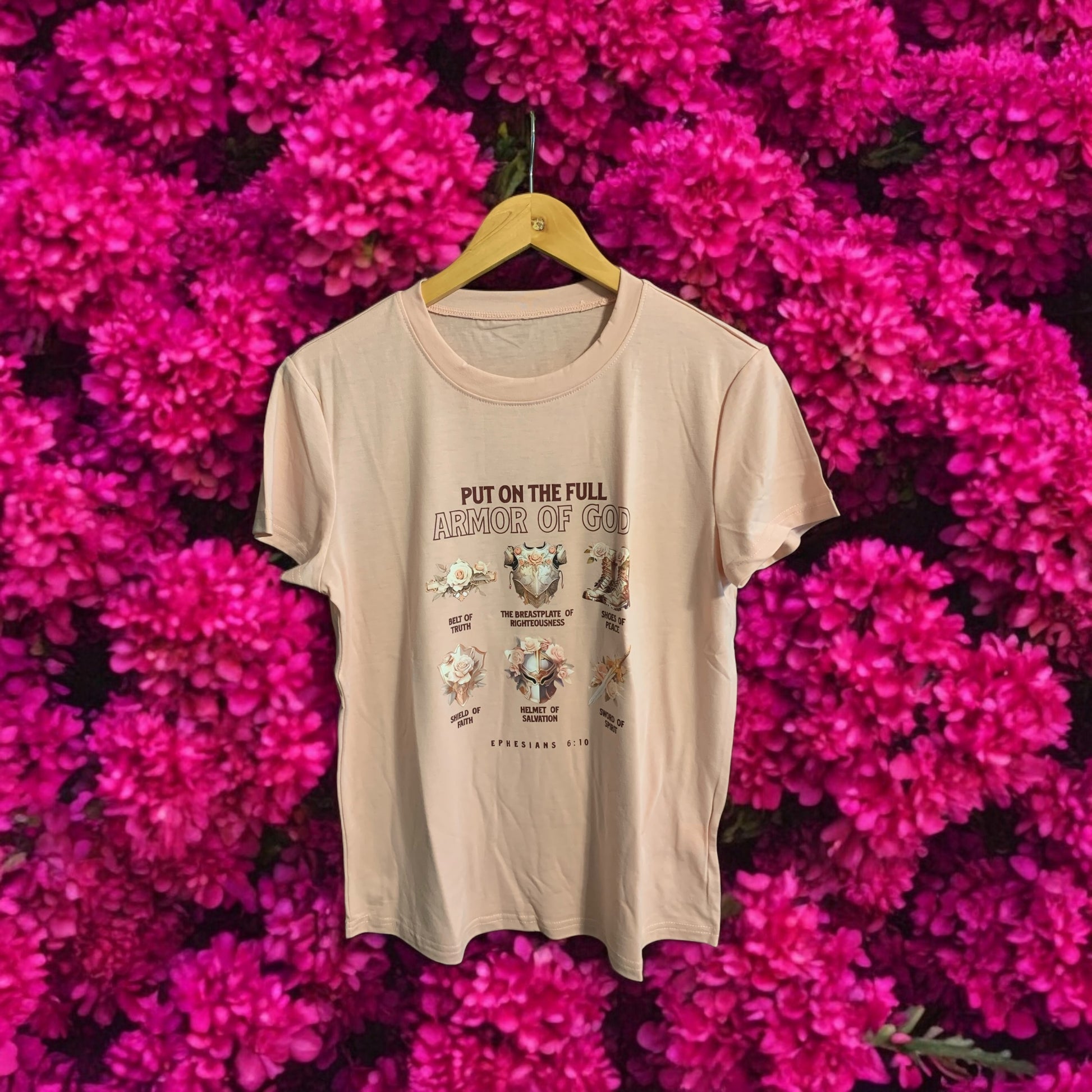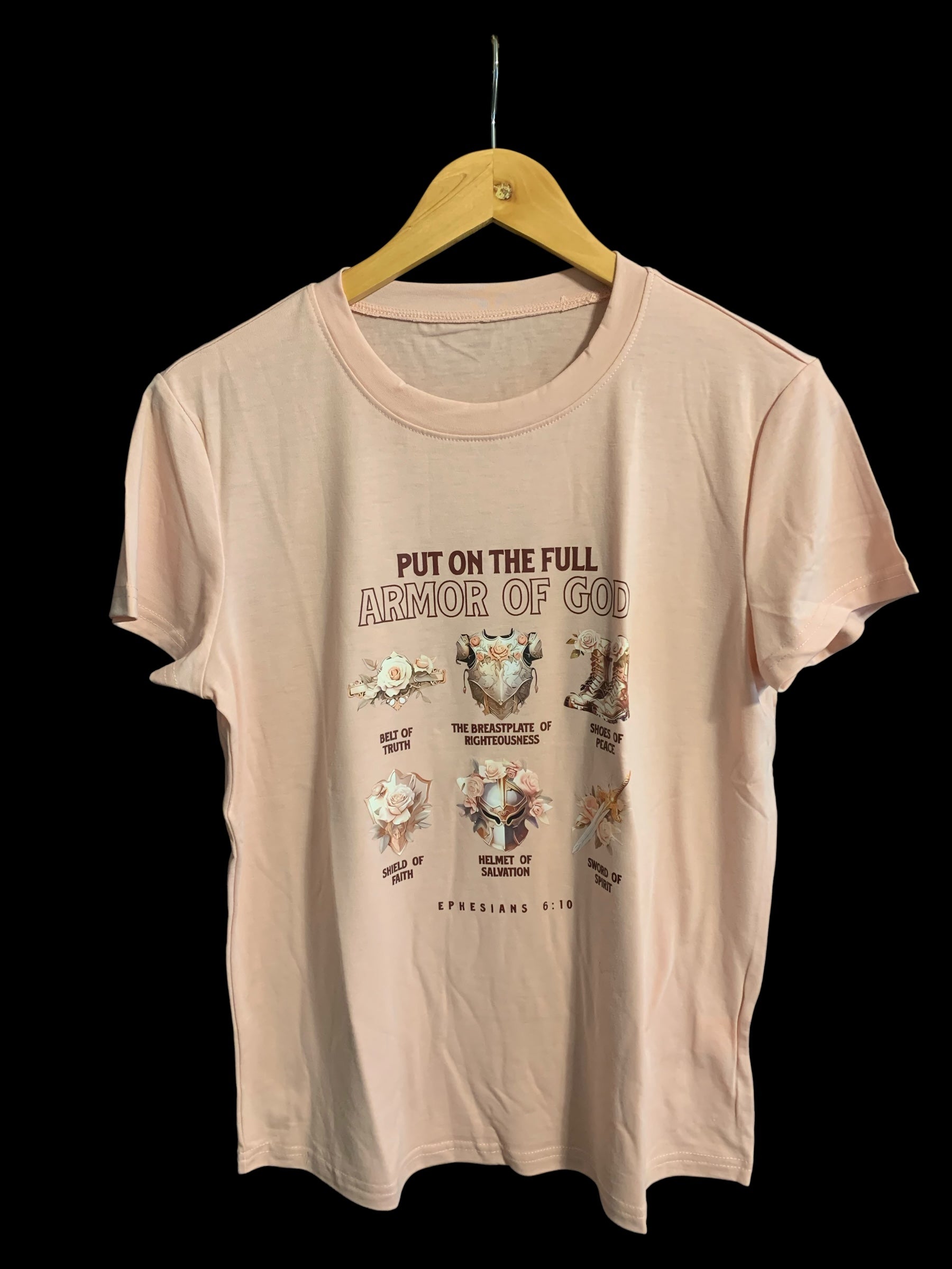 Enhance your spiritual journey with our Put in the Armor of God Pink Women’s T Shirt. Constructed from high-quality cotton, this shirt features the powerful message of putting on the Armor of God. This reminder will inspire and empower you on a daily basis. Stay grounded in your faith and spread positivity with this must-have wardrobe staple.